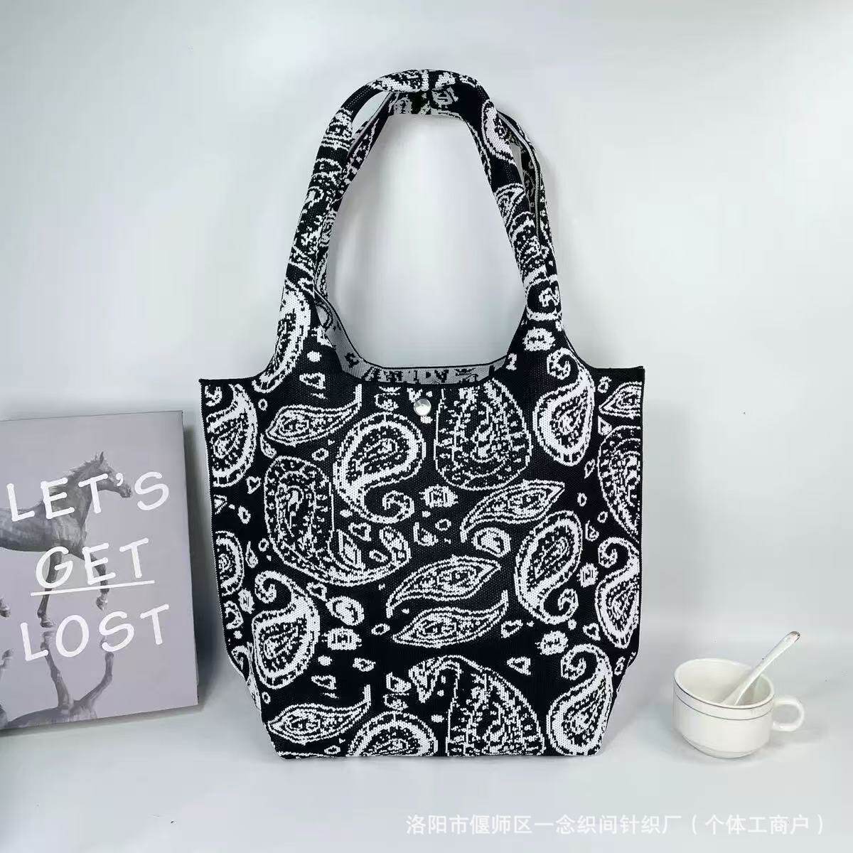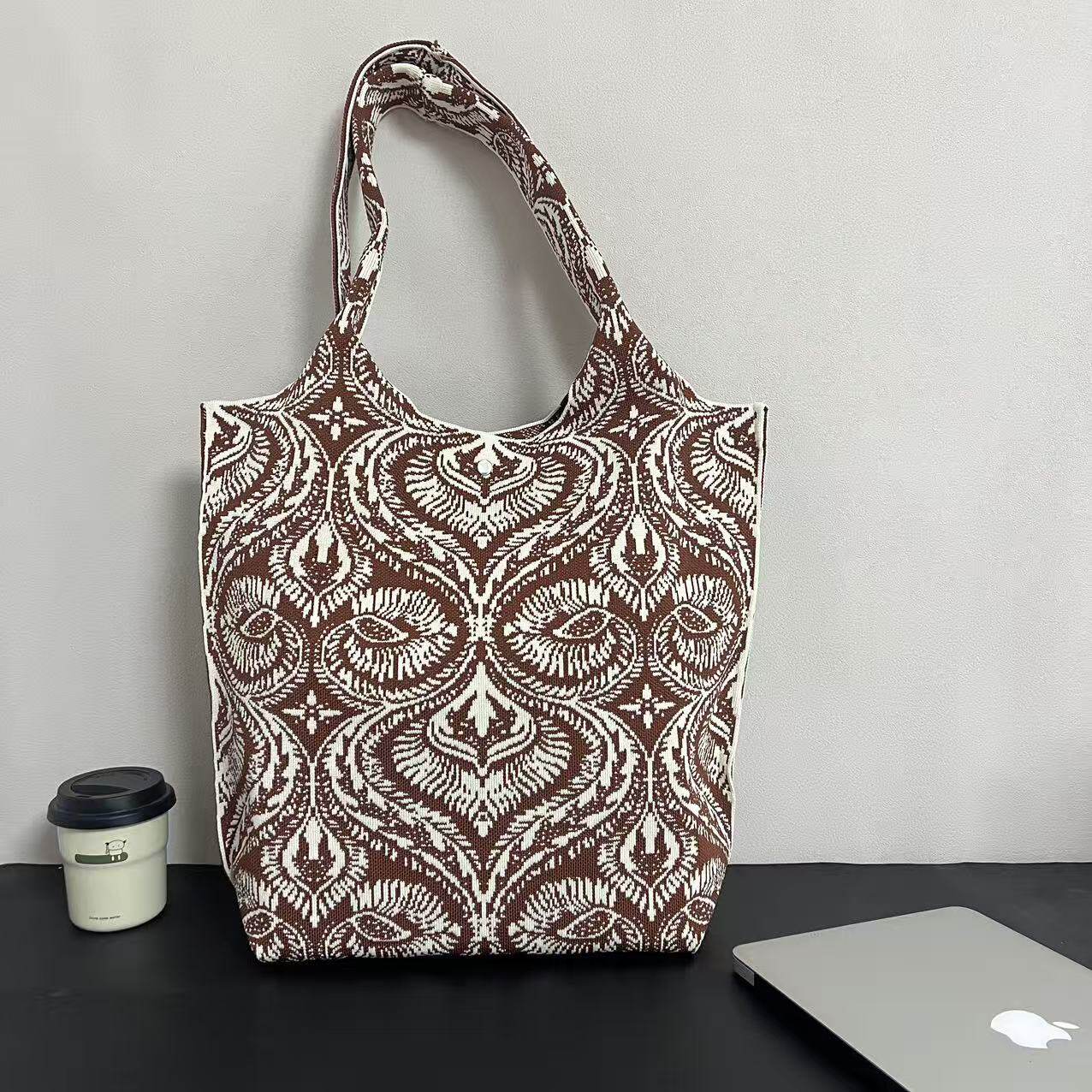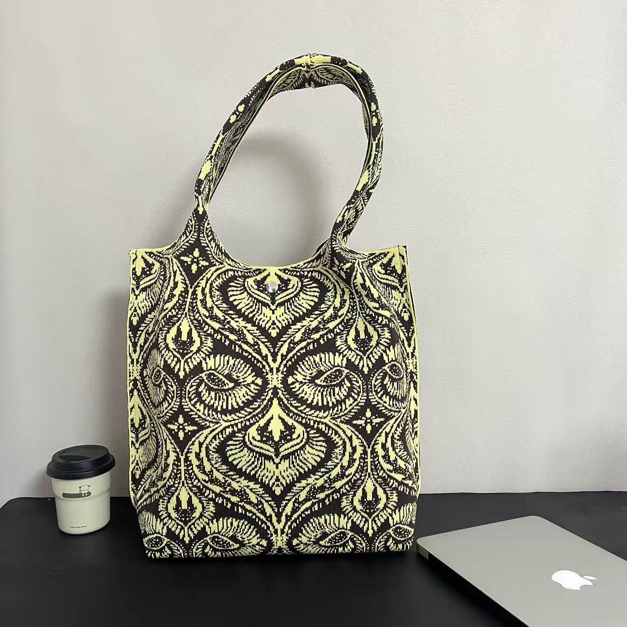 新疆艾德萊斯高級感大容量針織腰果休閒出行上班通勤手提包托特包