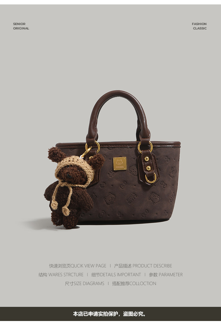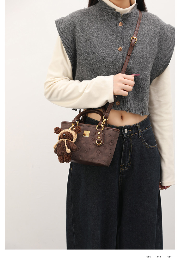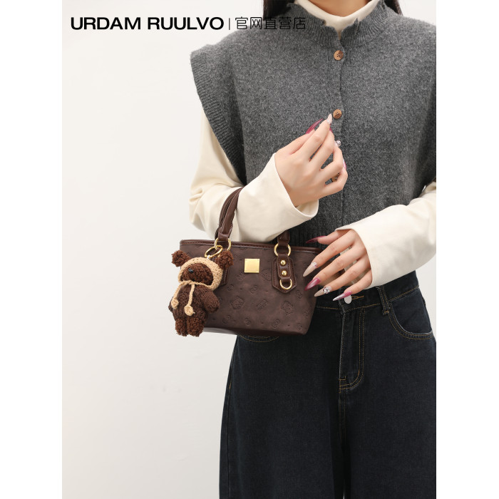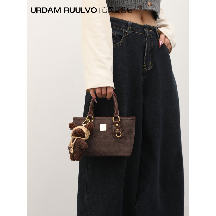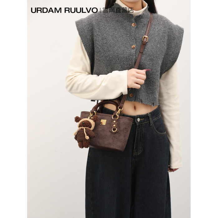 UR小衆高級感水桶包女2025新款可愛壓花手提包百搭通勤單肩斜後後背包