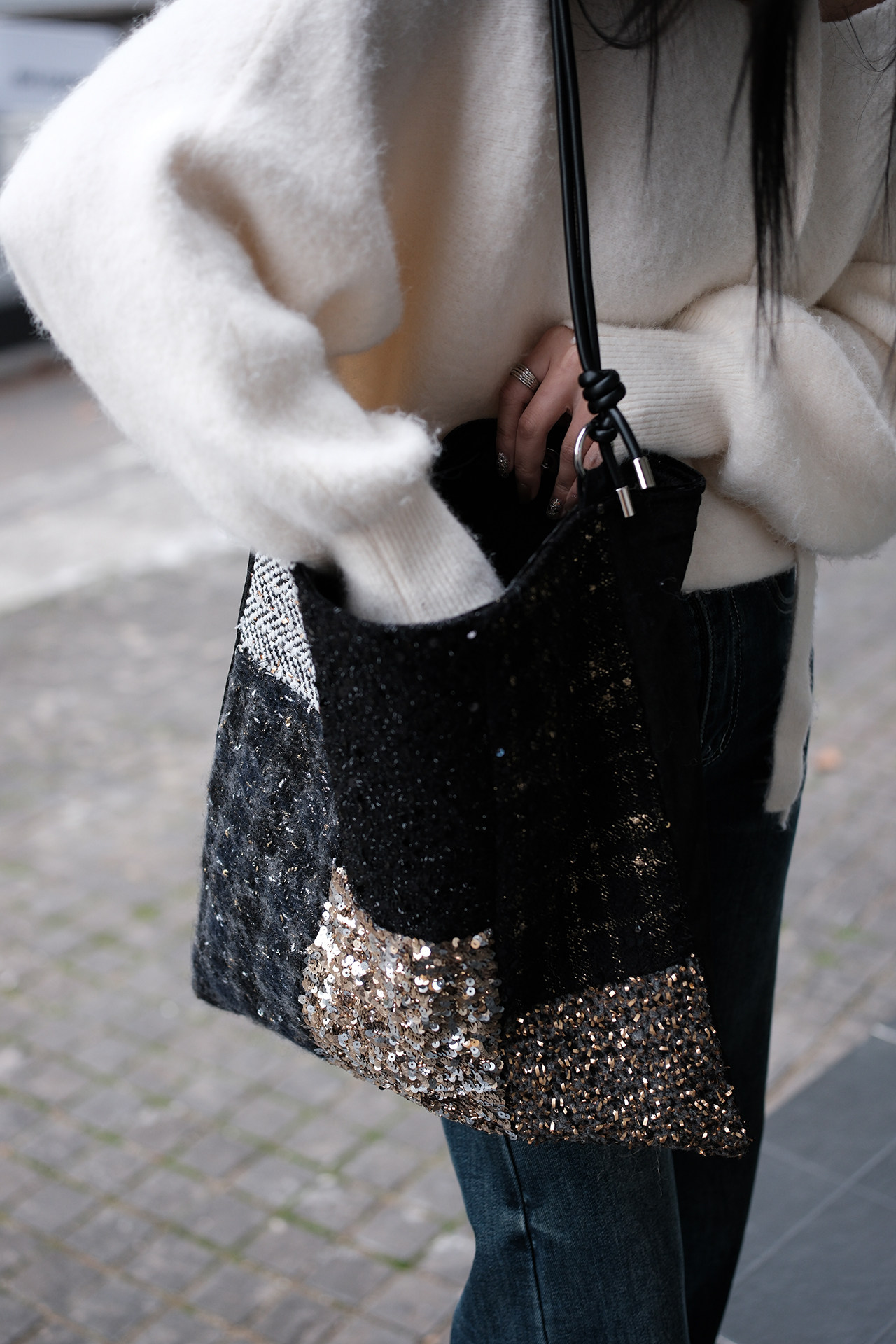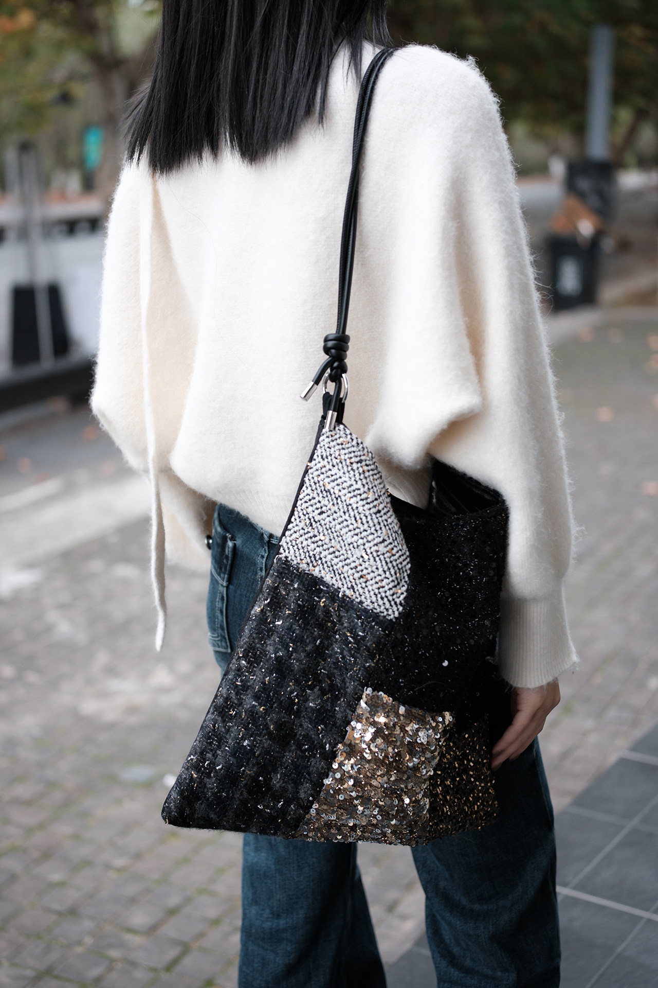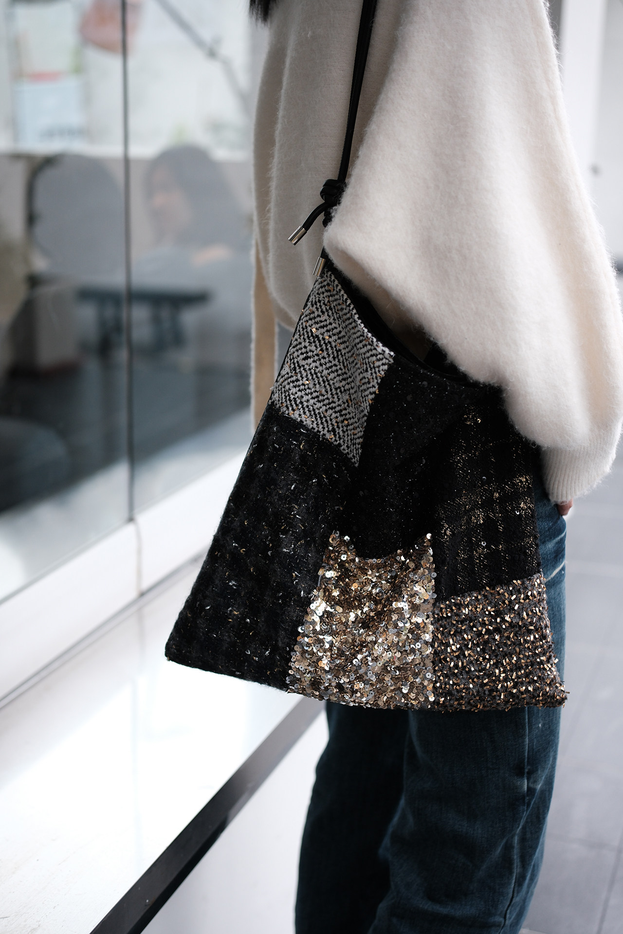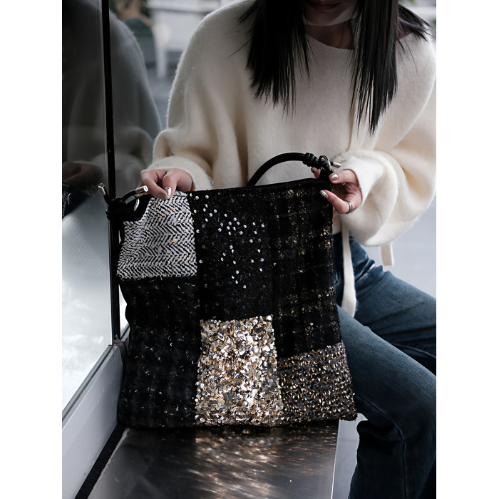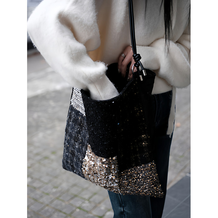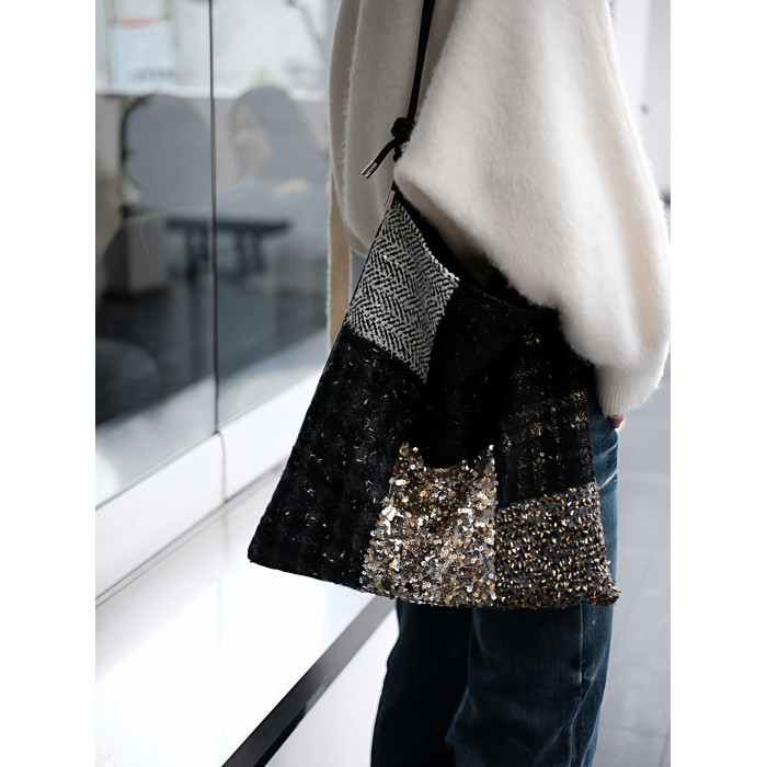 亮片單肩斜後後背包帆布包大容量手提布袋通勤包包女款小衆輕奢斜後後背包
