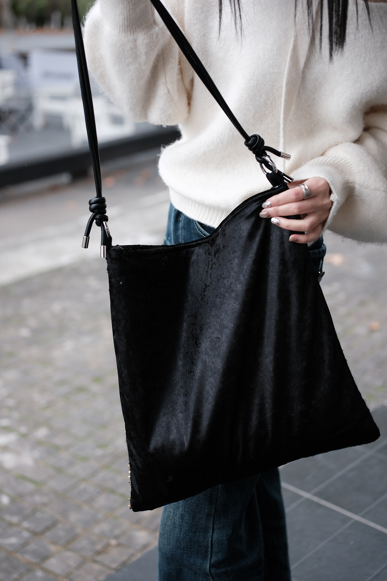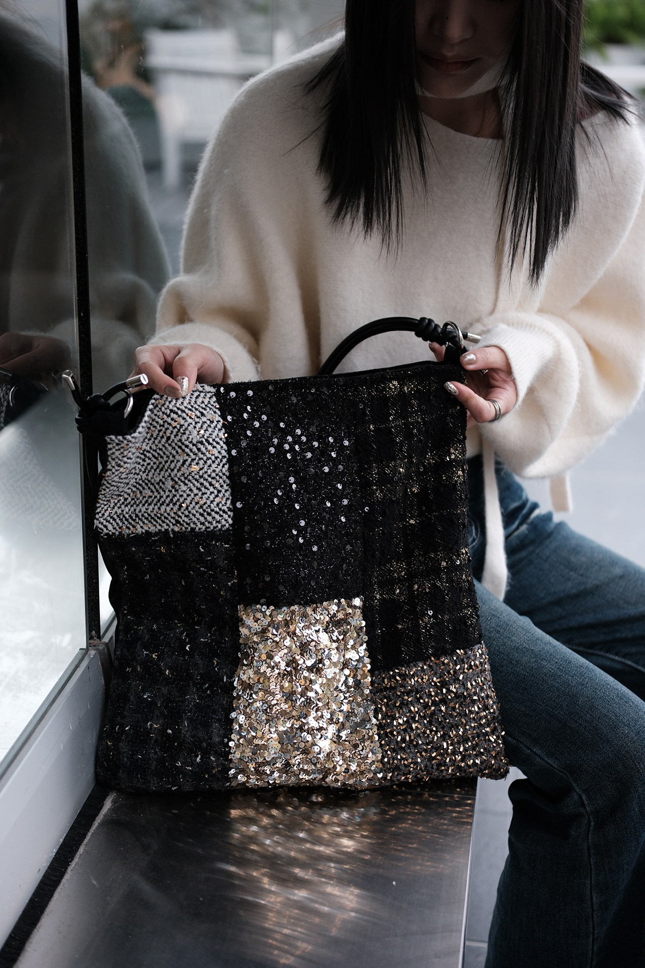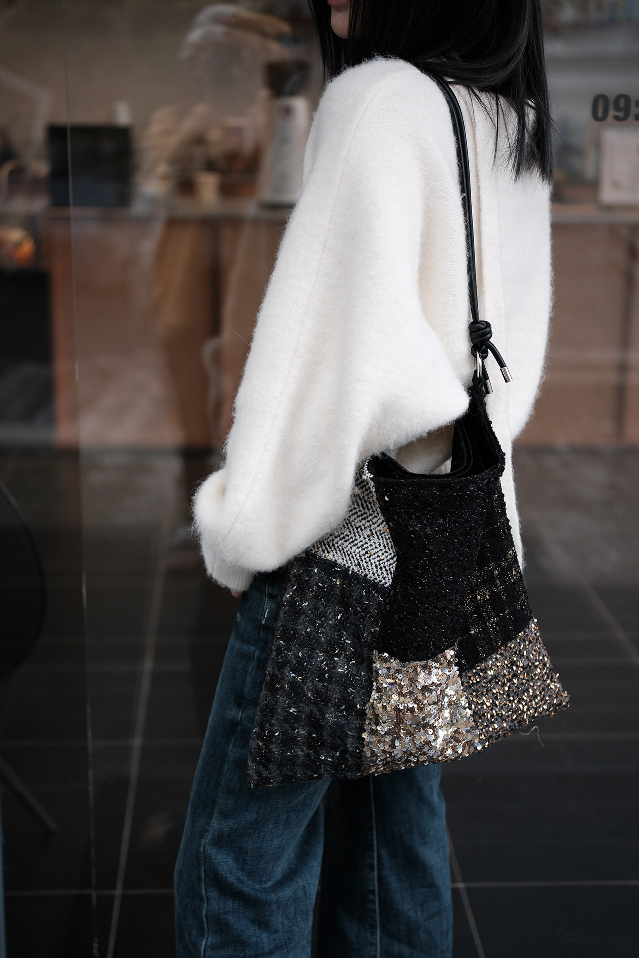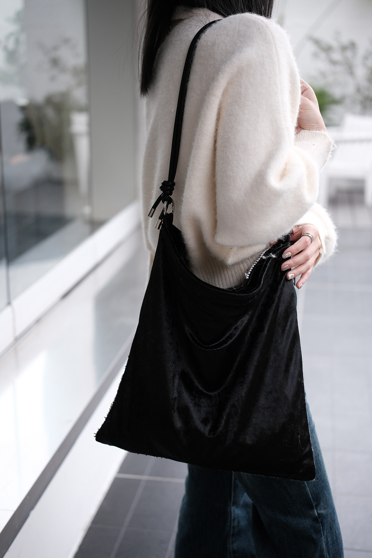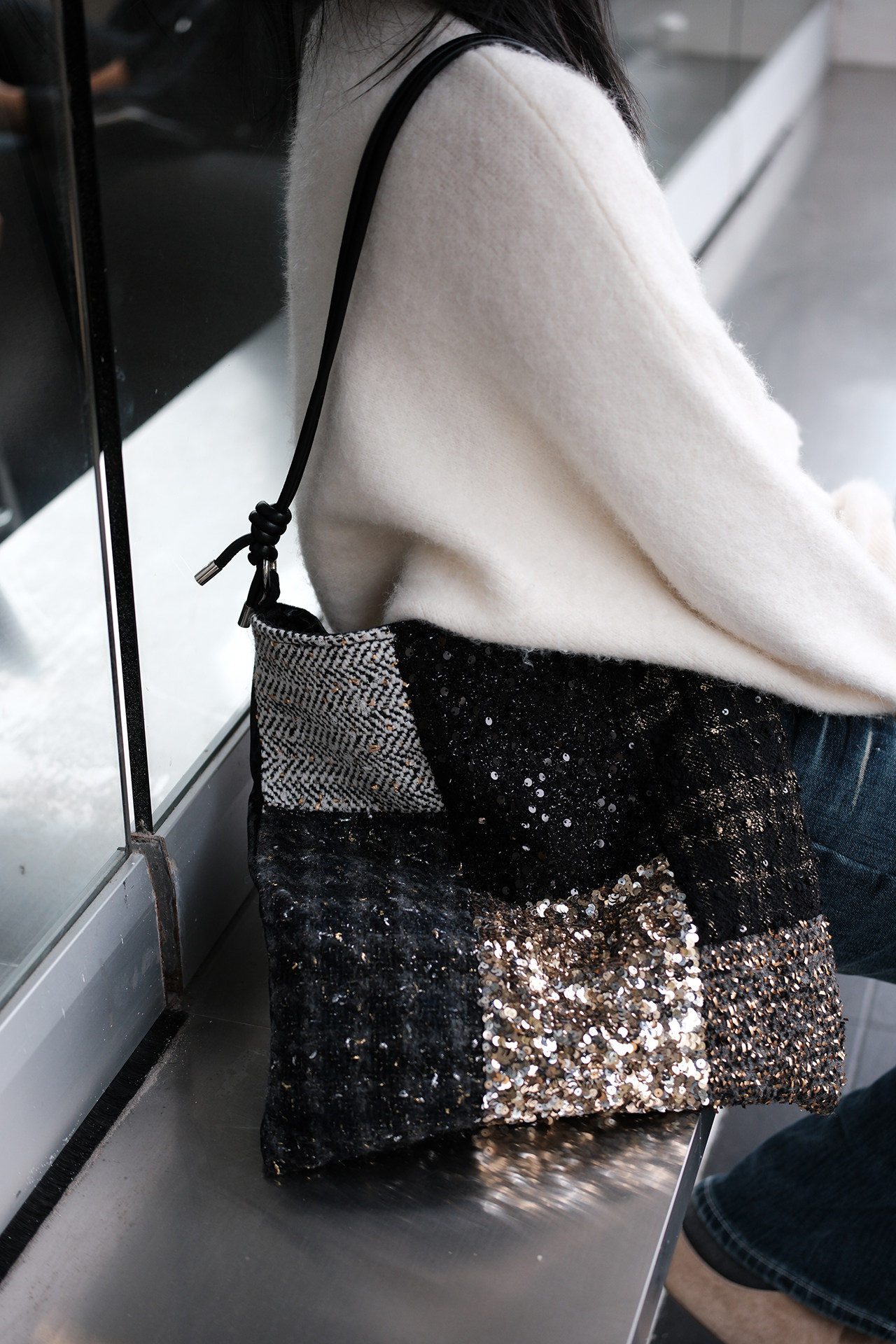 亮片單肩斜後後背包帆布包大容量手提布袋通勤包包女款小衆輕奢斜後後背包