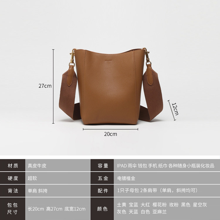 2026春夏真皮女包大容量水桶包小衆包包斜背通勤包單肩托特包百搭