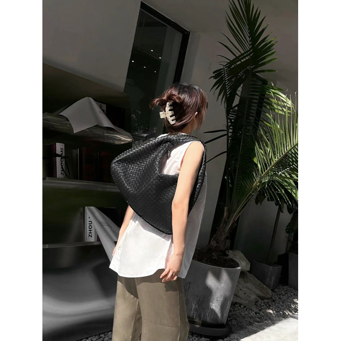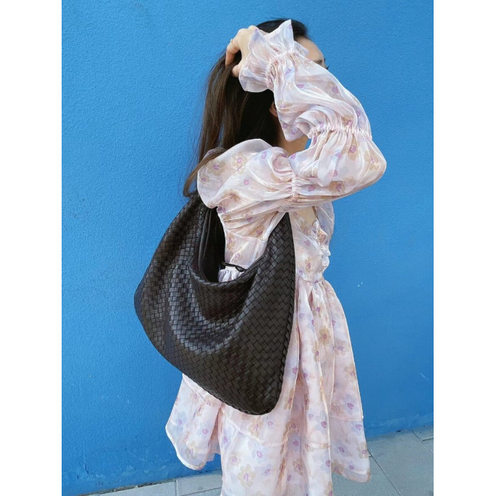 超火真皮編織包包女托特包2026新款牛皮大容量單肩腋下包小衆手提