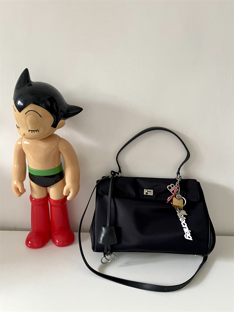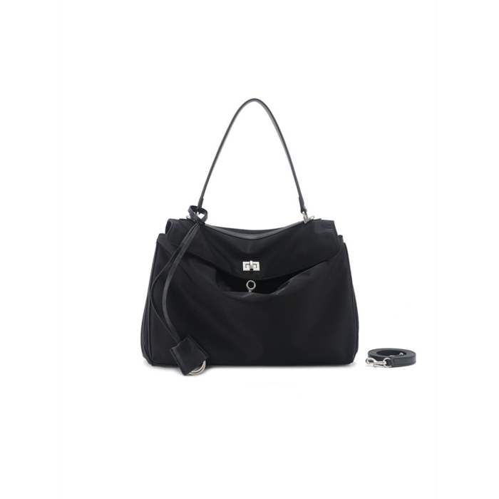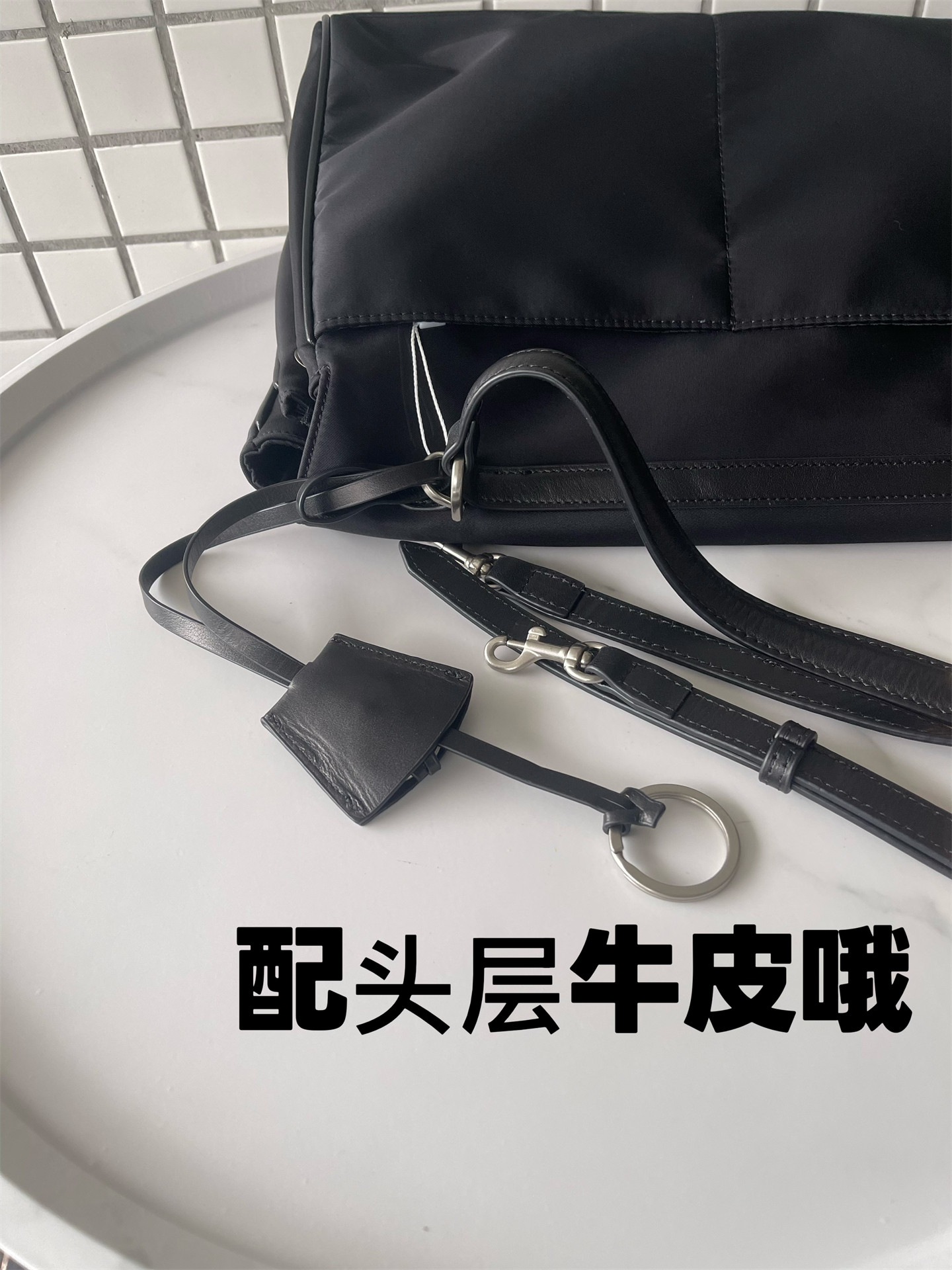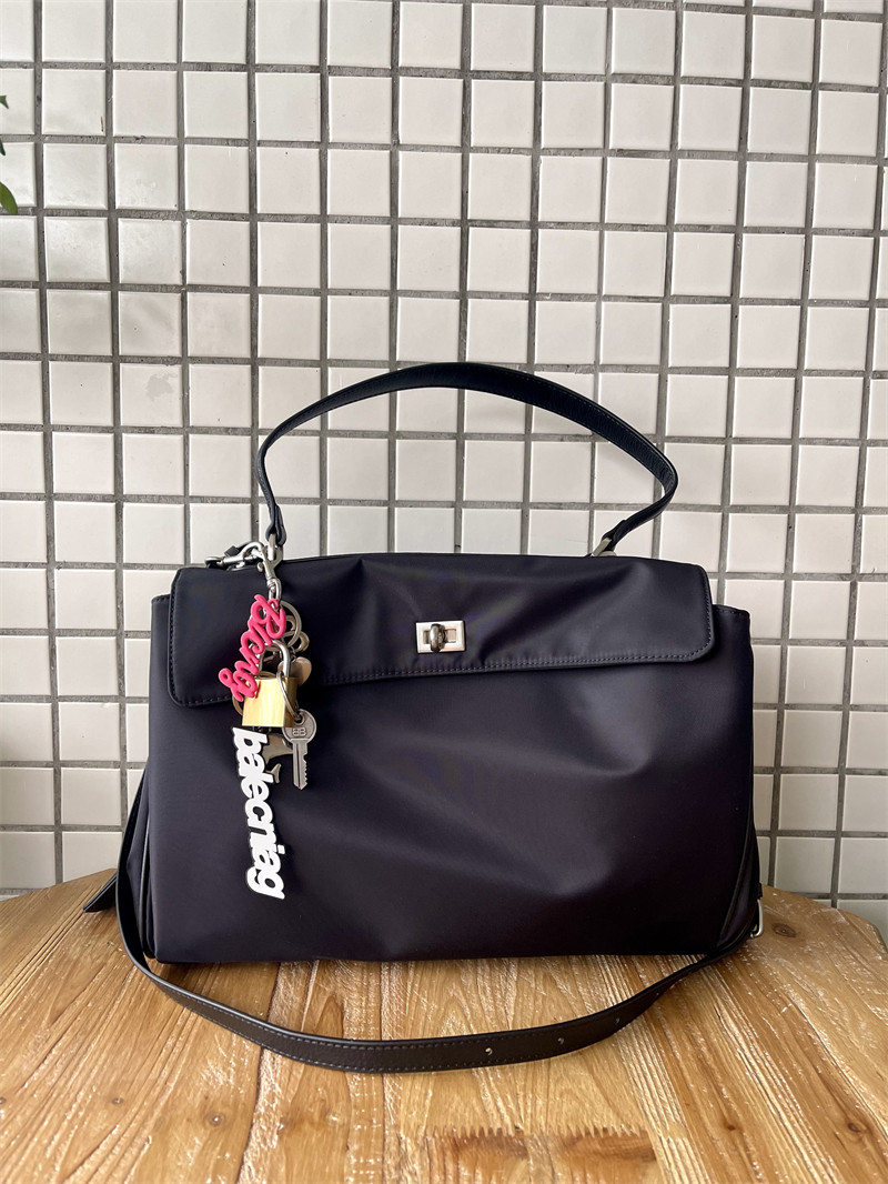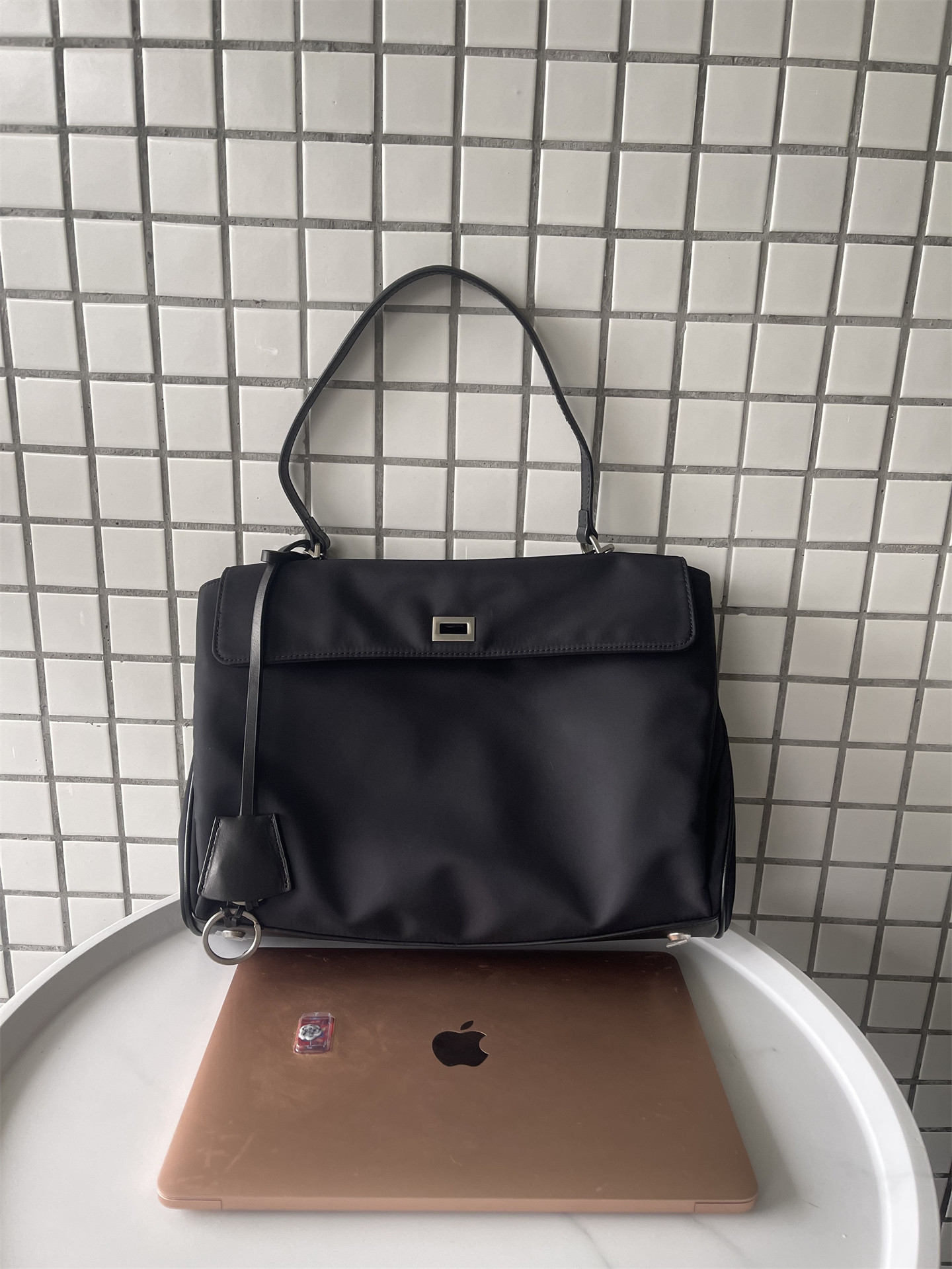 尼龍托特包拼皮凱莉包單肩斜背手提大容量通勤男女黑色電腦包簡約