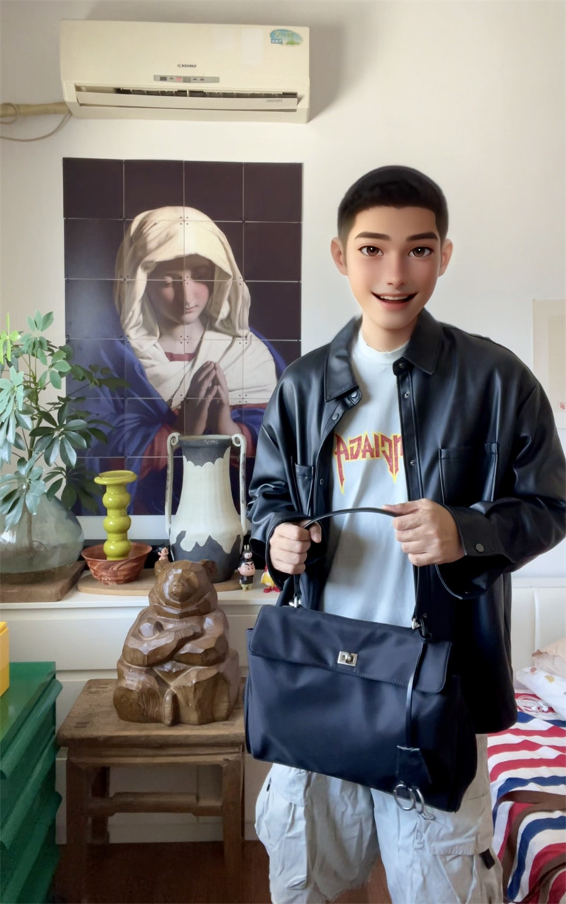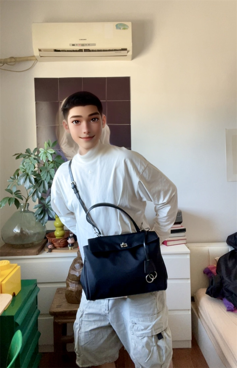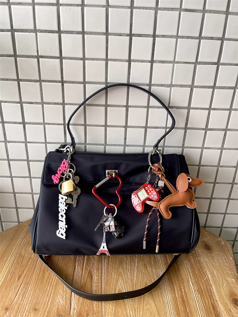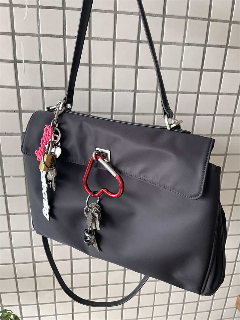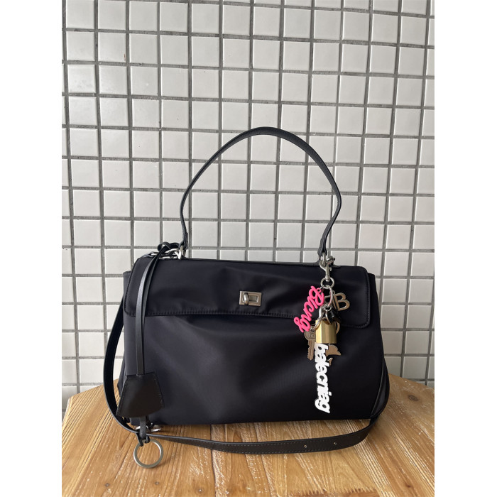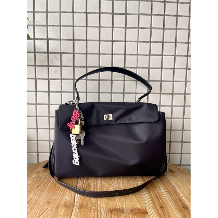 尼龍托特包拼皮凱莉包單肩斜背手提大容量通勤男女黑色電腦包簡約