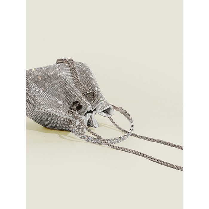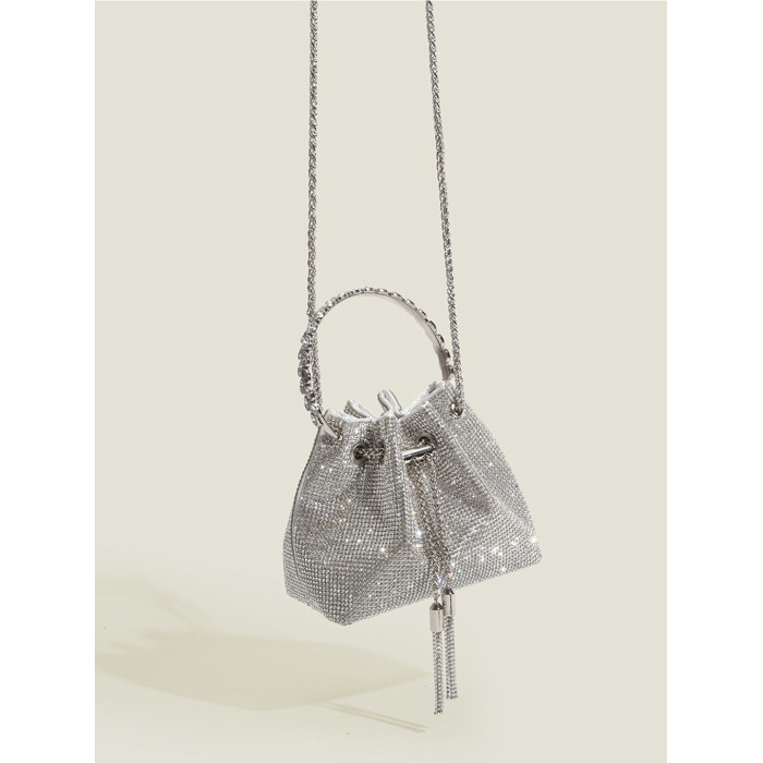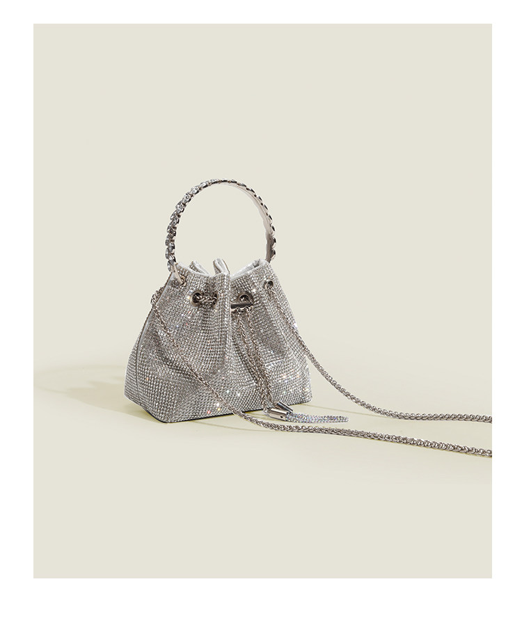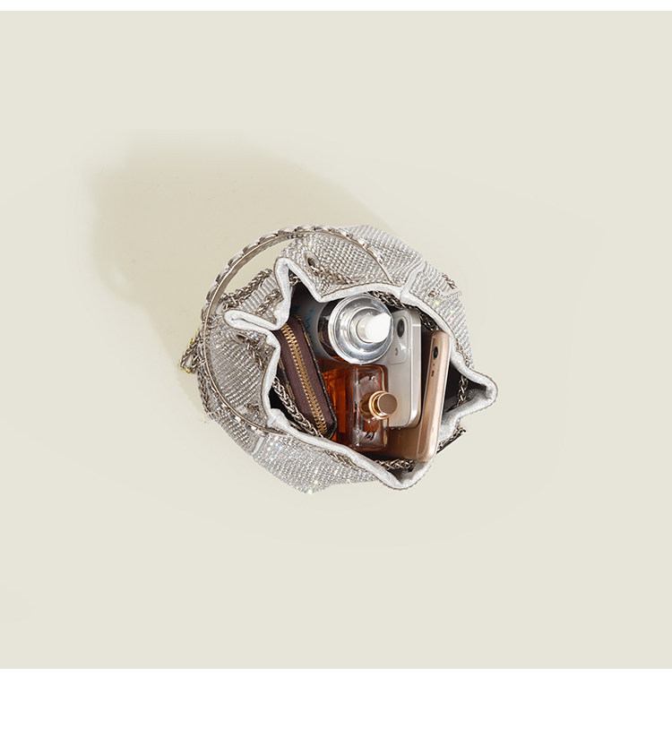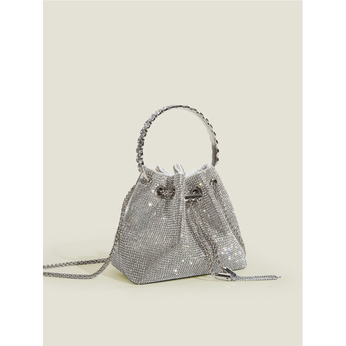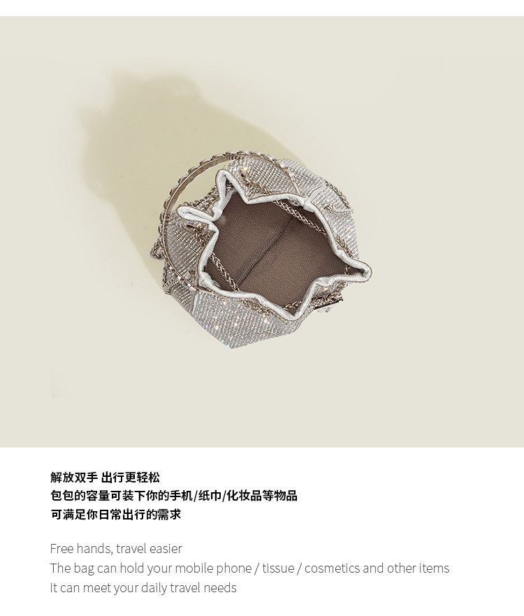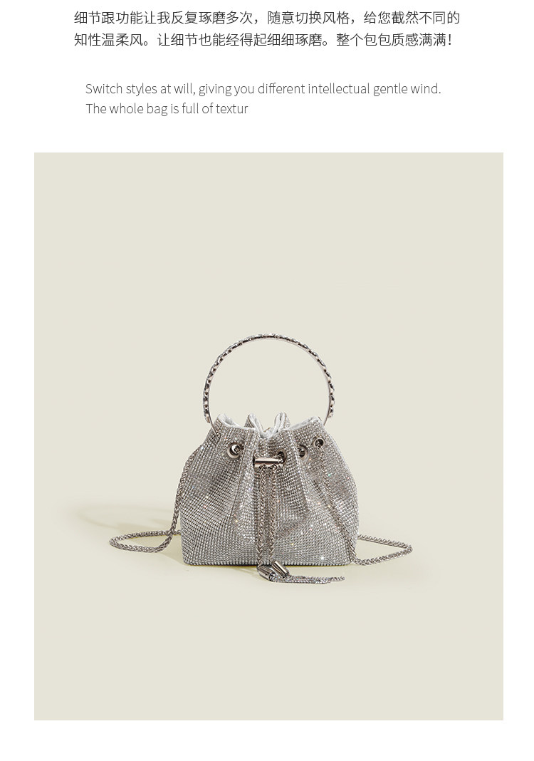 2025新款鑲鑽法式小衆設計水桶包閃亮宴會百搭高級感鏈條網紅女包