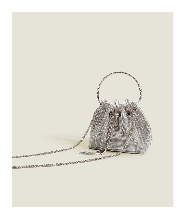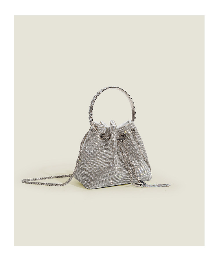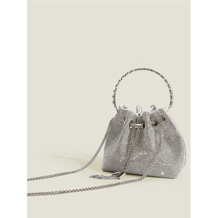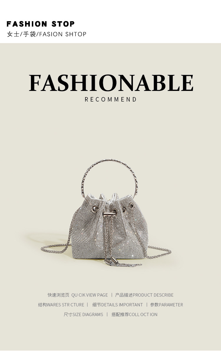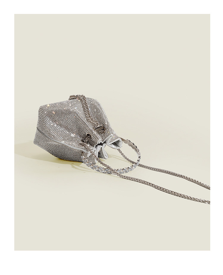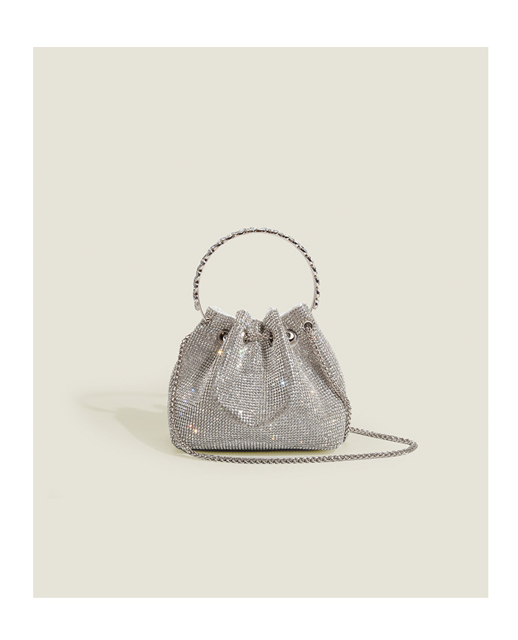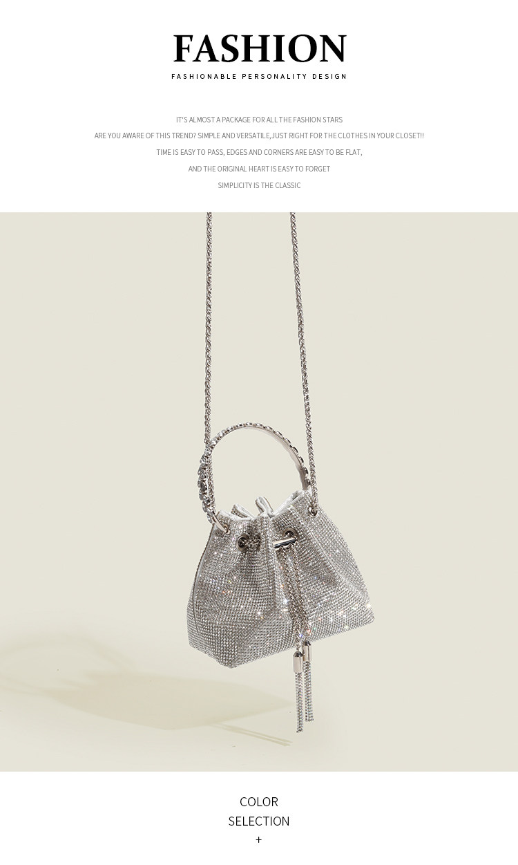 2025新款鑲鑽法式小衆設計水桶包閃亮宴會百搭高級感鏈條網紅女包