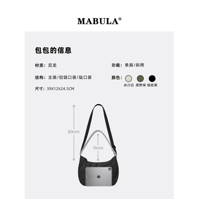 MABULA都市簡約單肩包女斜後後背包2026春季輕便平板包包大容量通勤包