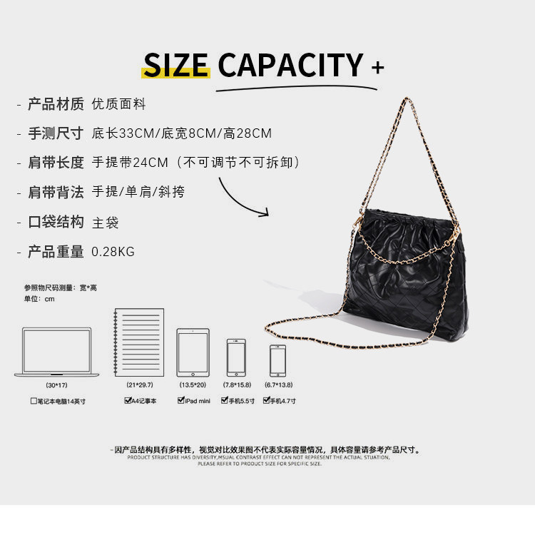 高級感大容量托特流浪包女士2025新款百搭小香風鏈條水桶垃圾袋包