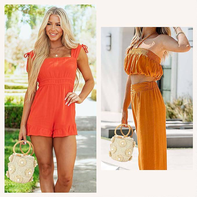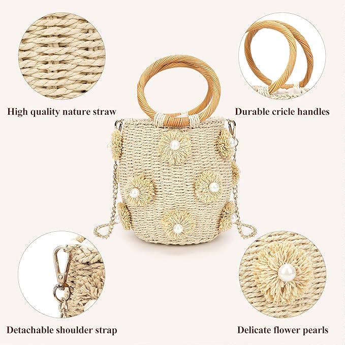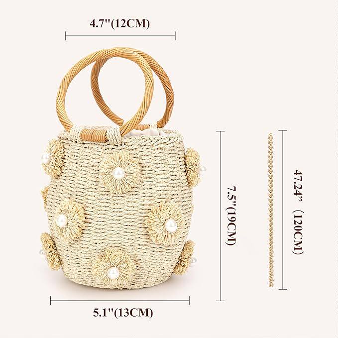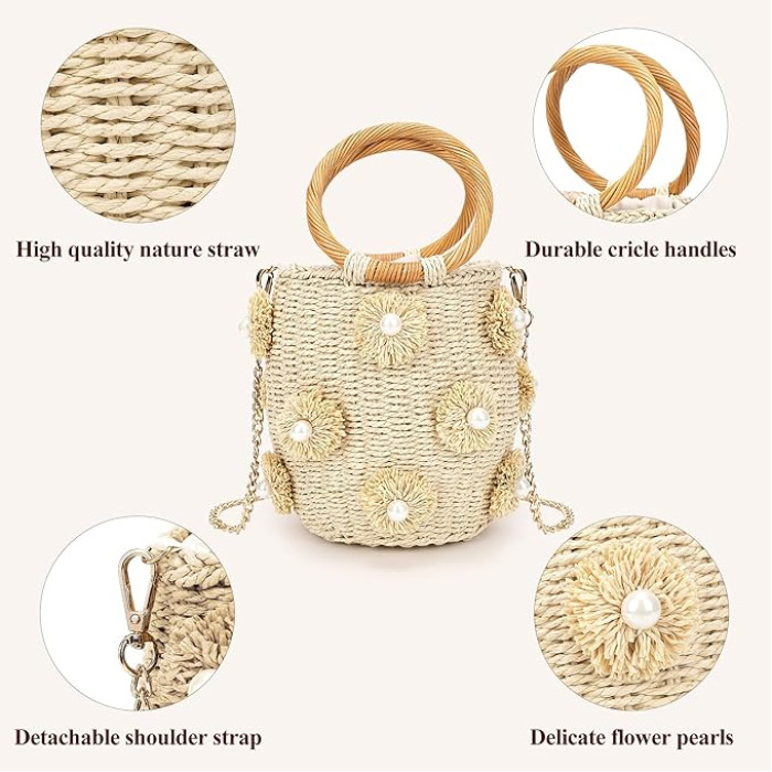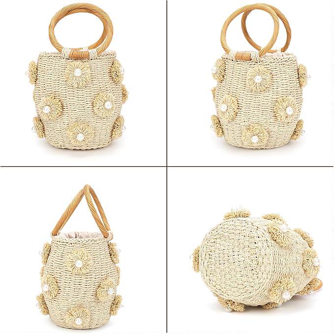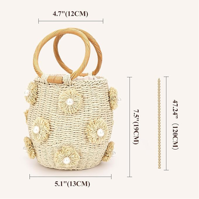 Handcrafted Woven Women's Handbag手工編織女士手提包草編籃式