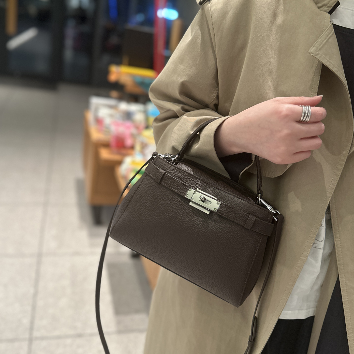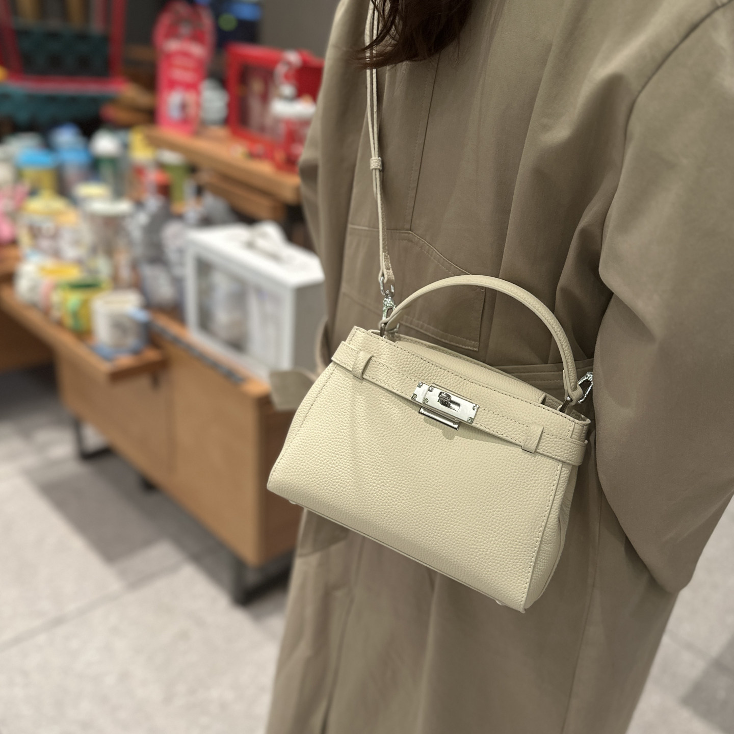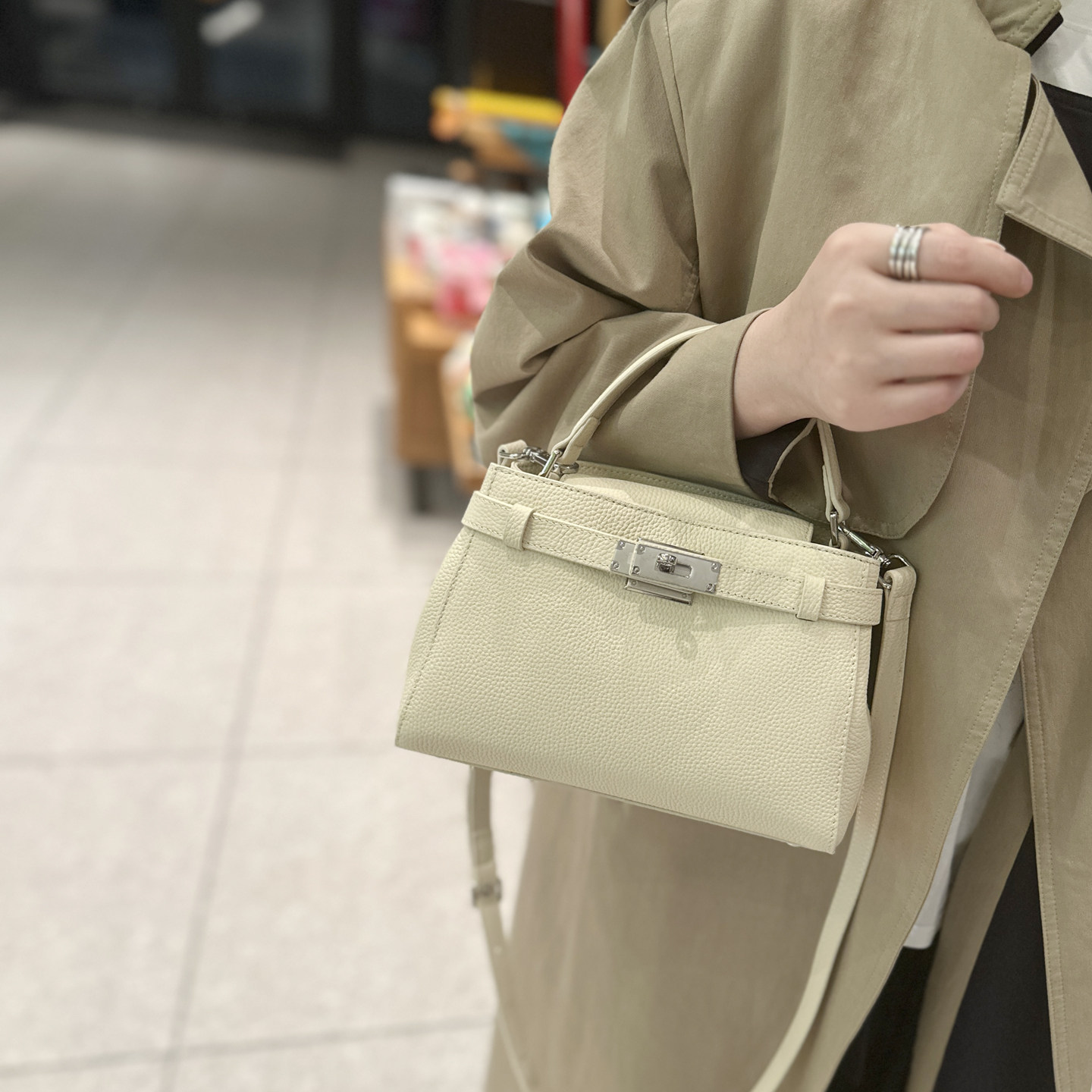 手提凱莉包女2025冬新款鎖釦真皮小方包通勤百搭高級感單肩斜後後背包
