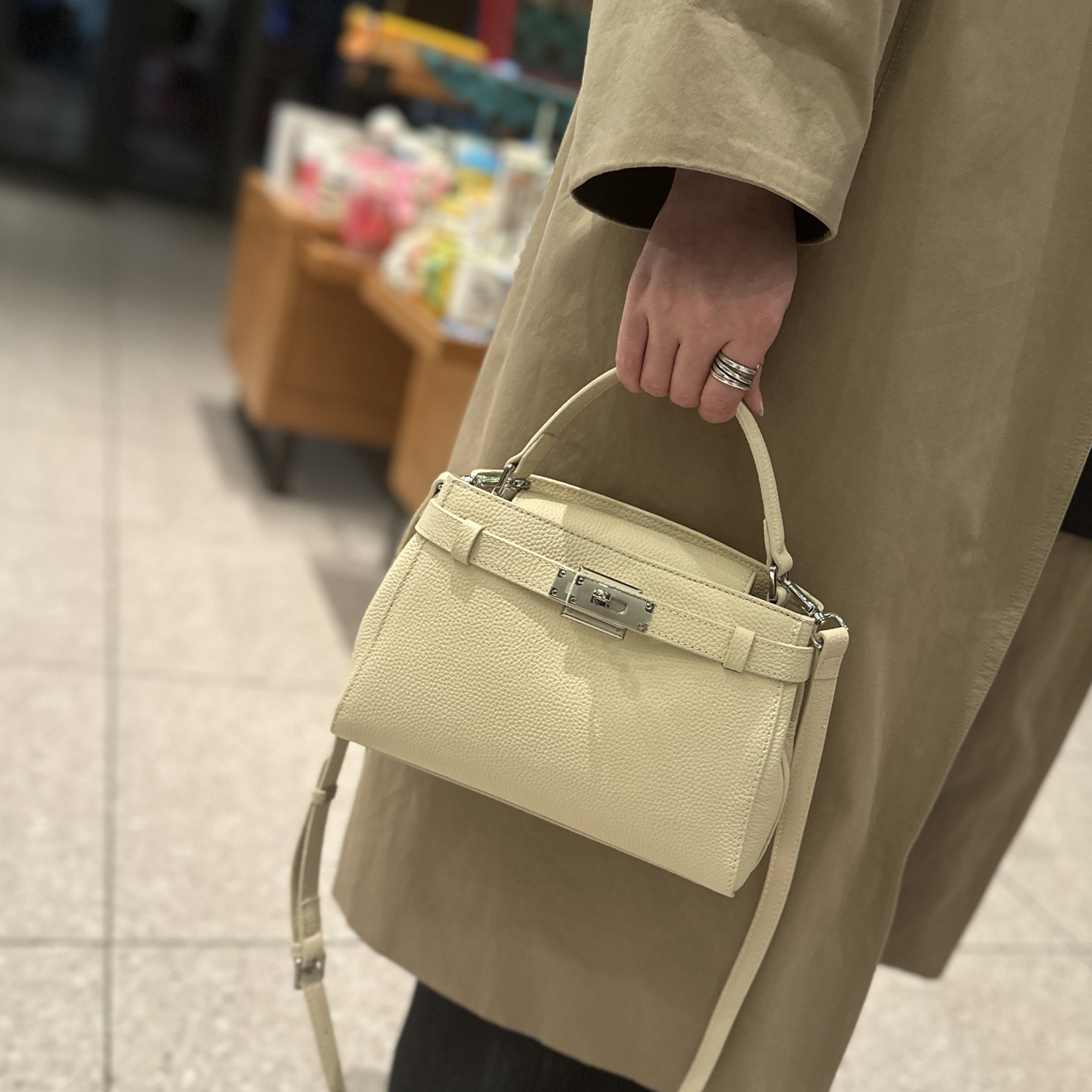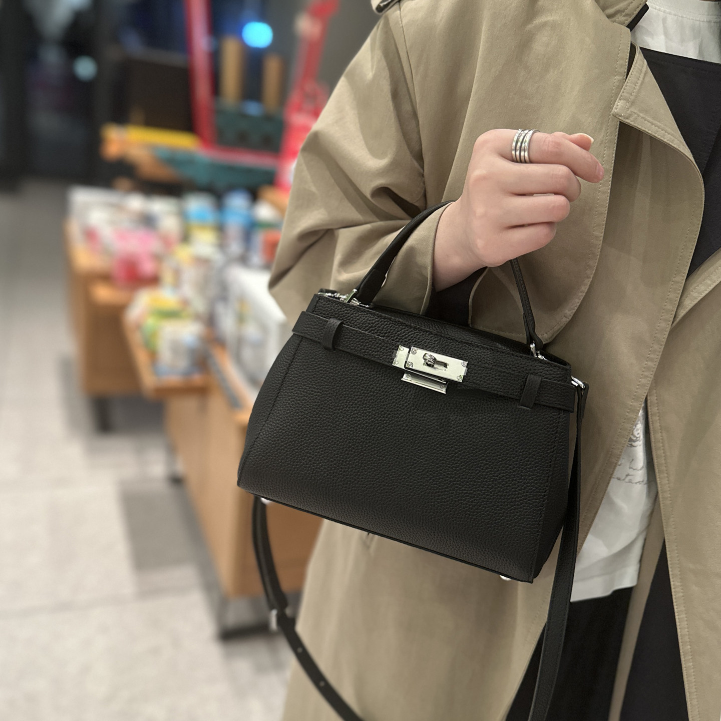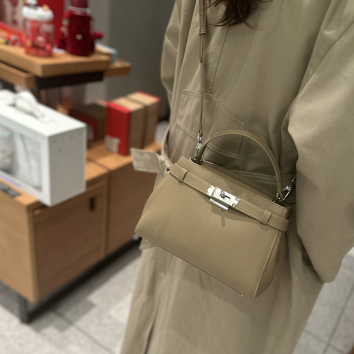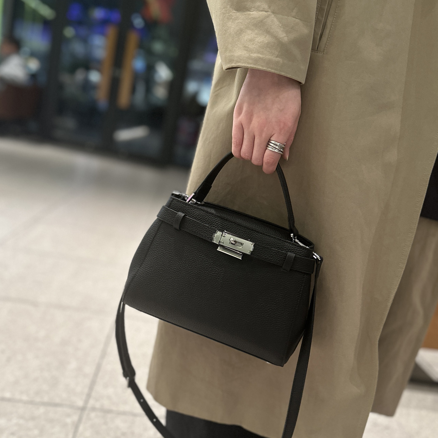 手提凱莉包女2025冬新款鎖釦真皮小方包通勤百搭高級感單肩斜後後背包