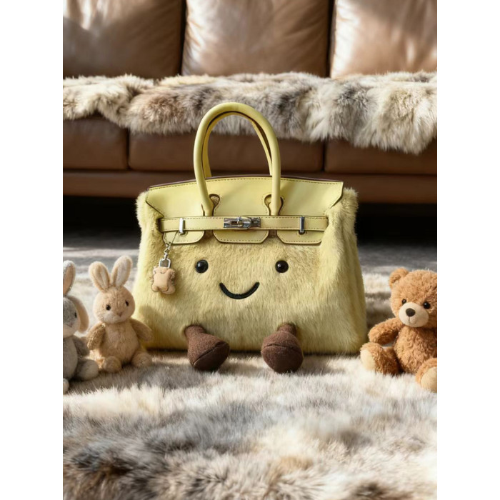 2025秋冬毛絨小挎包新款bk小精靈鉑金包凱莉包大容量單肩托特包女