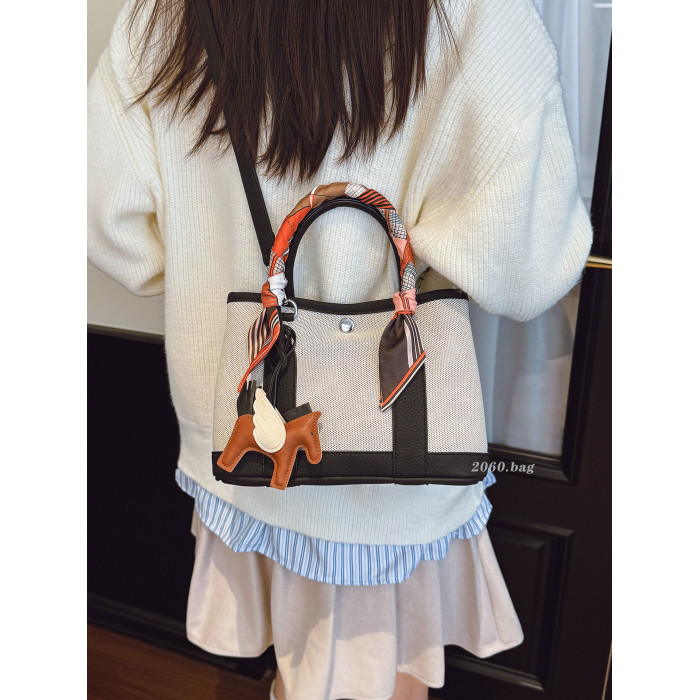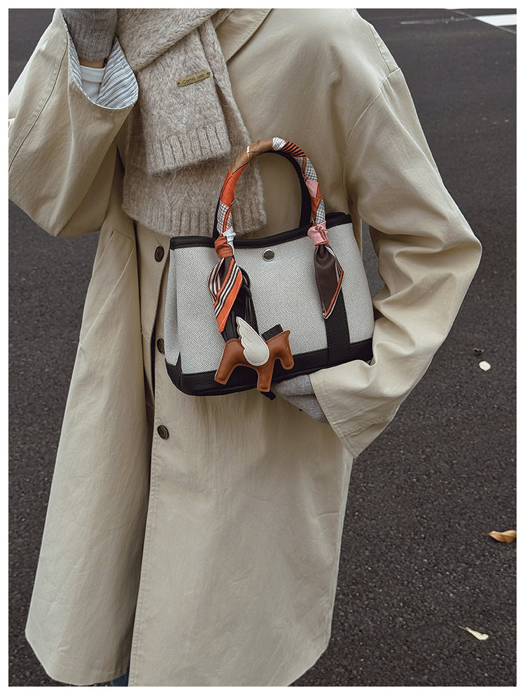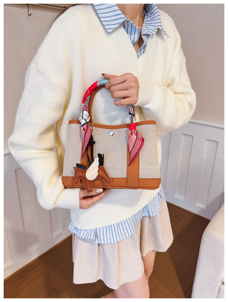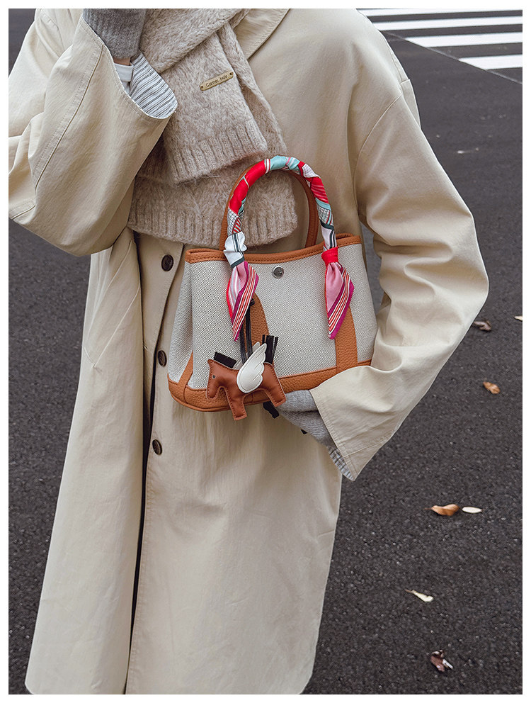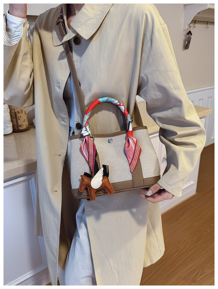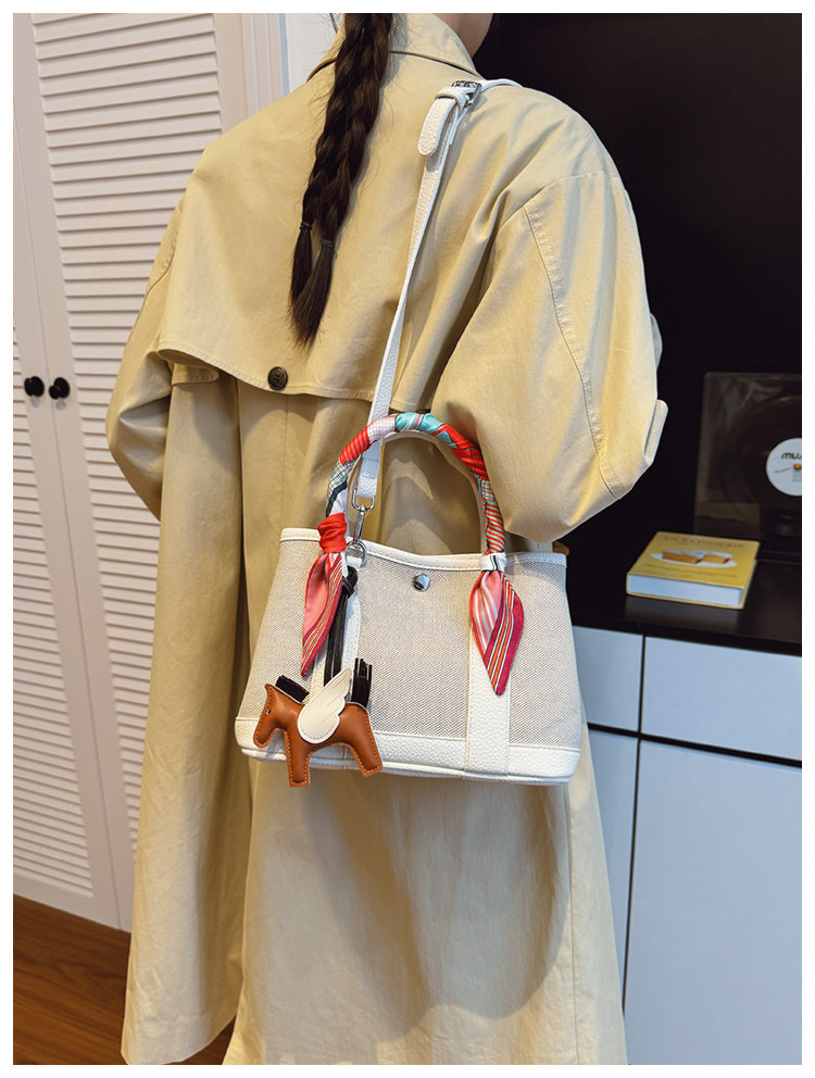 休閒時尚帆布水桶包2025新款女百搭韓版ins小衆設計單肩斜後後背包包