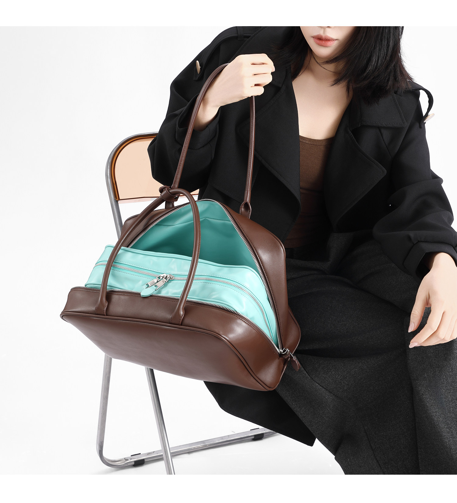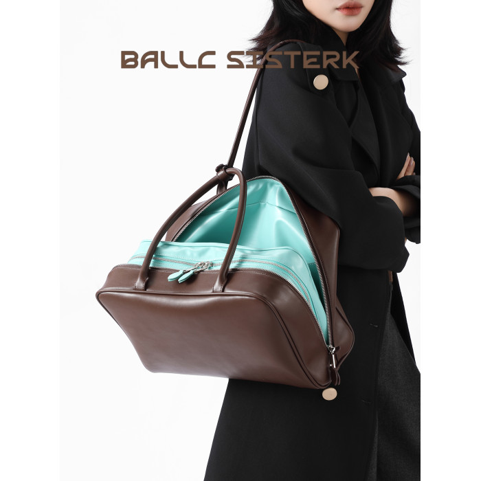 BALLCSISTERK小衆時尚撞色拼接托特包女春季新款通勤大容量公文包