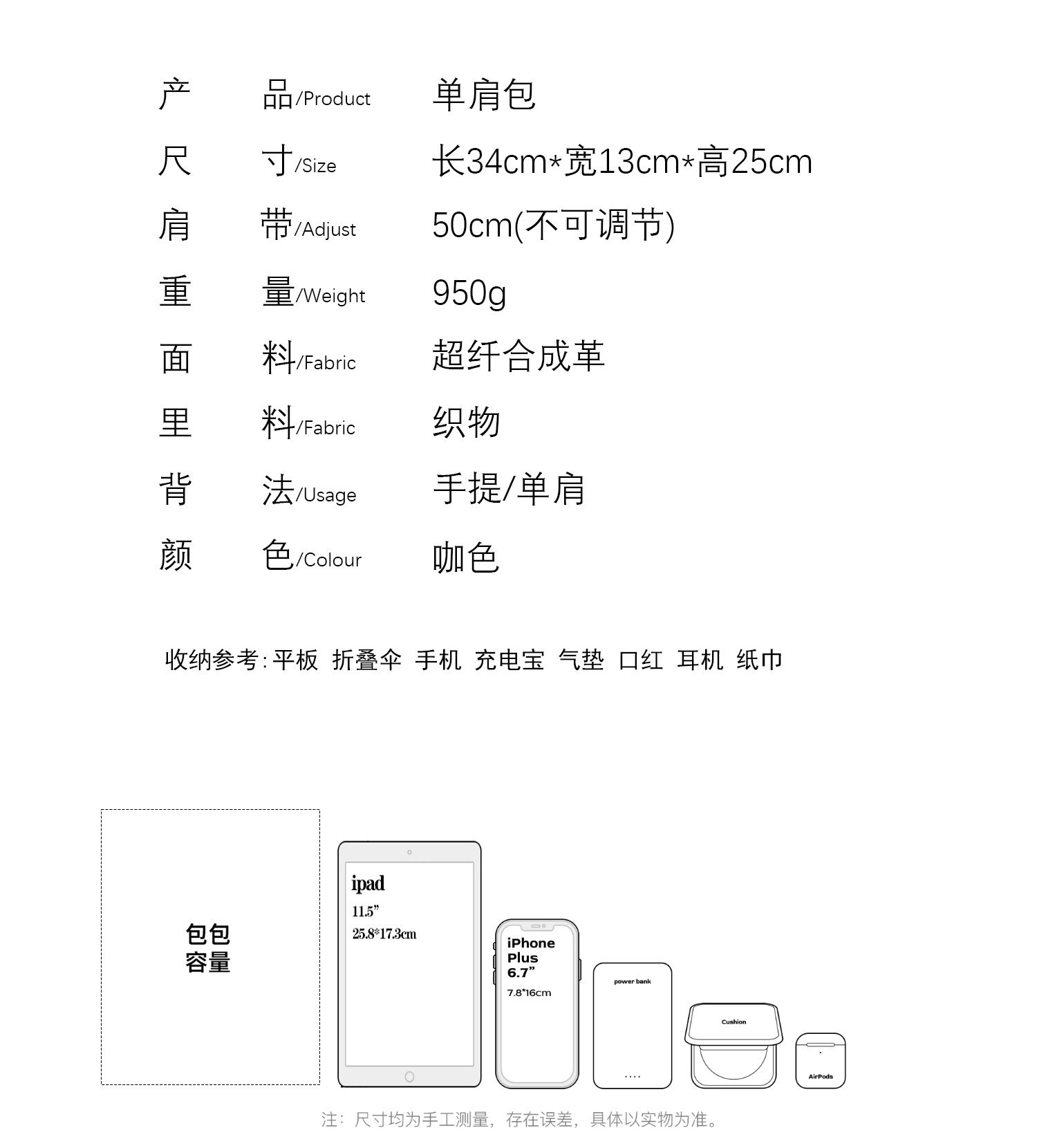 | 肩帶材質 | PU皮 |