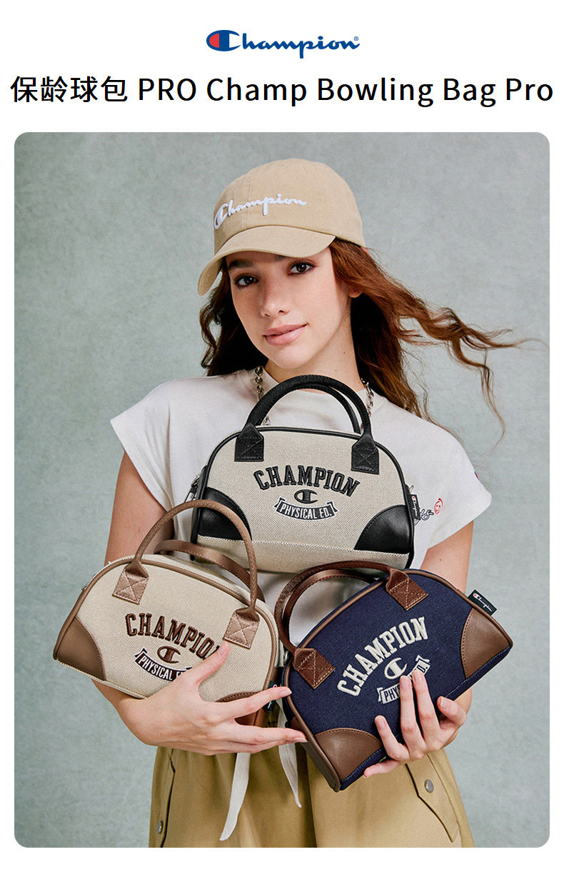 Champion冠軍官方單肩包保齡球包女刺綉手提包枕頭包斜後後背包