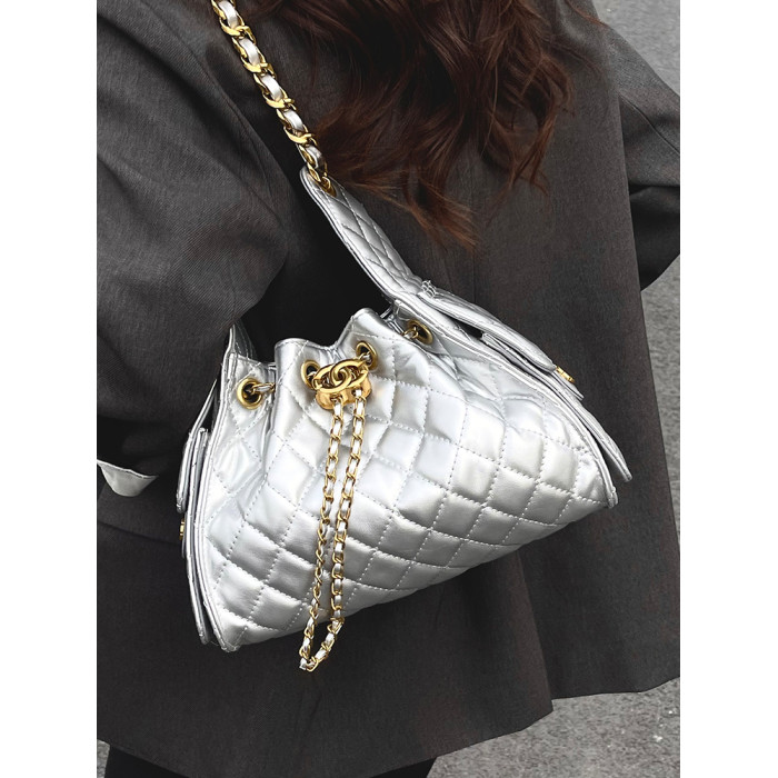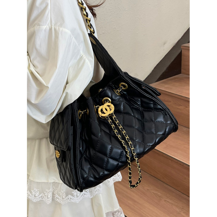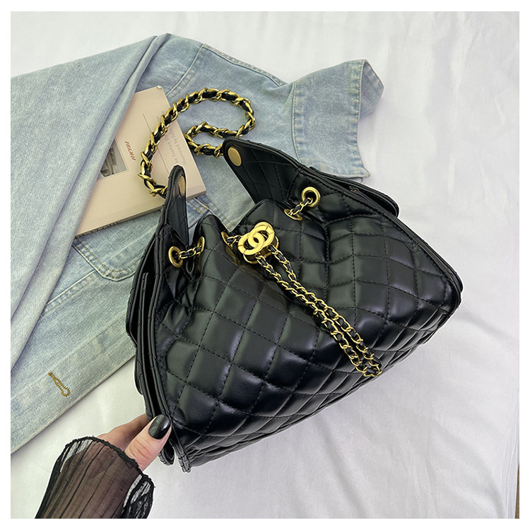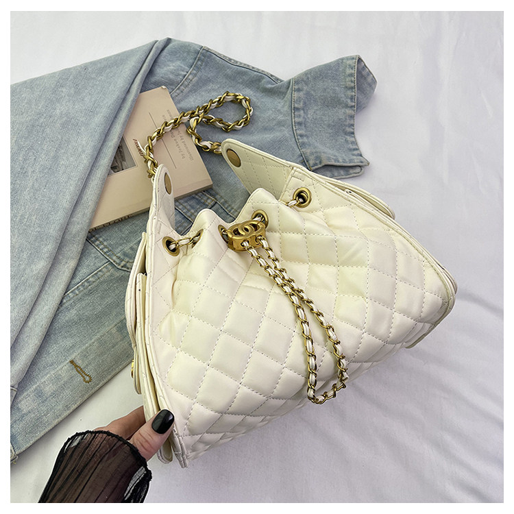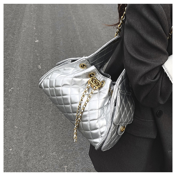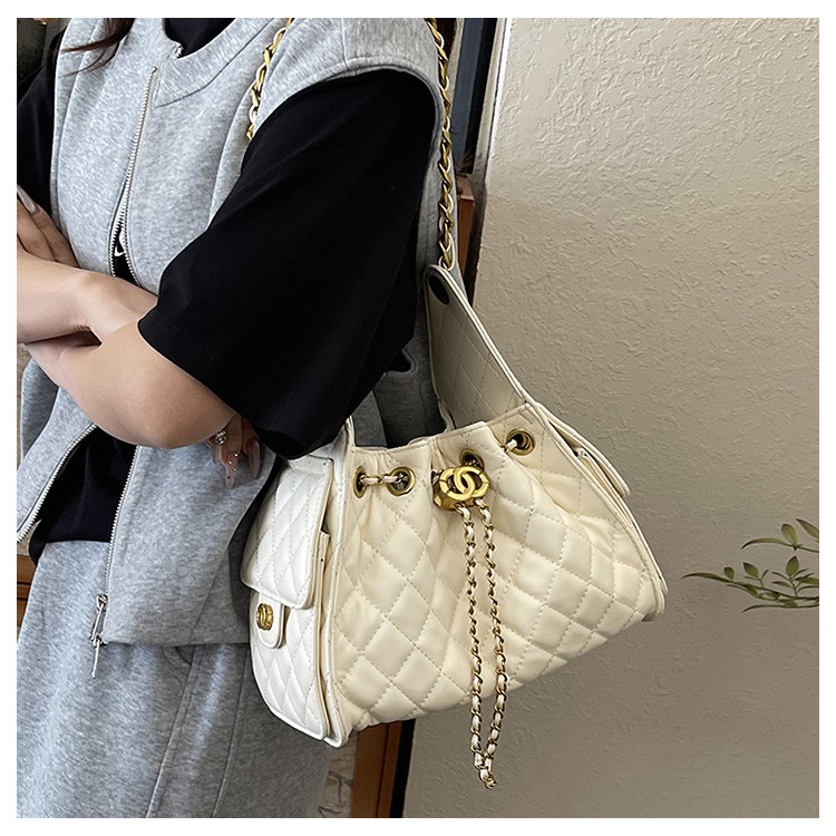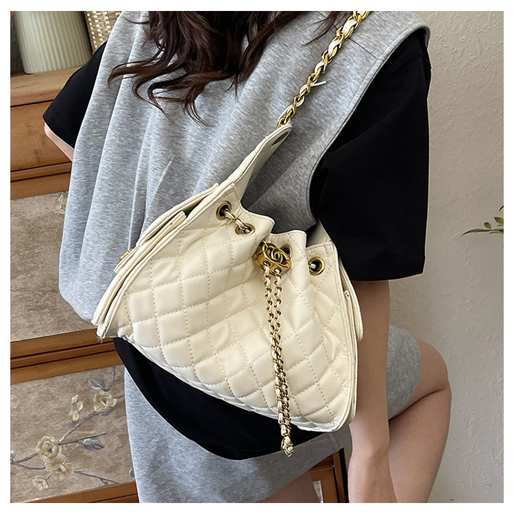菱格鏈條小香風水桶包2025夏季新款女包時尚潮單肩包抽帶大容量