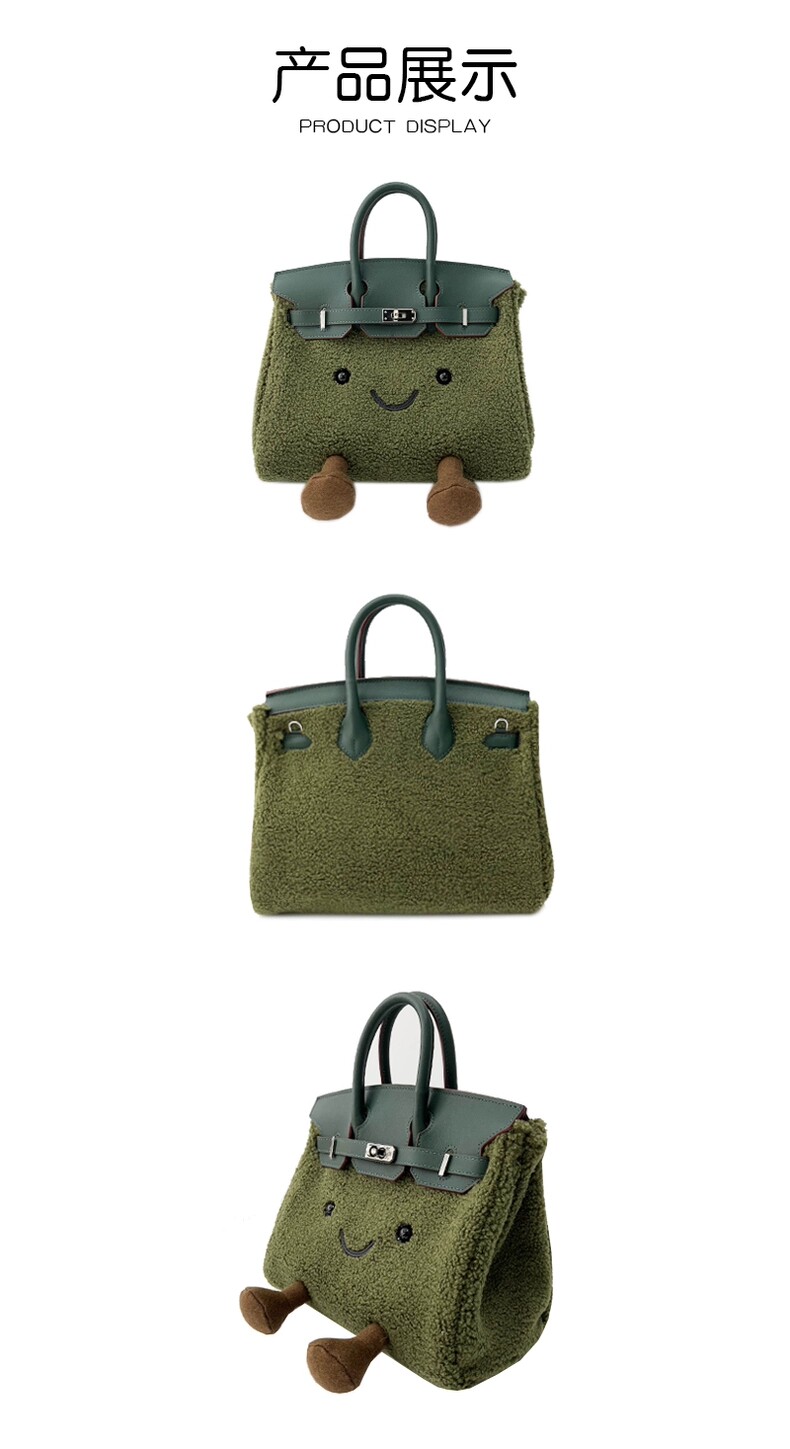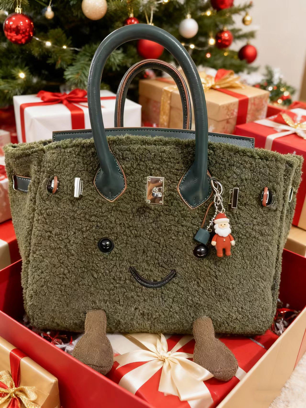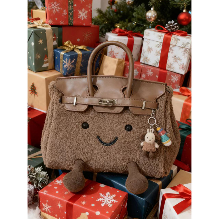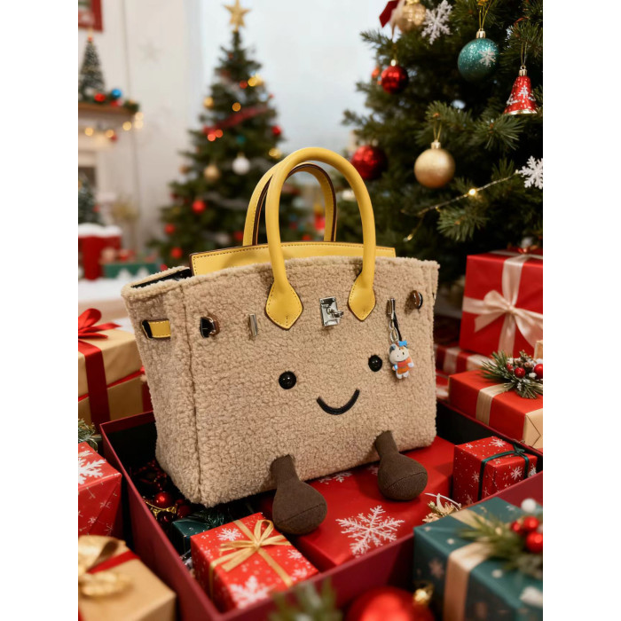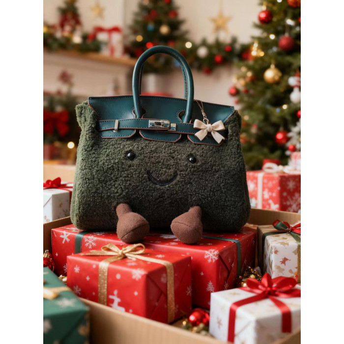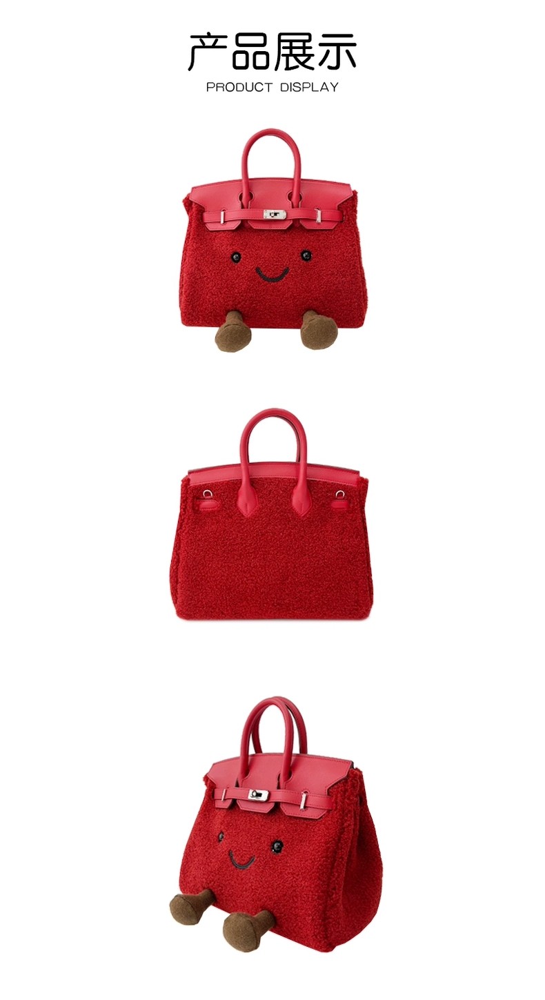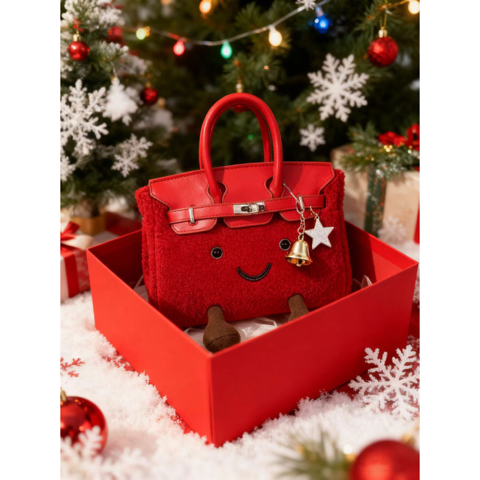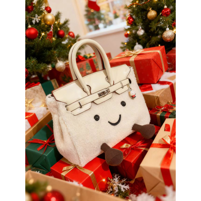 ZRVR新款聖誕節限定羊羔絨手提包軟萌可愛鉑金包單肩斜背凱莉包女