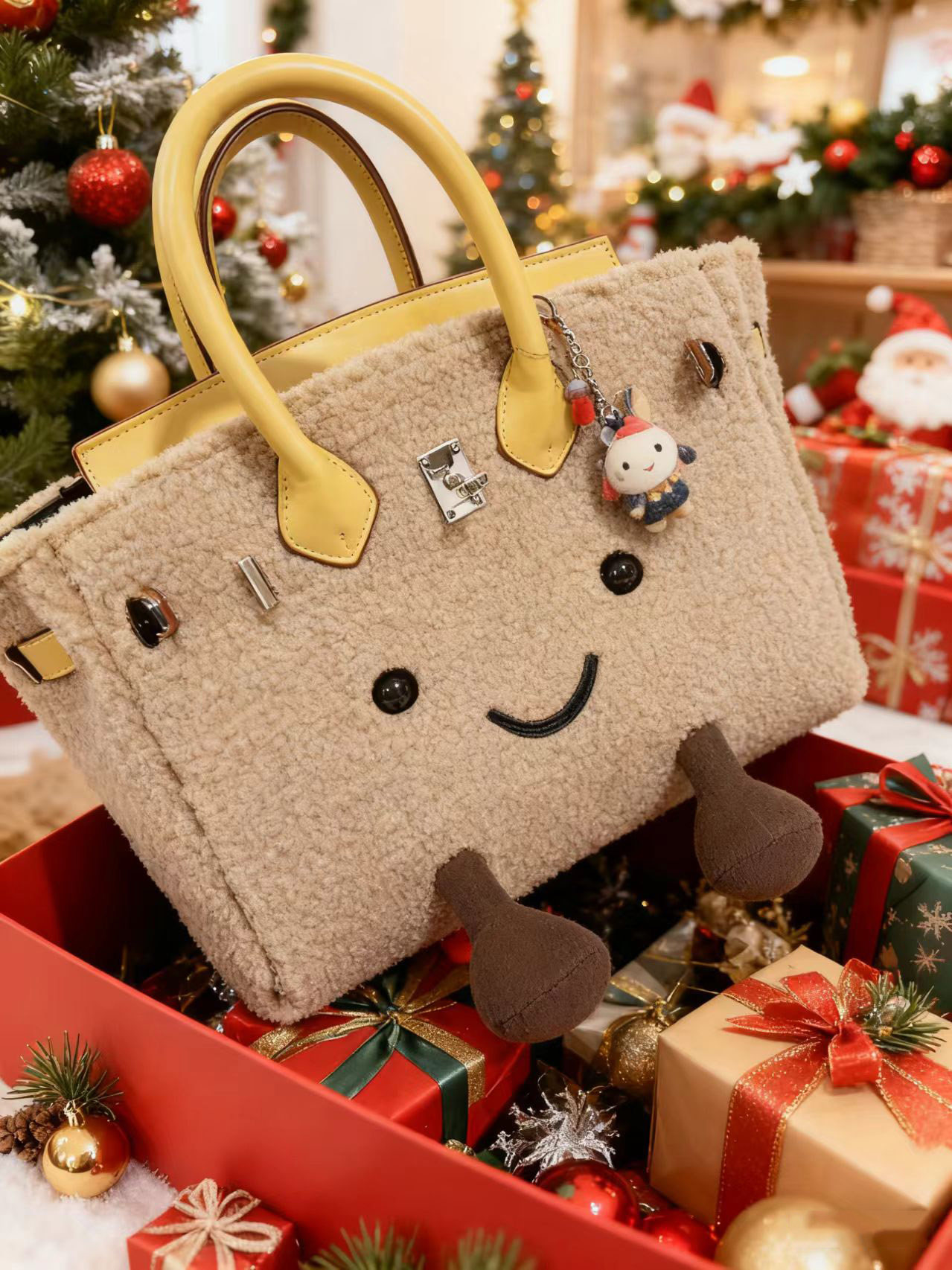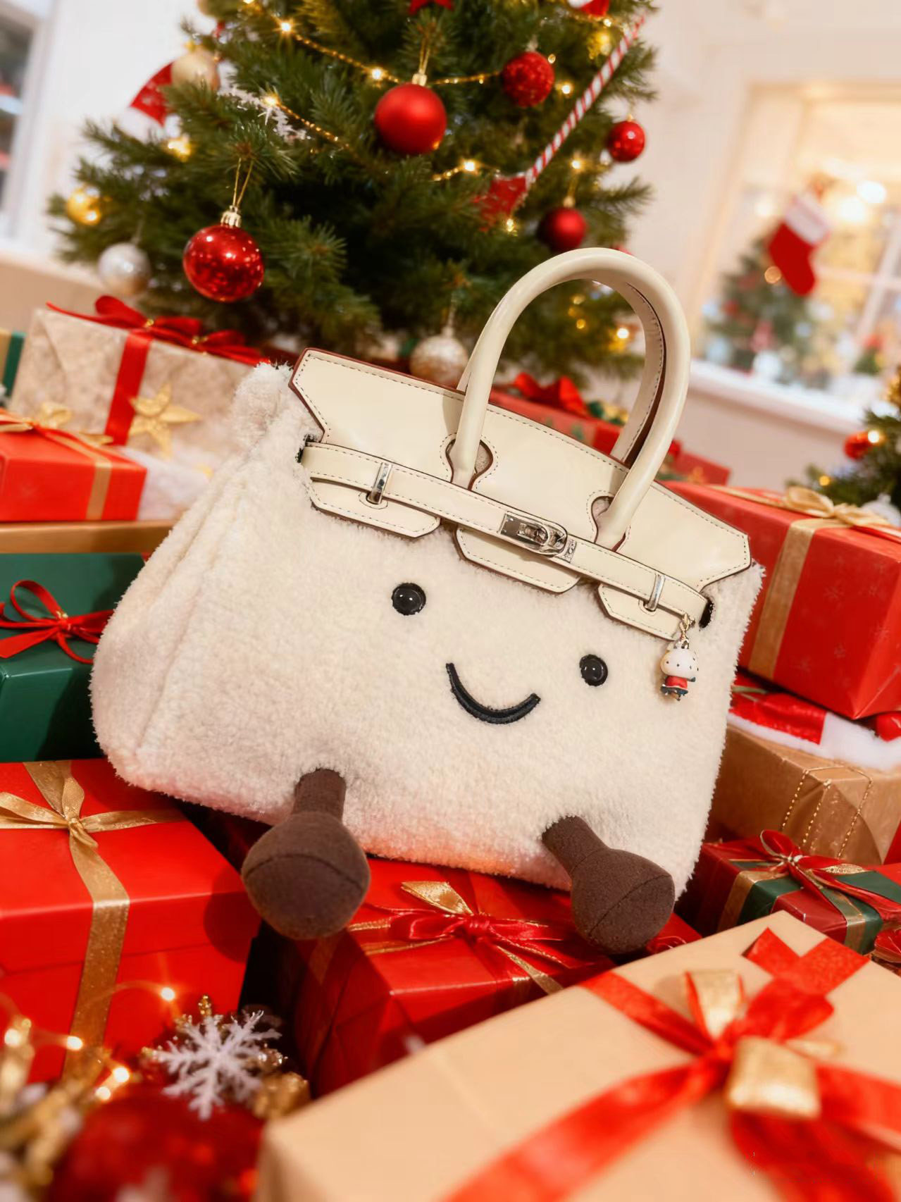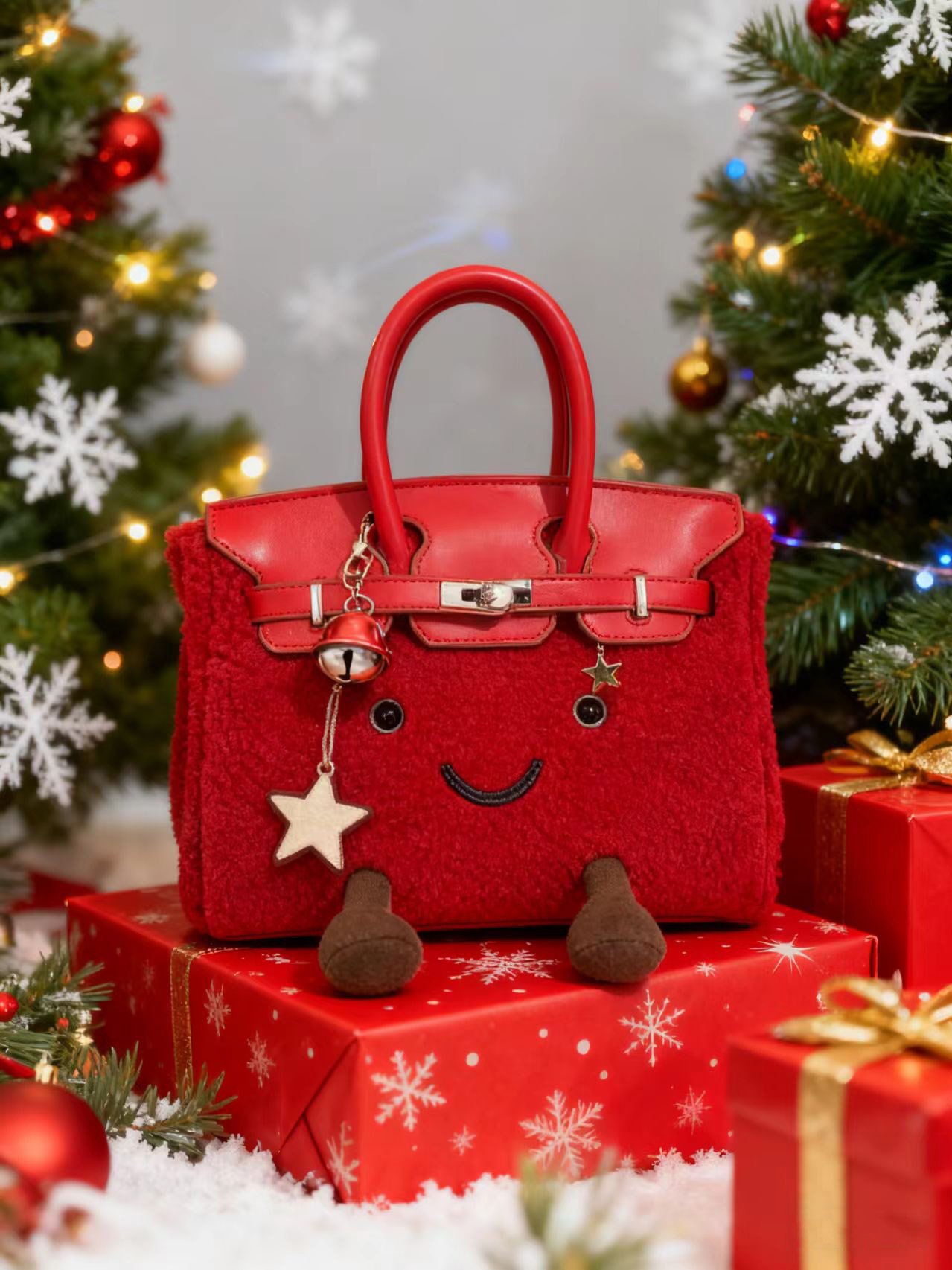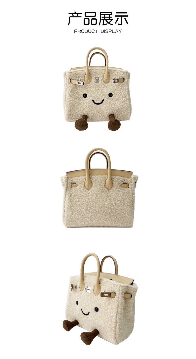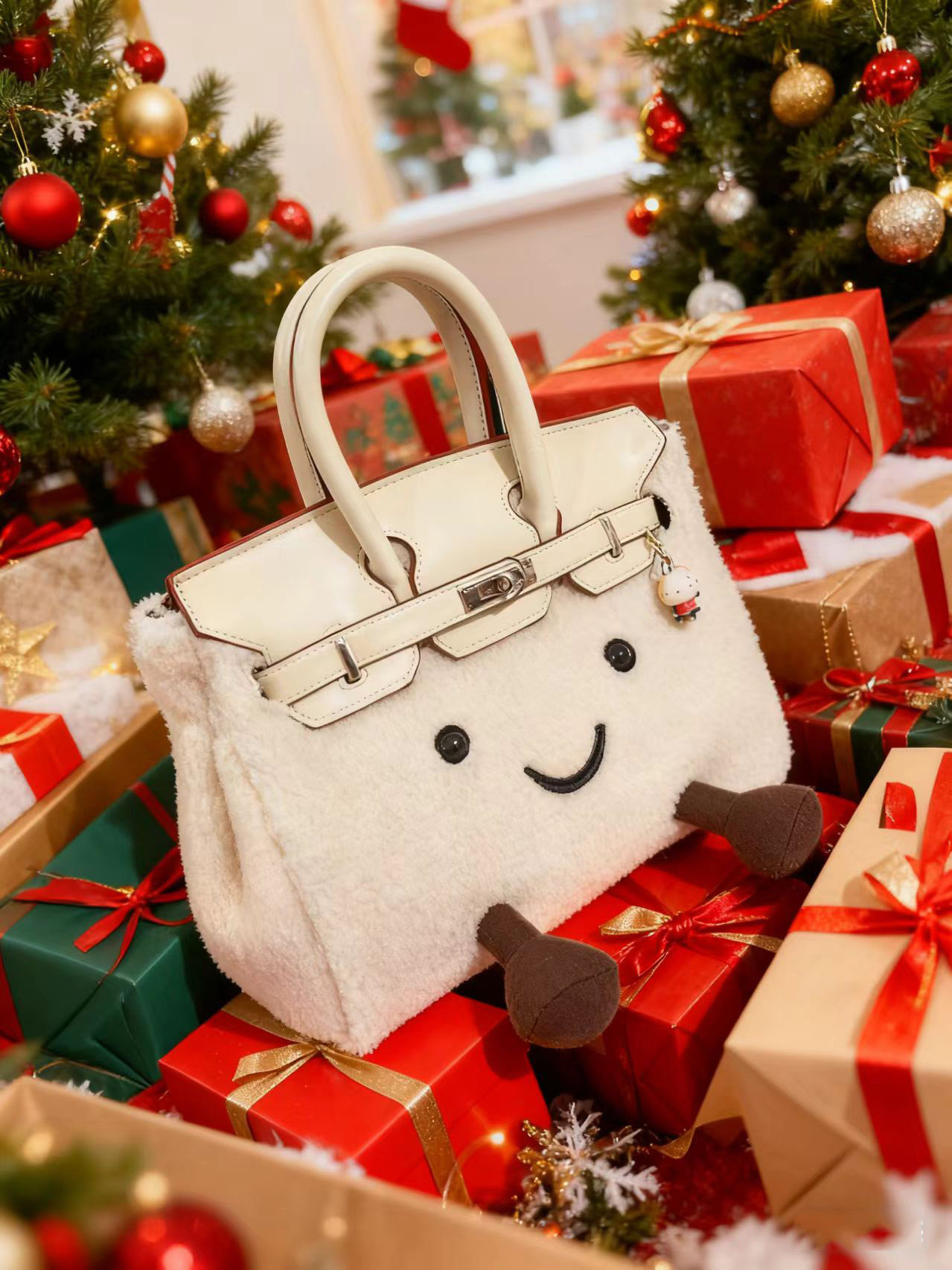 ZRVR新款聖誕節限定羊羔絨手提包軟萌可愛鉑金包單肩斜背凱莉包女