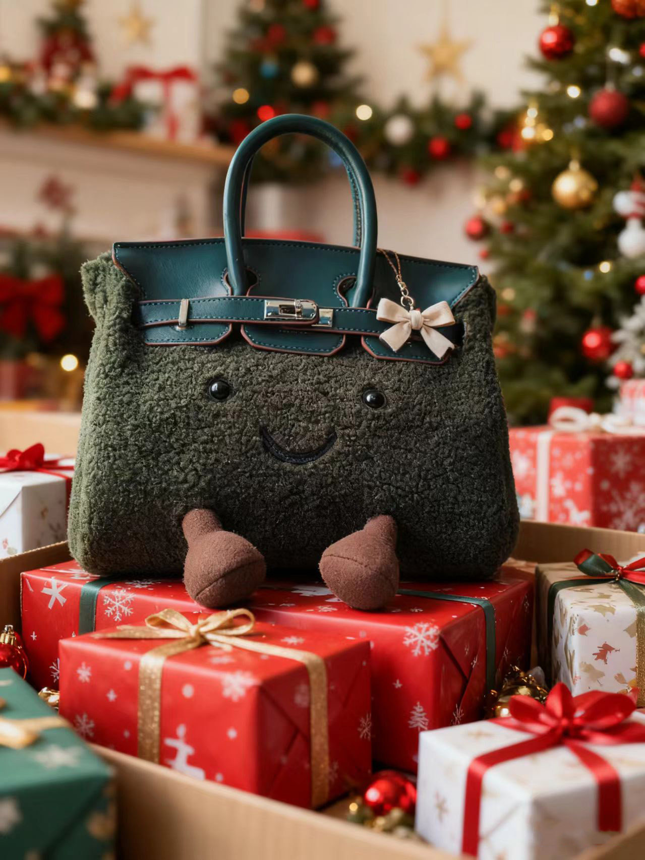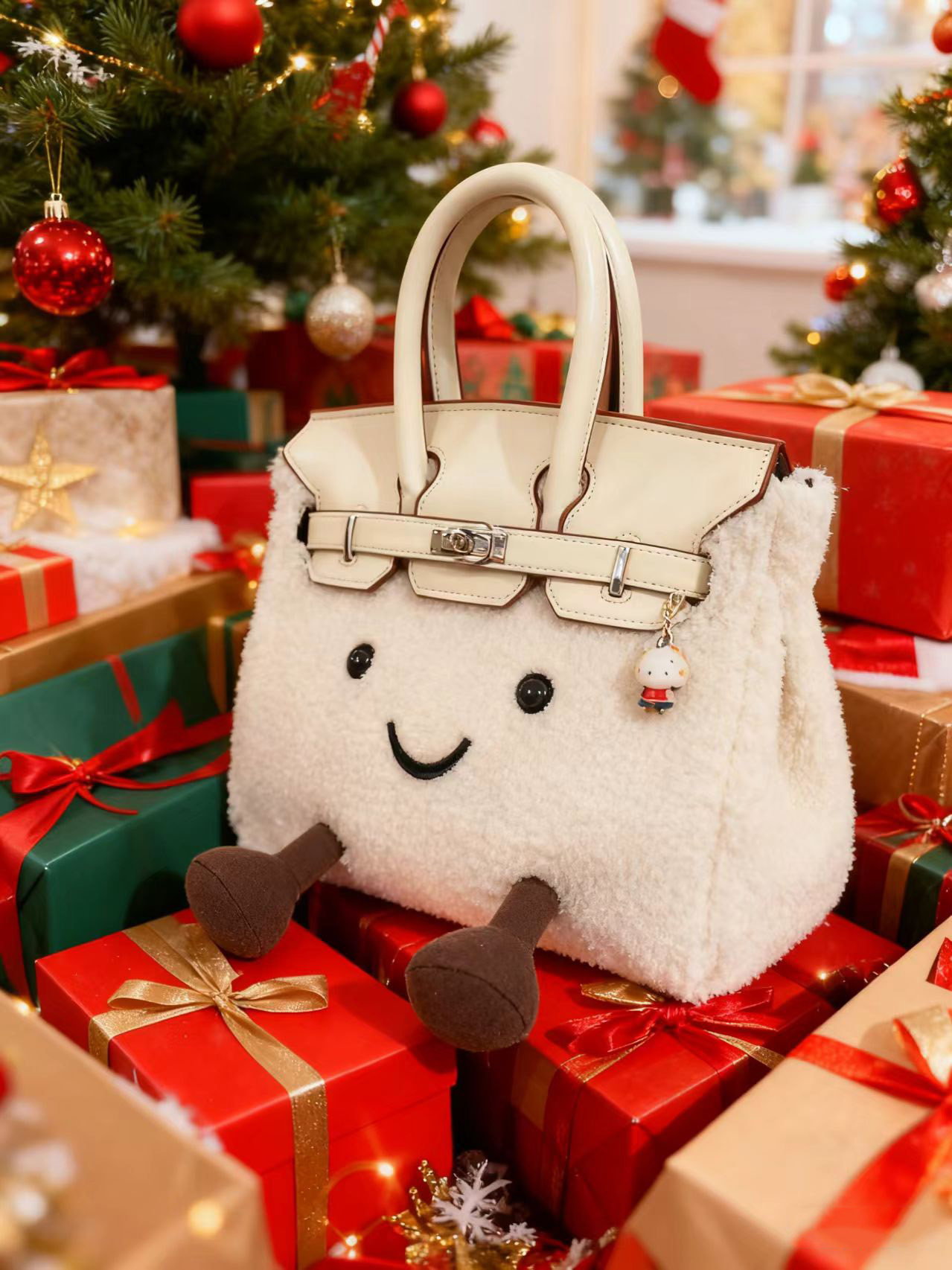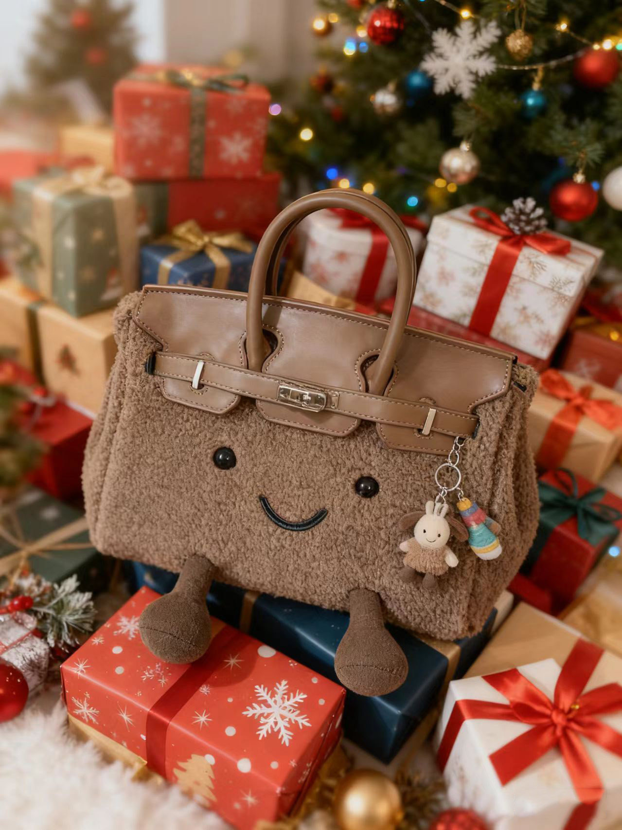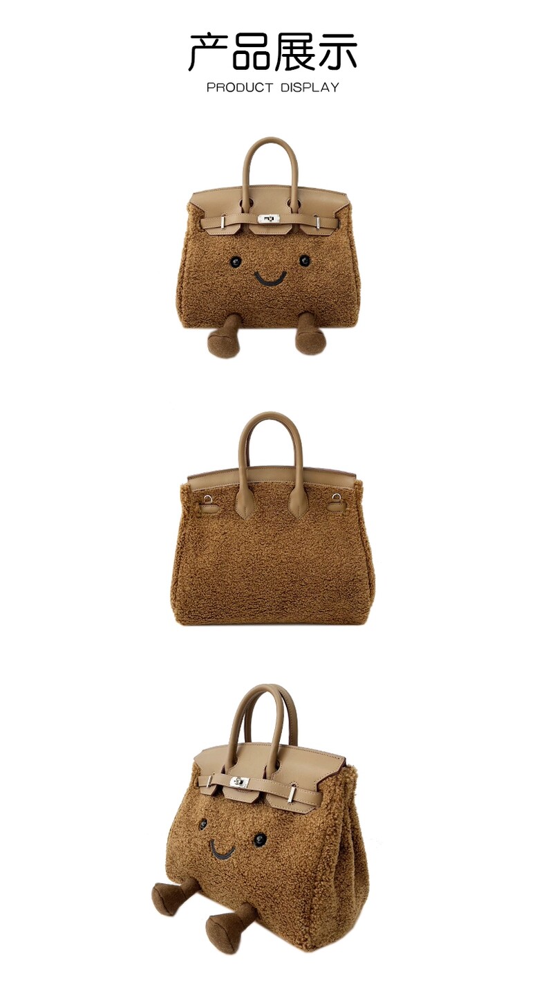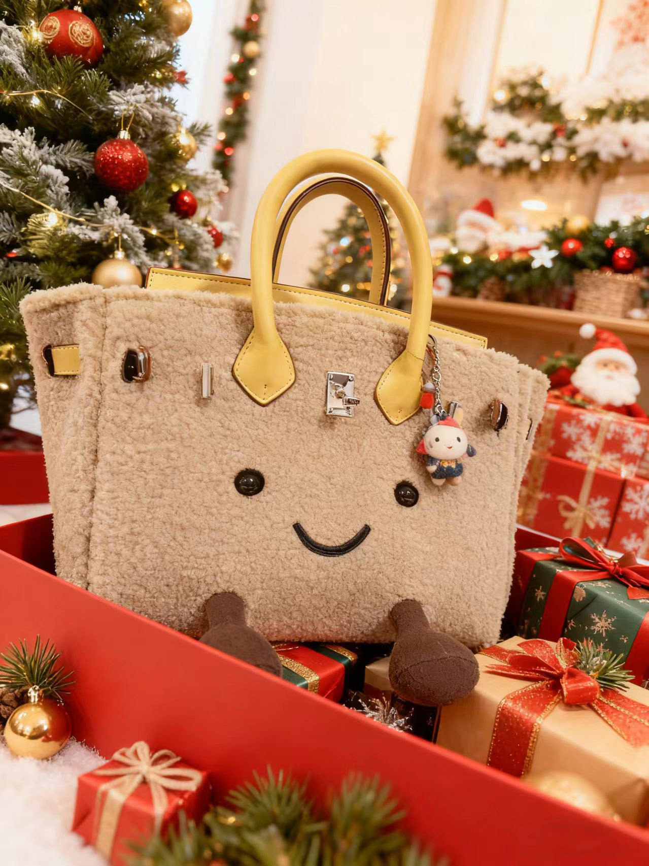 ZRVR新款聖誕節限定羊羔絨手提包軟萌可愛鉑金包單肩斜背凱莉包女