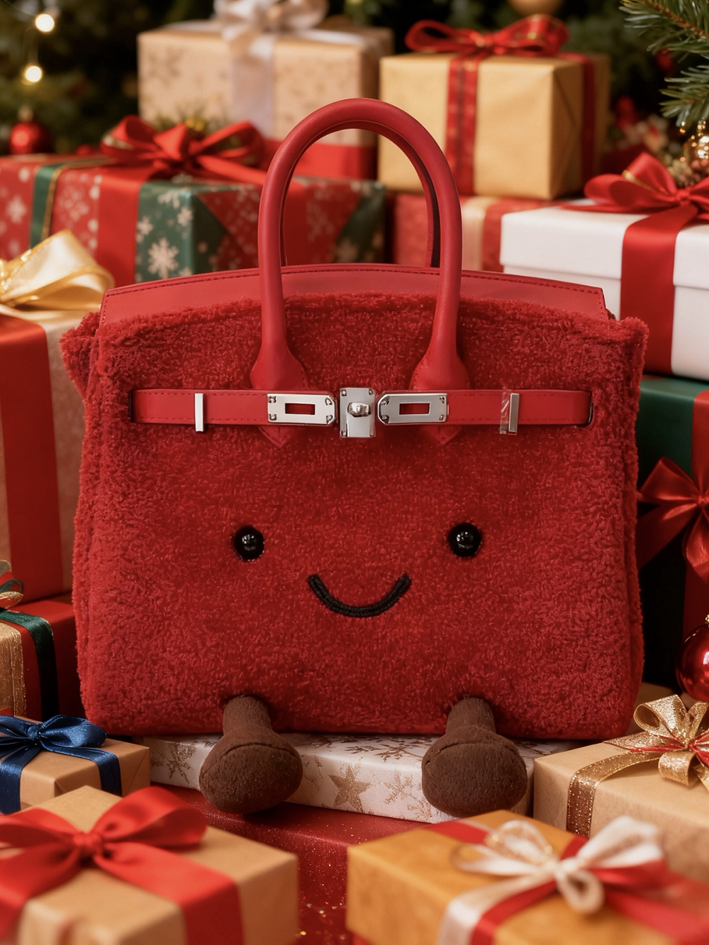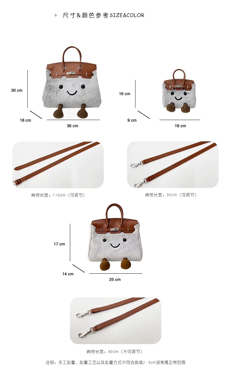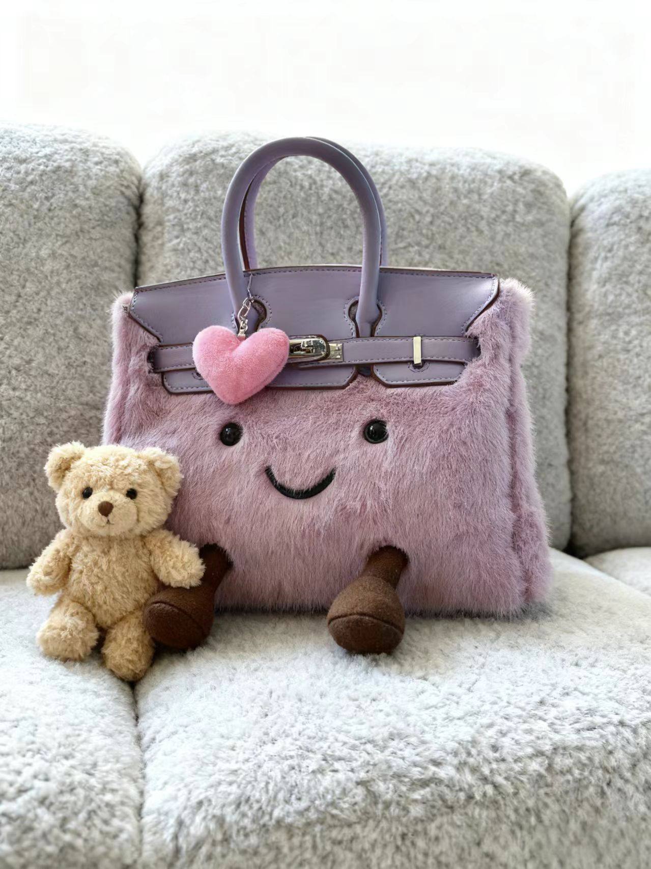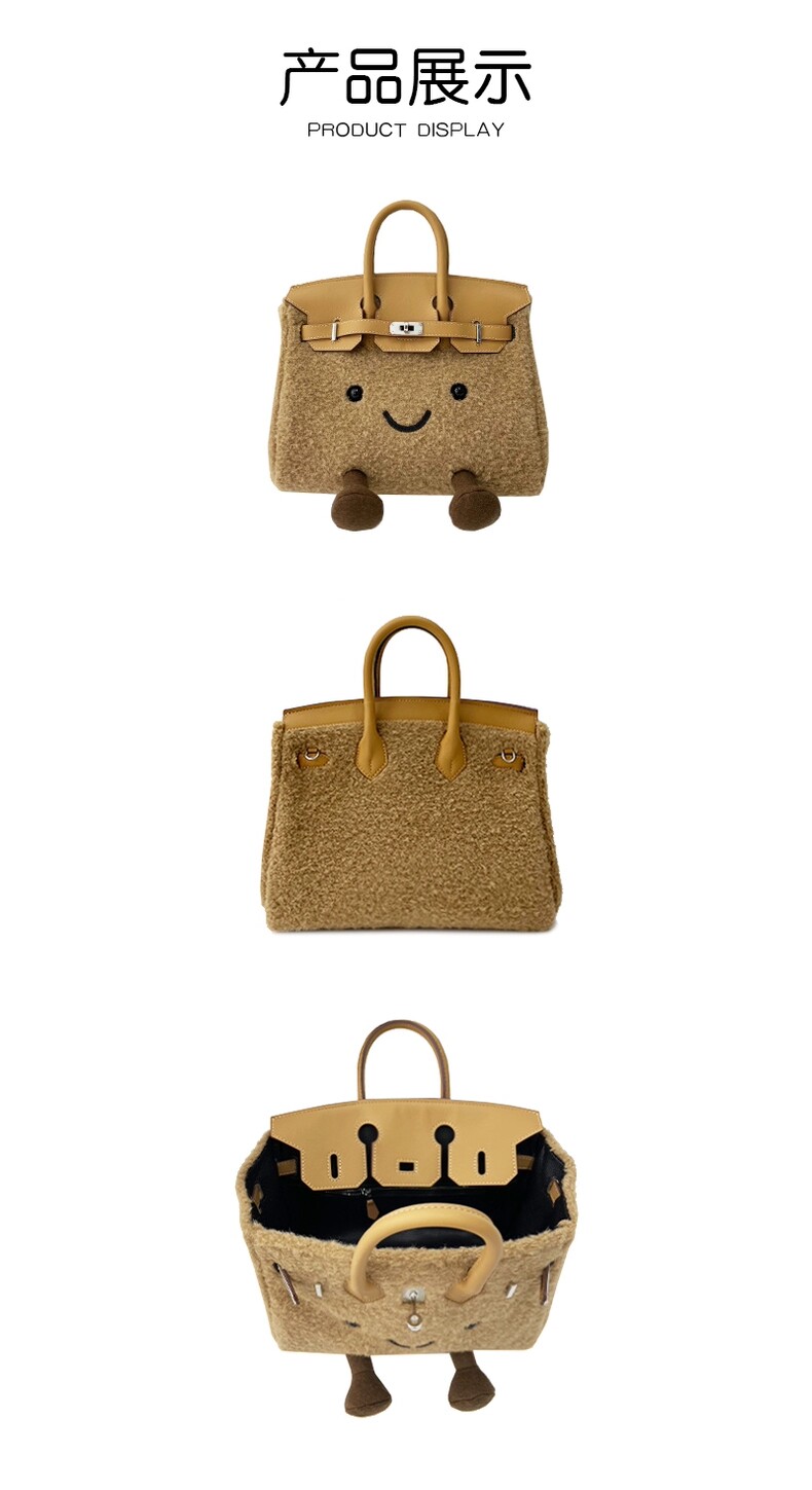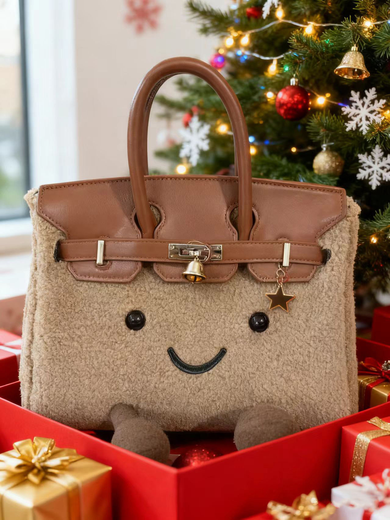 ZRVR新款聖誕節限定羊羔絨手提包軟萌可愛鉑金包單肩斜背凱莉包女