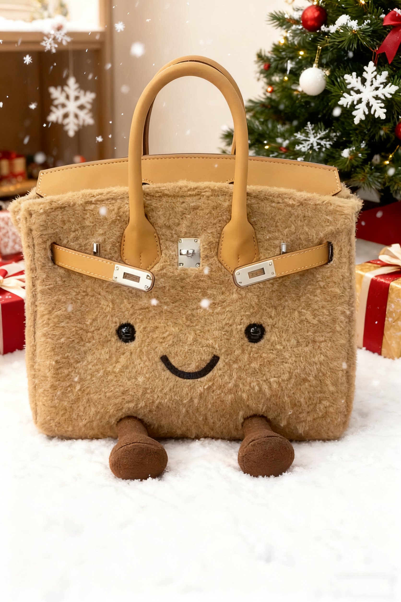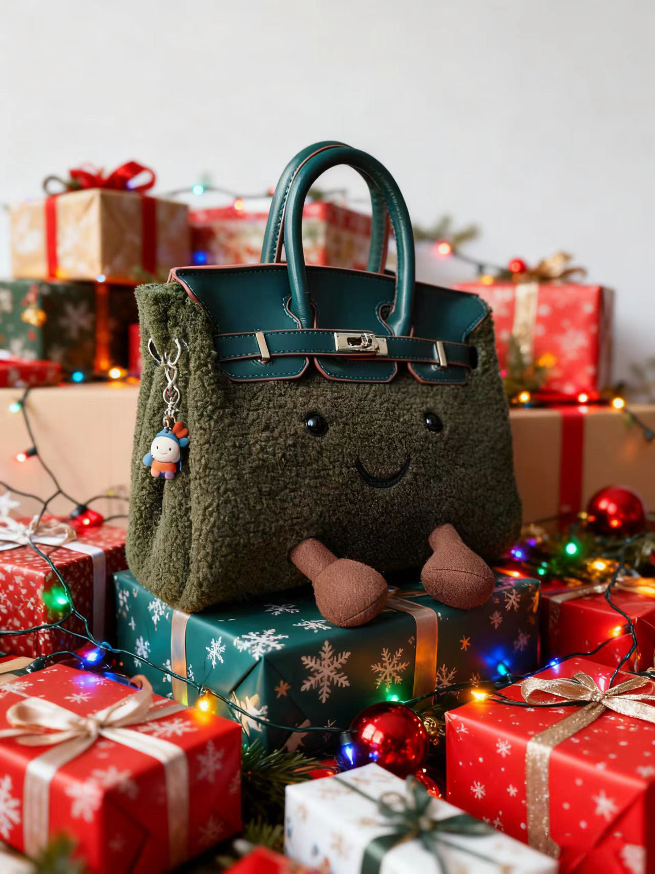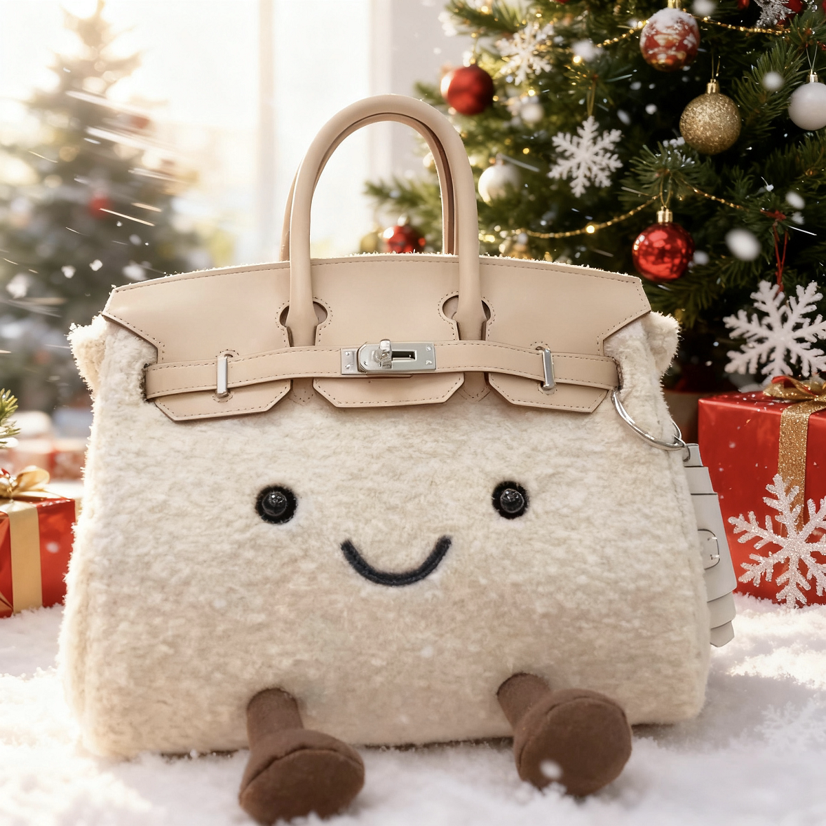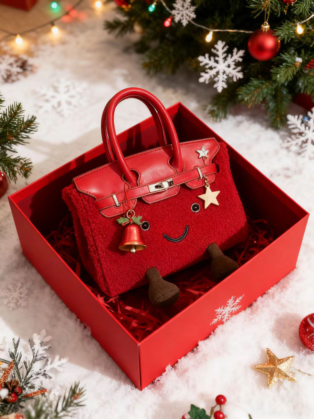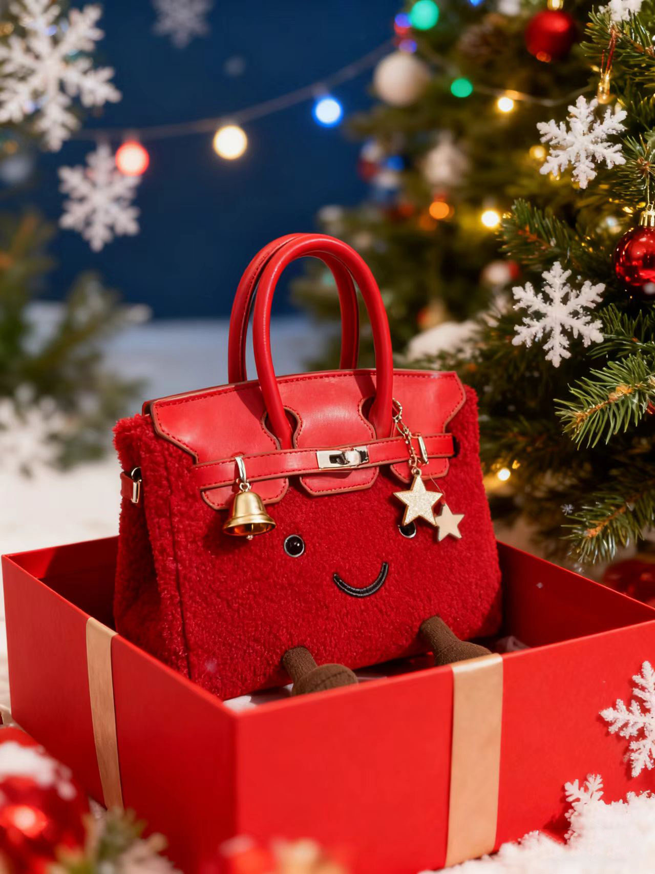 ZRVR新款聖誕節限定羊羔絨手提包軟萌可愛鉑金包單肩斜背凱莉包女