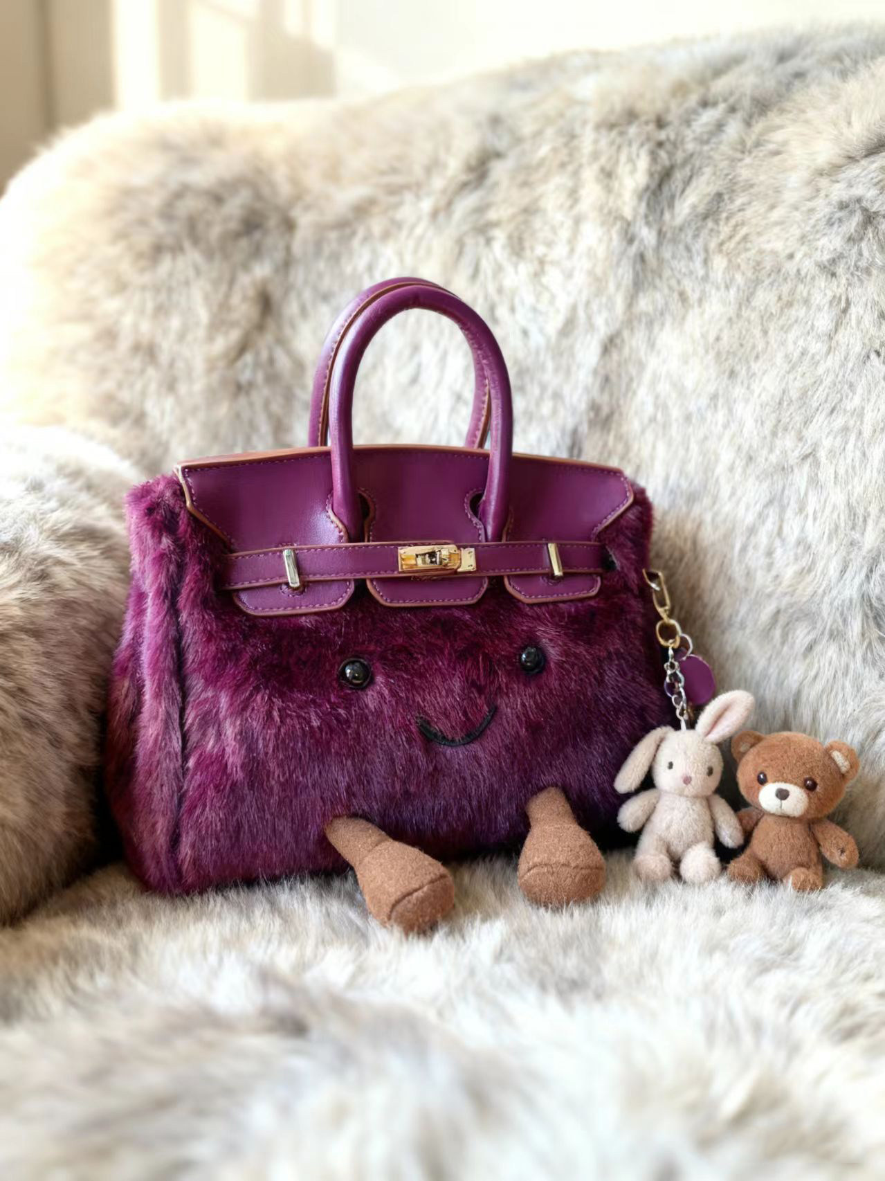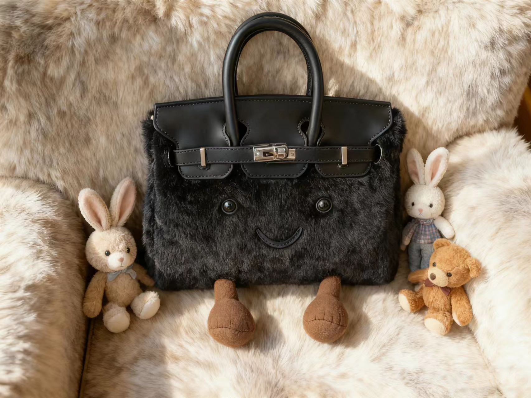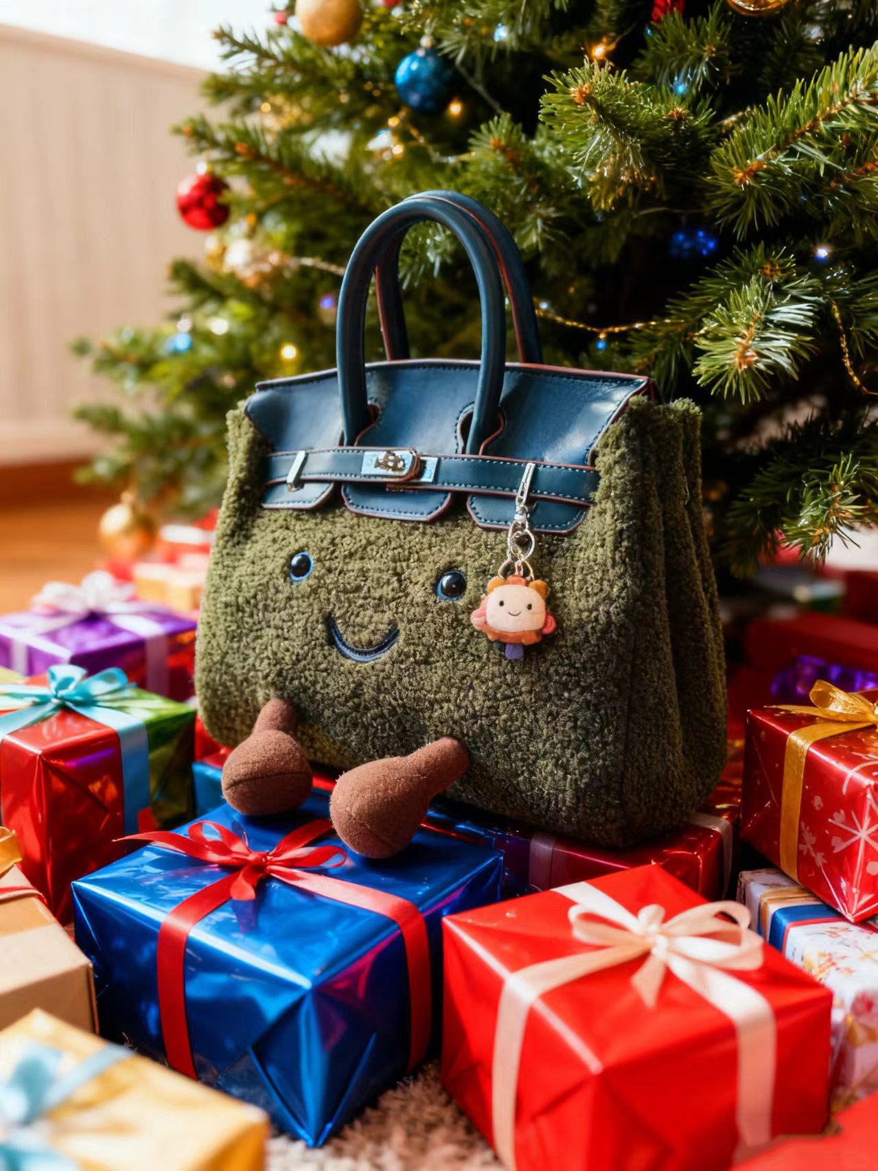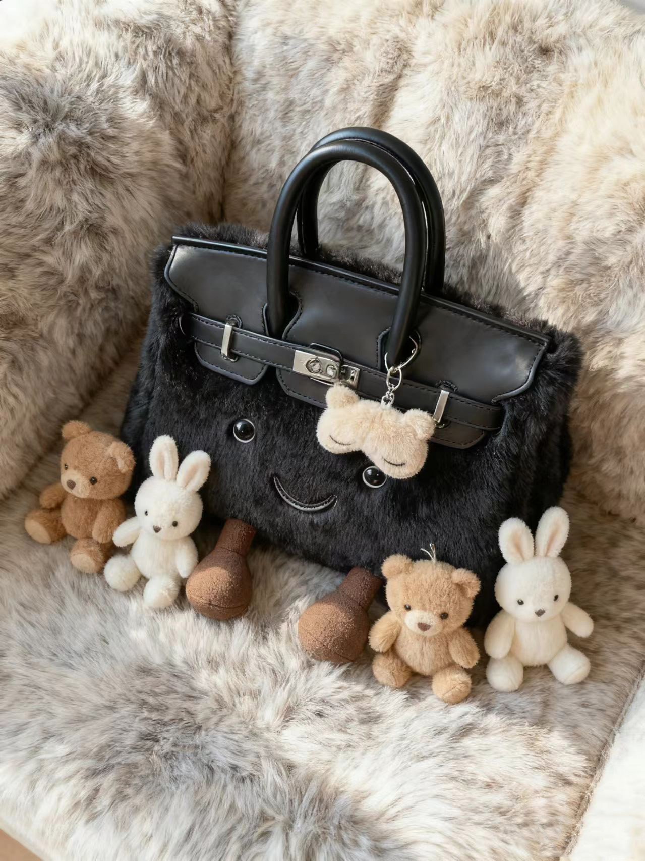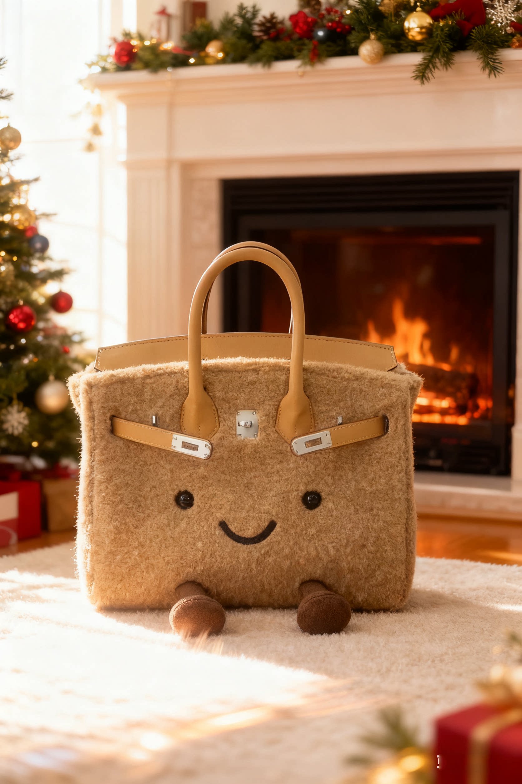 ZRVR新款聖誕節限定羊羔絨手提包軟萌可愛鉑金包單肩斜背凱莉包女