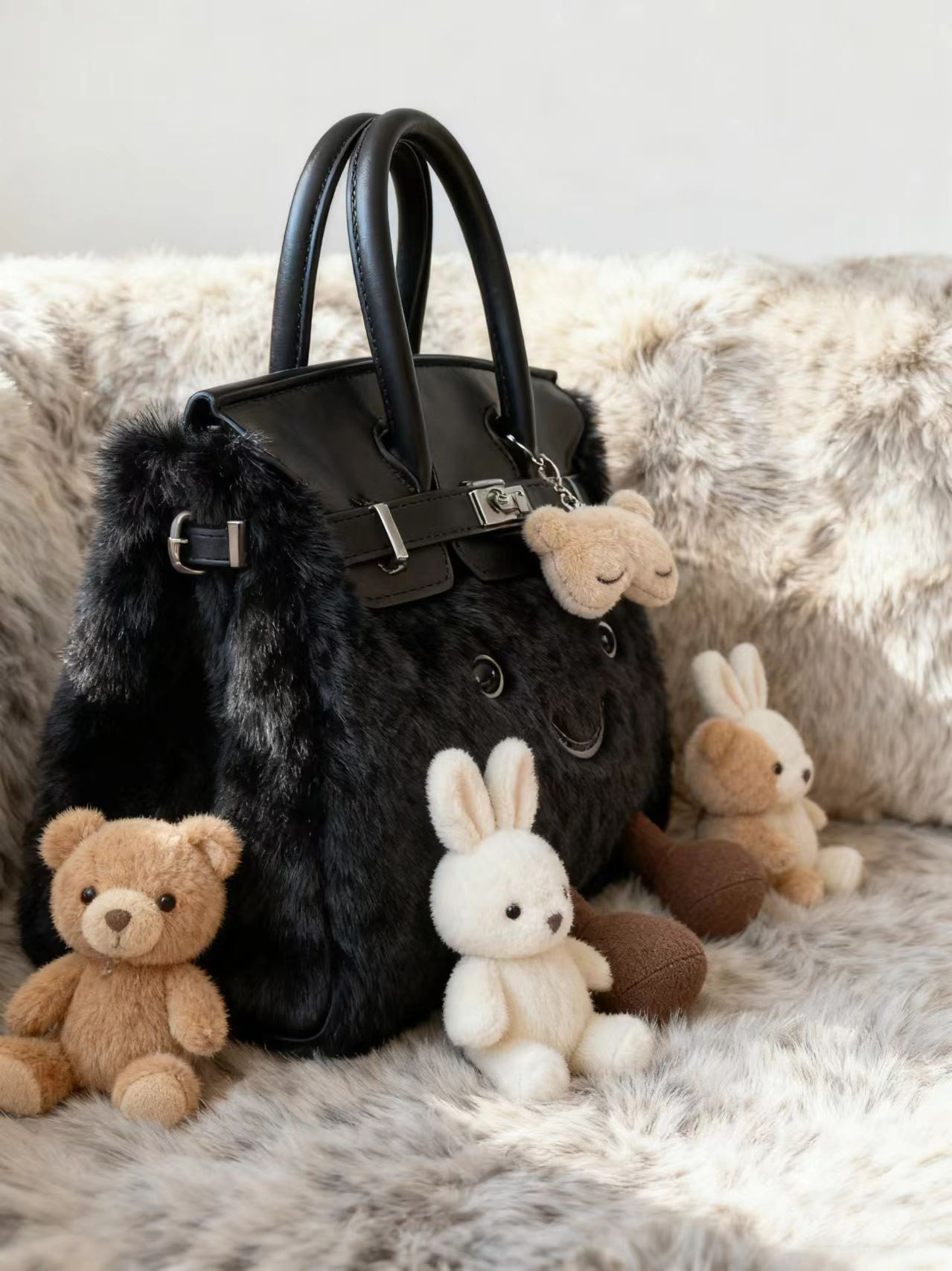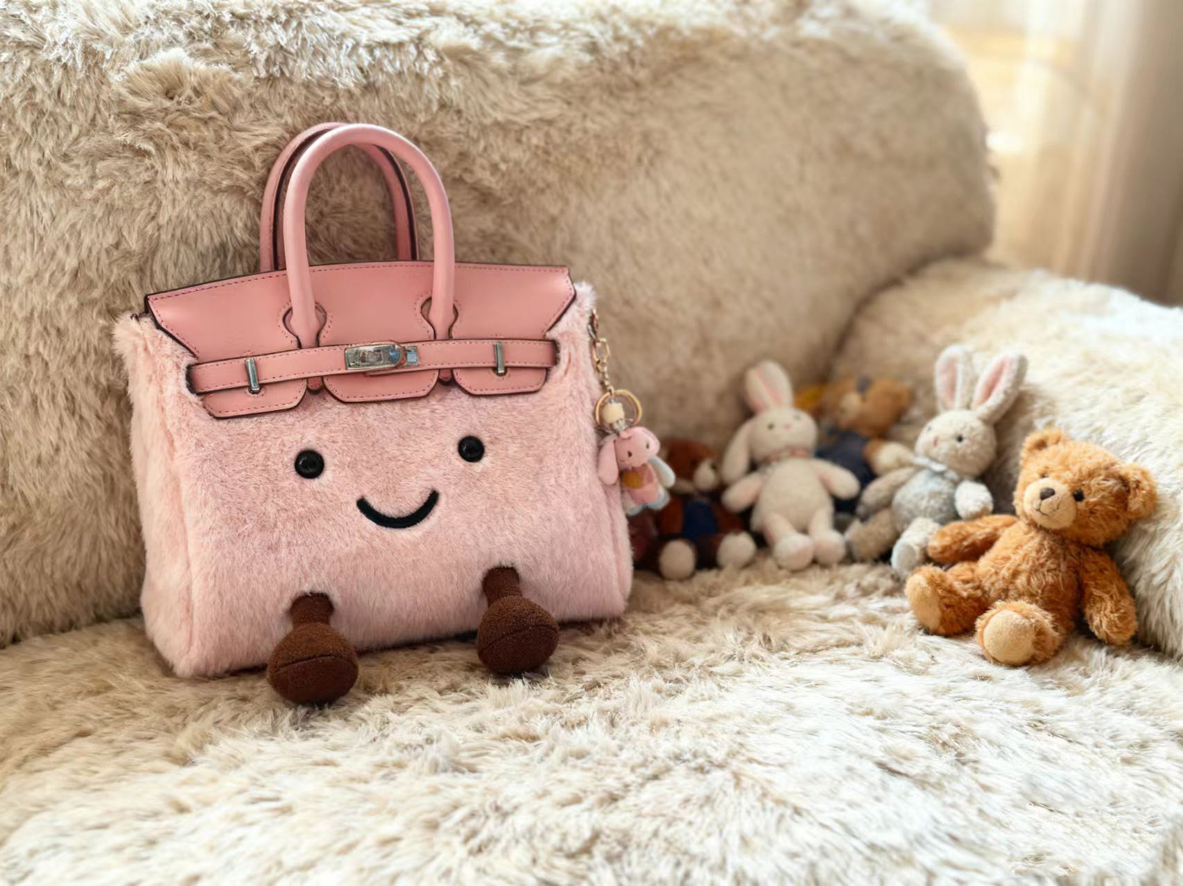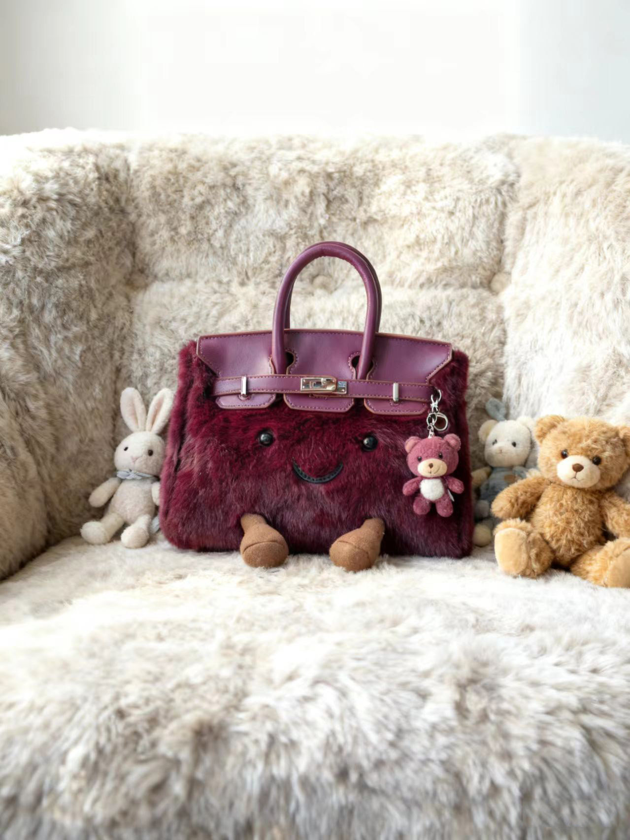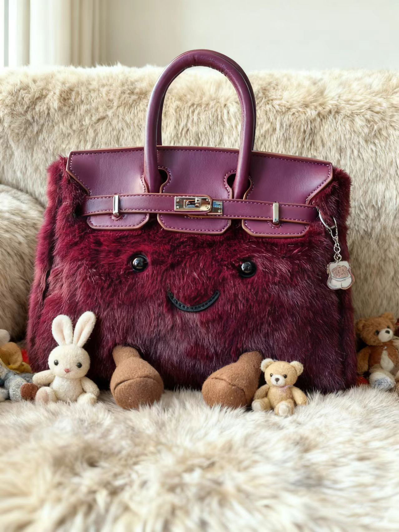 ZRVR新款聖誕節限定羊羔絨手提包軟萌可愛鉑金包單肩斜背凱莉包女