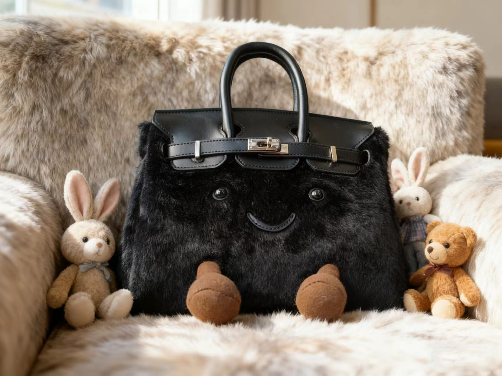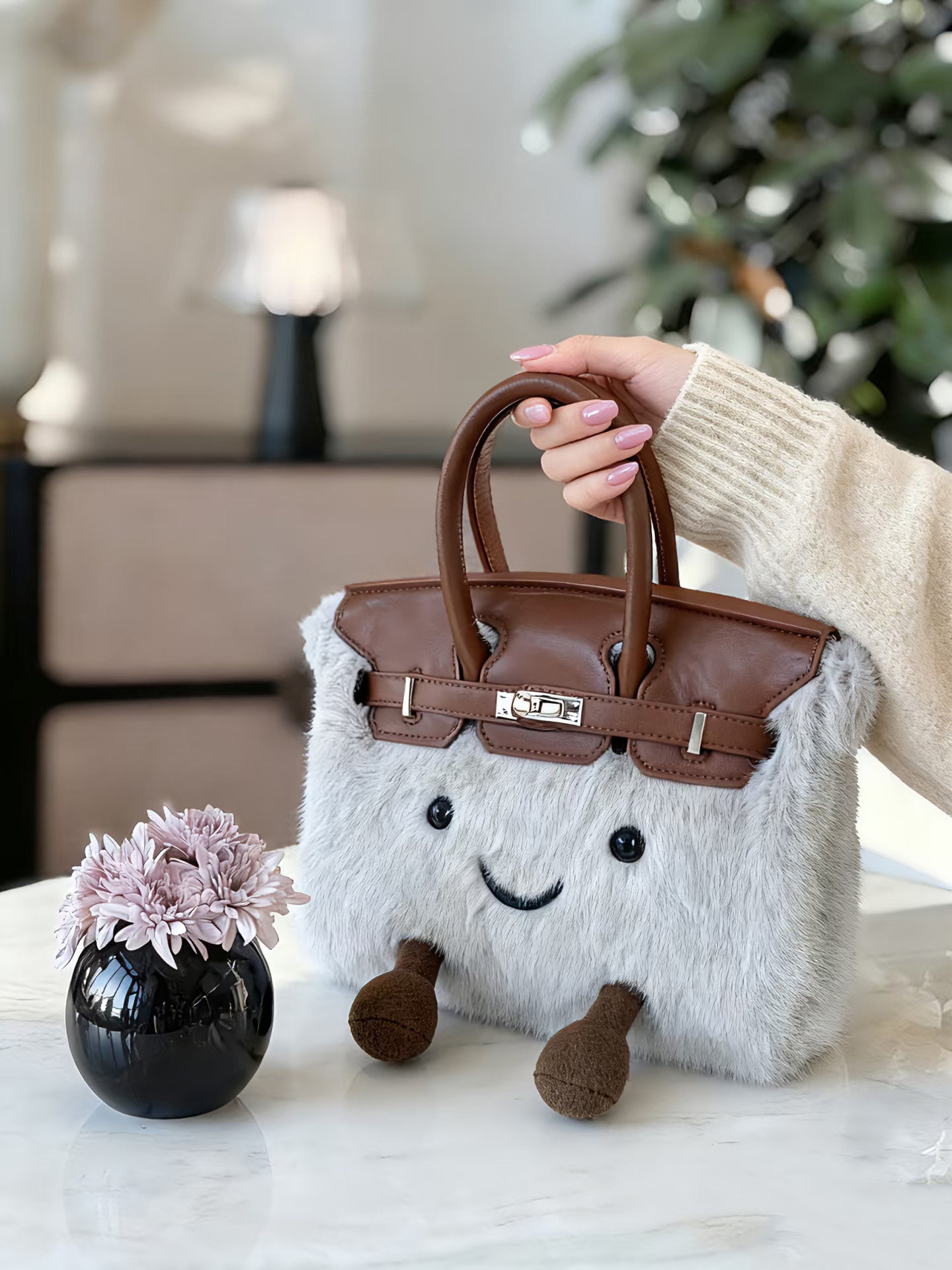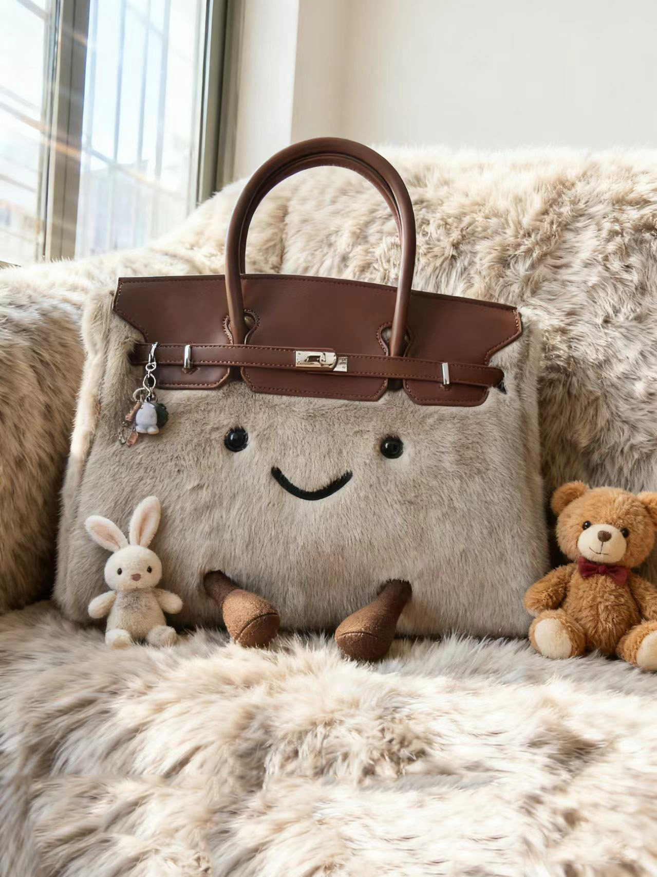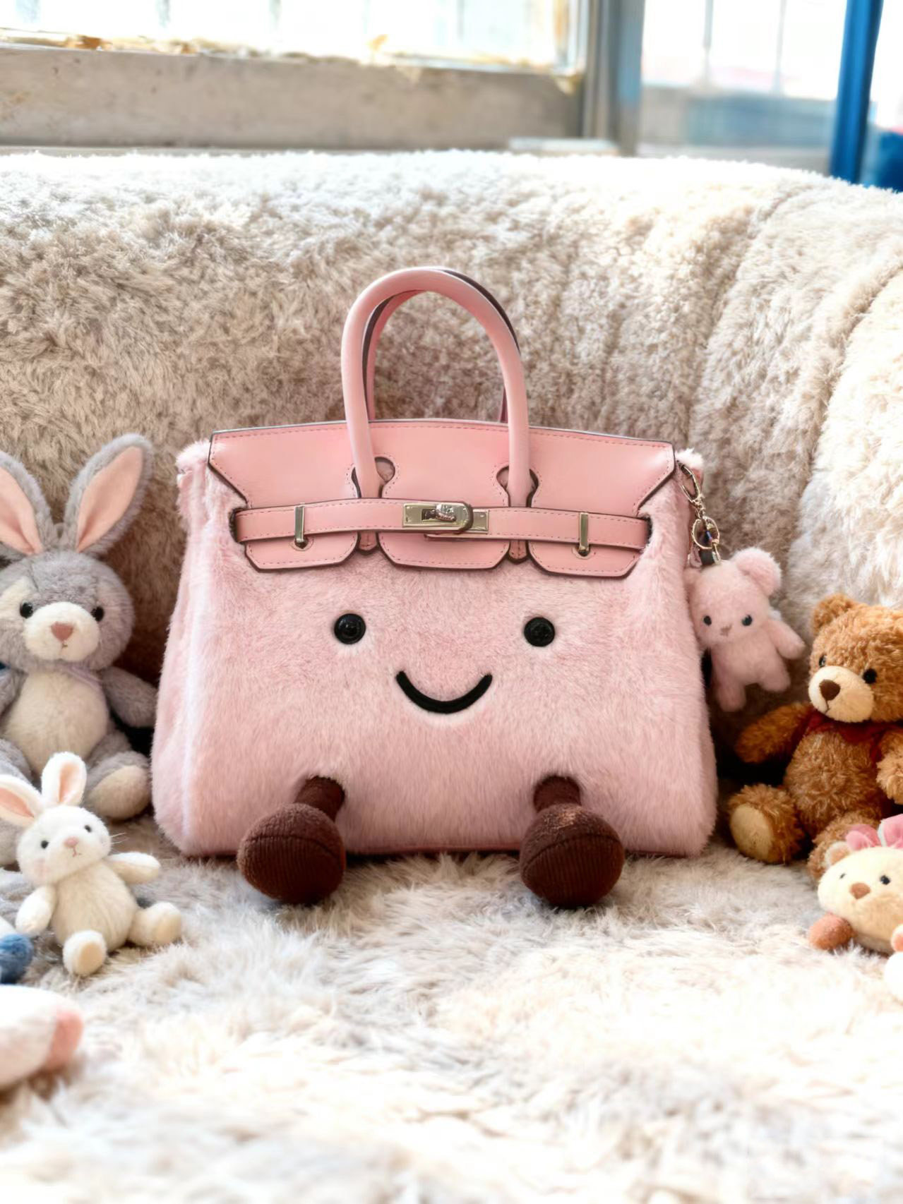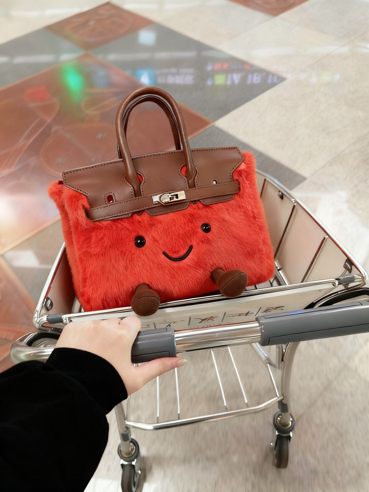 ZRVR新款聖誕節限定羊羔絨手提包軟萌可愛鉑金包單肩斜背凱莉包女