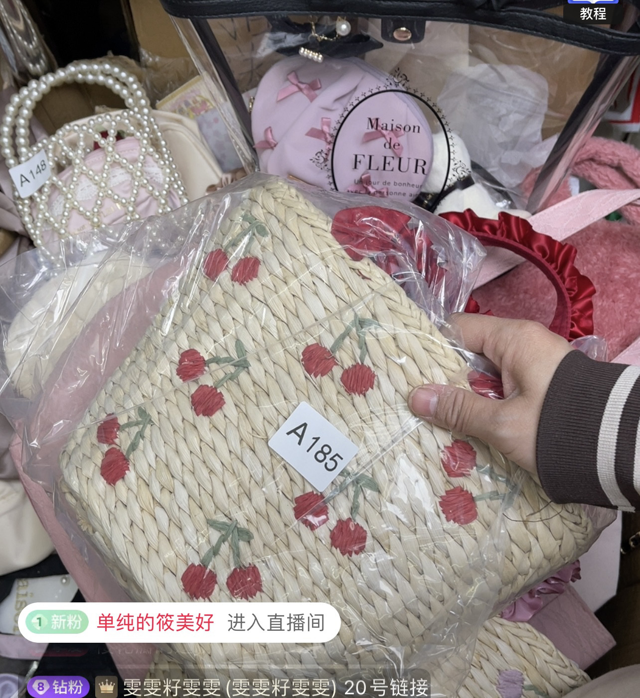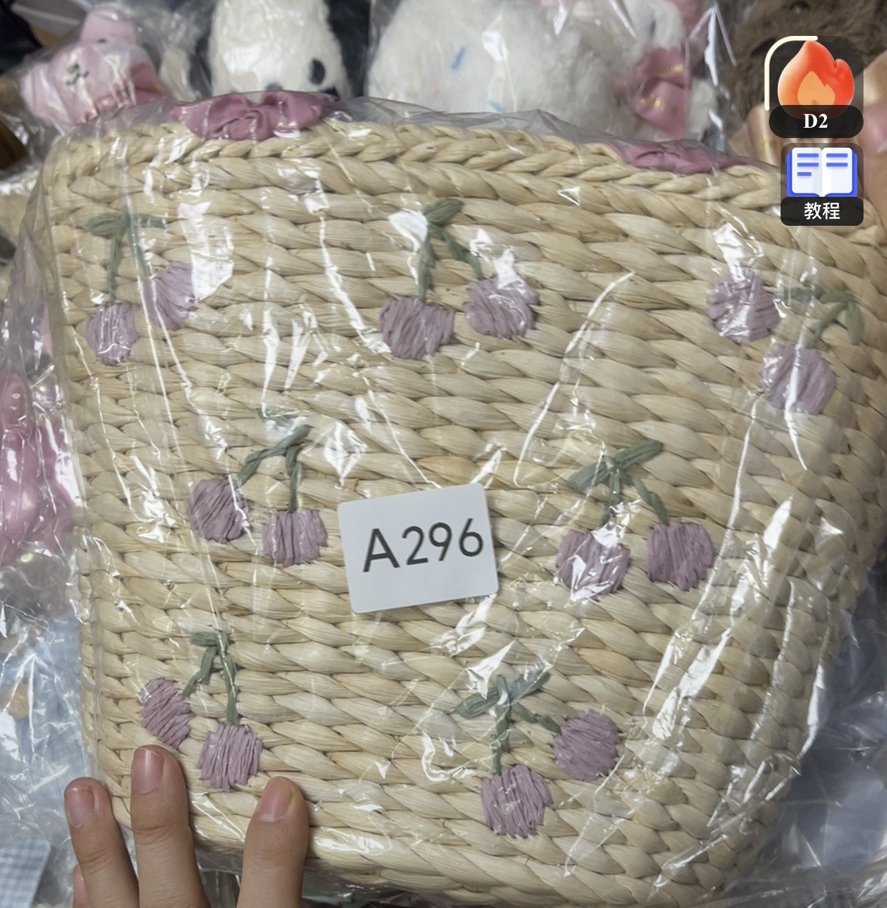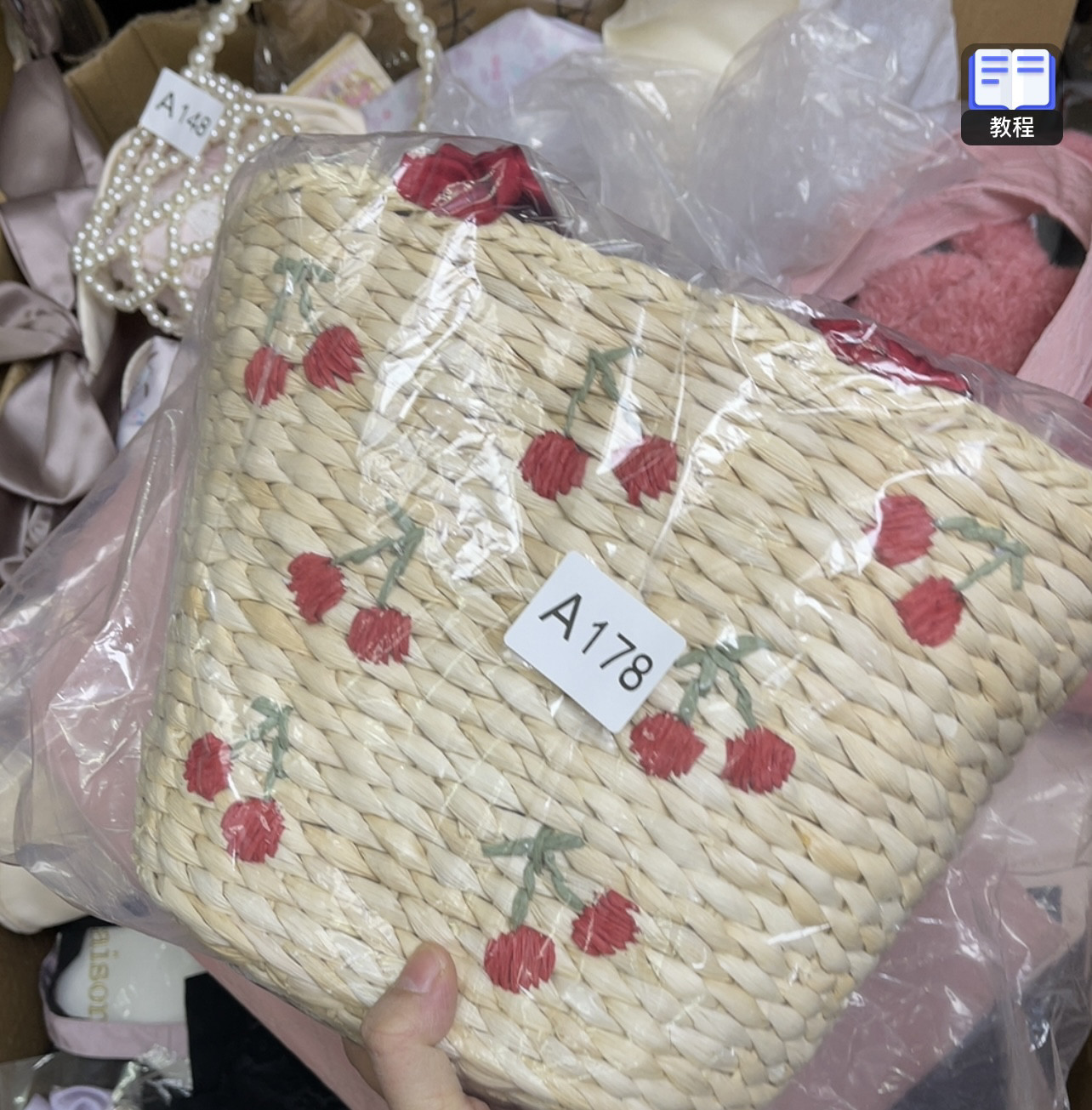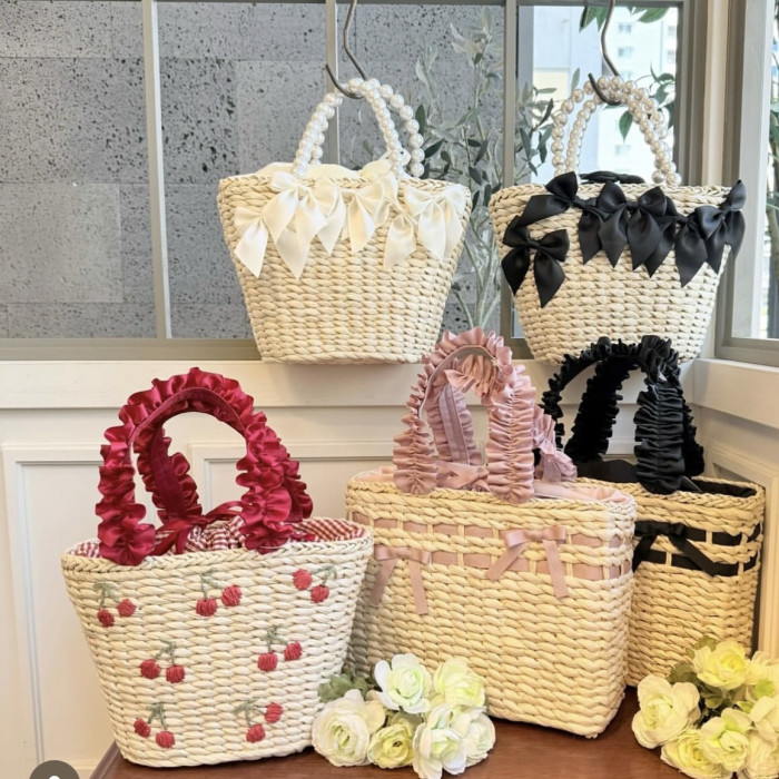 櫻花妹妹日系再入荷夏日天然玉米皮編織菜籃子櫻桃