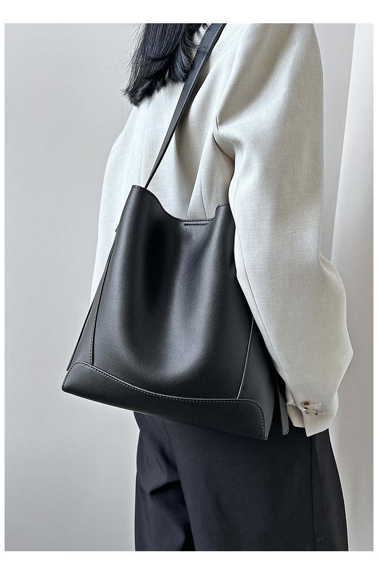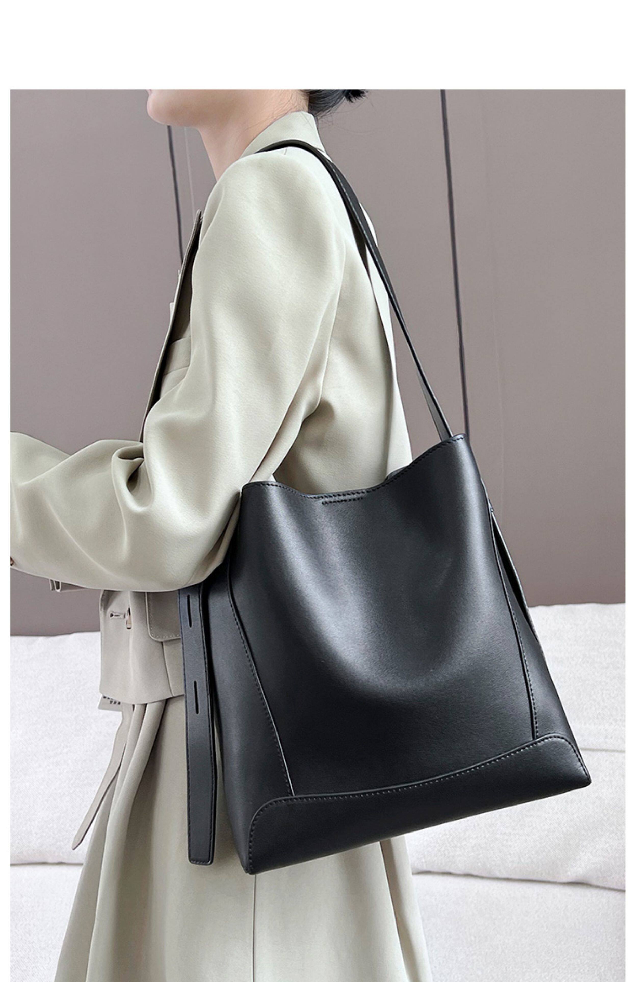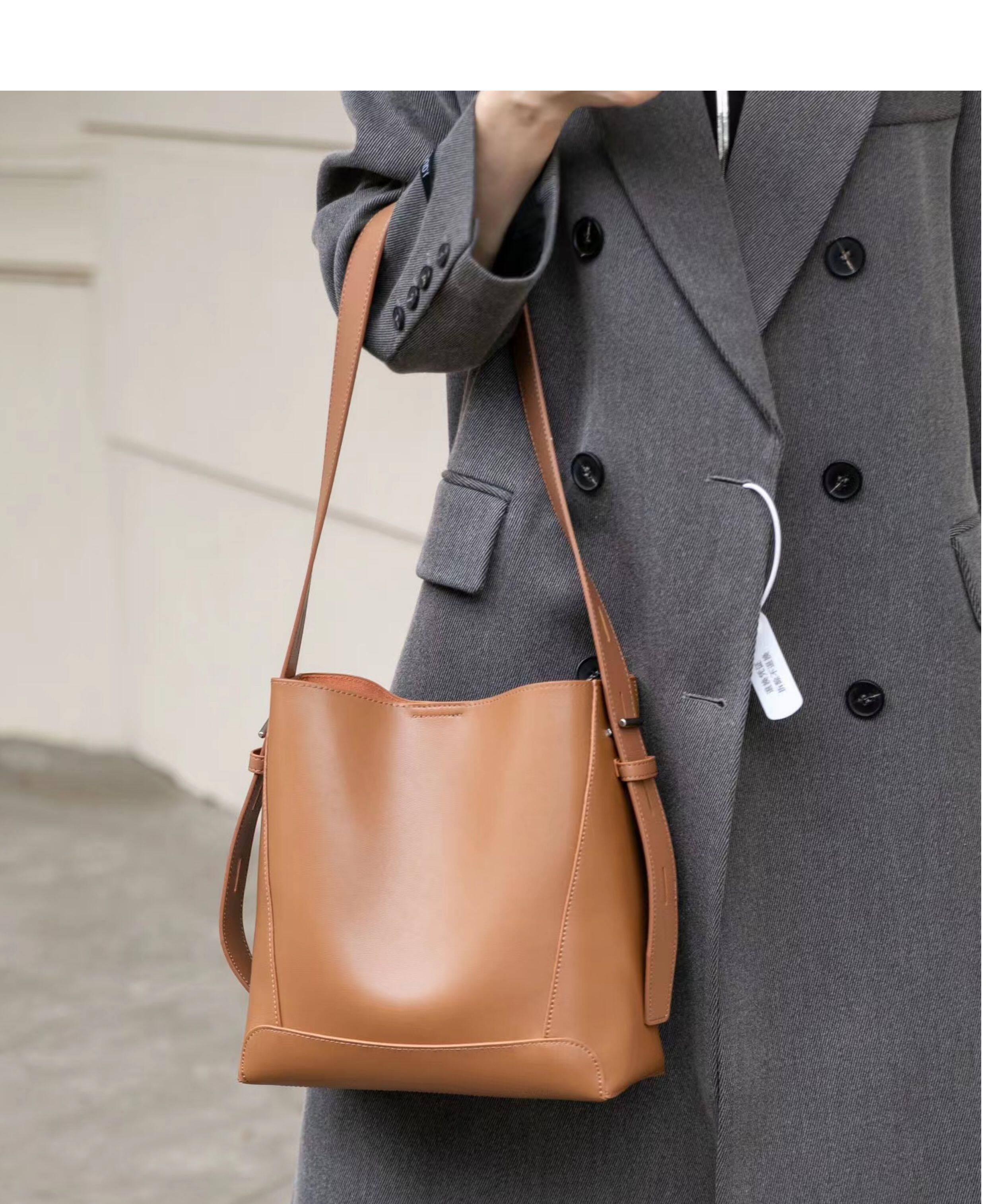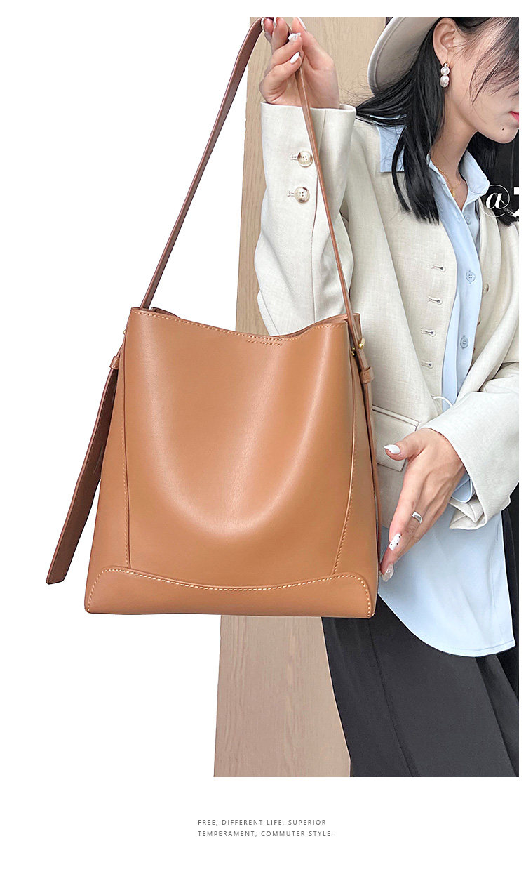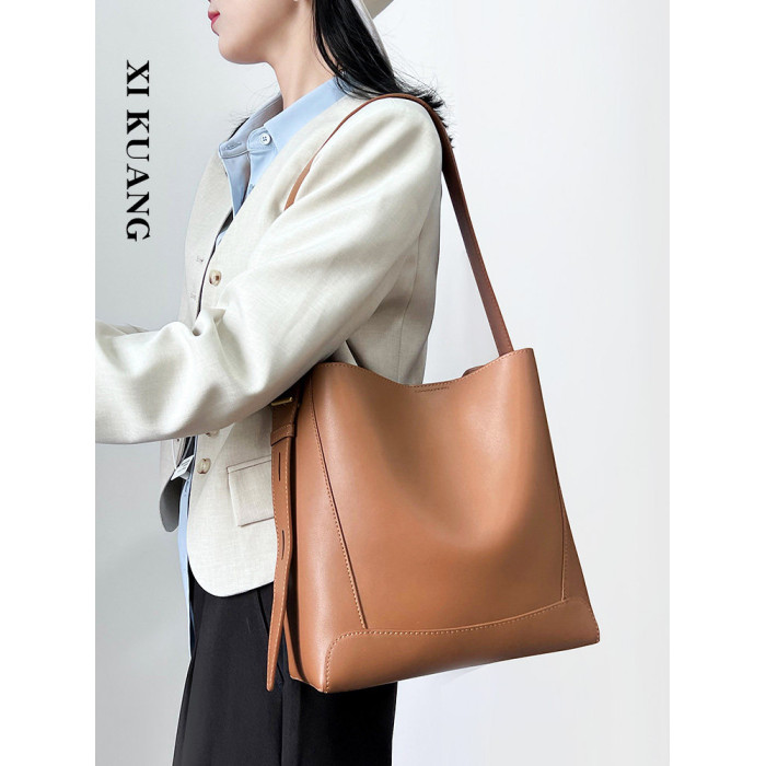 水桶包2025秋冬新款單肩通勤包百搭牛皮大容量托特包斜背真皮女包