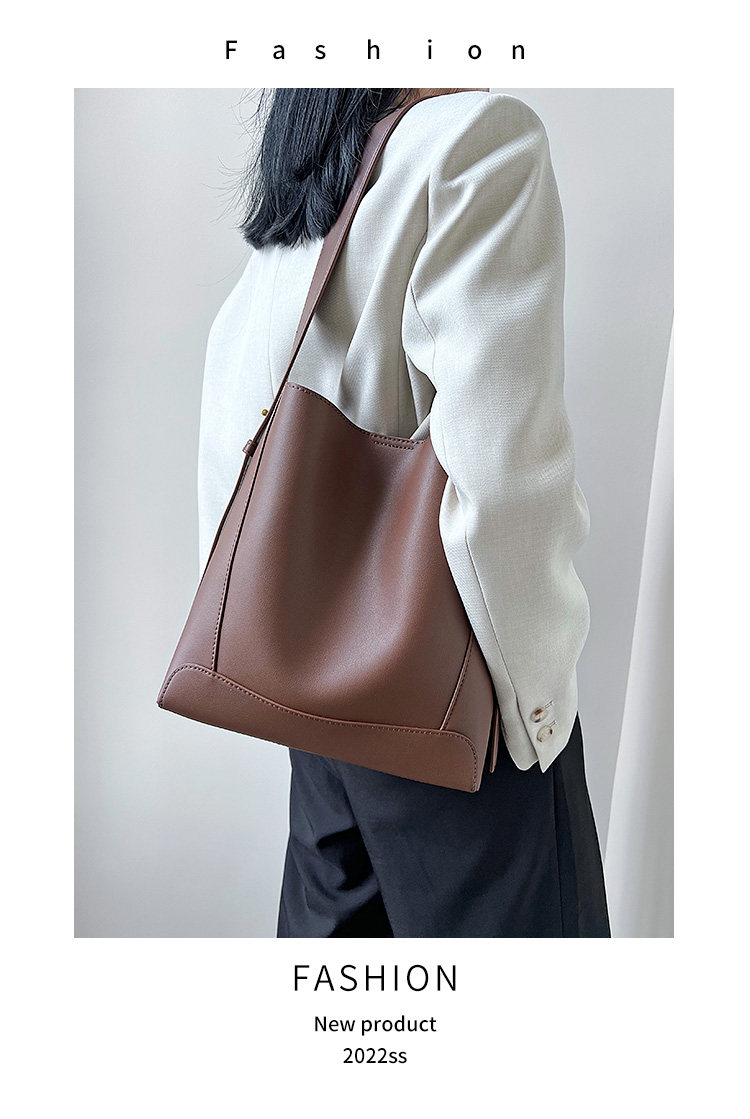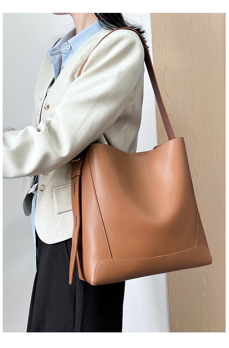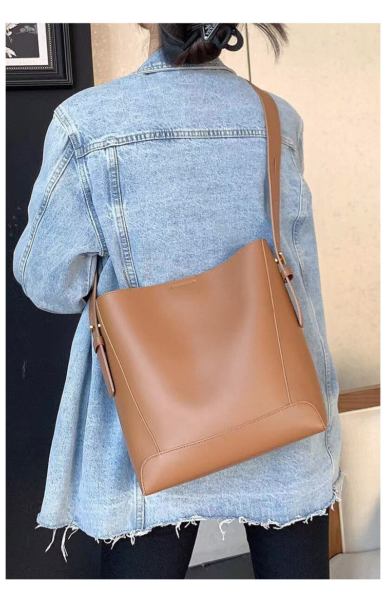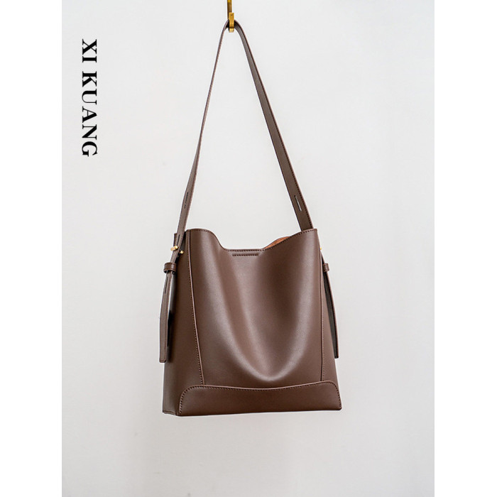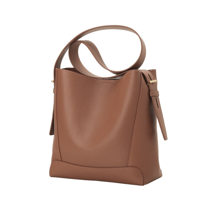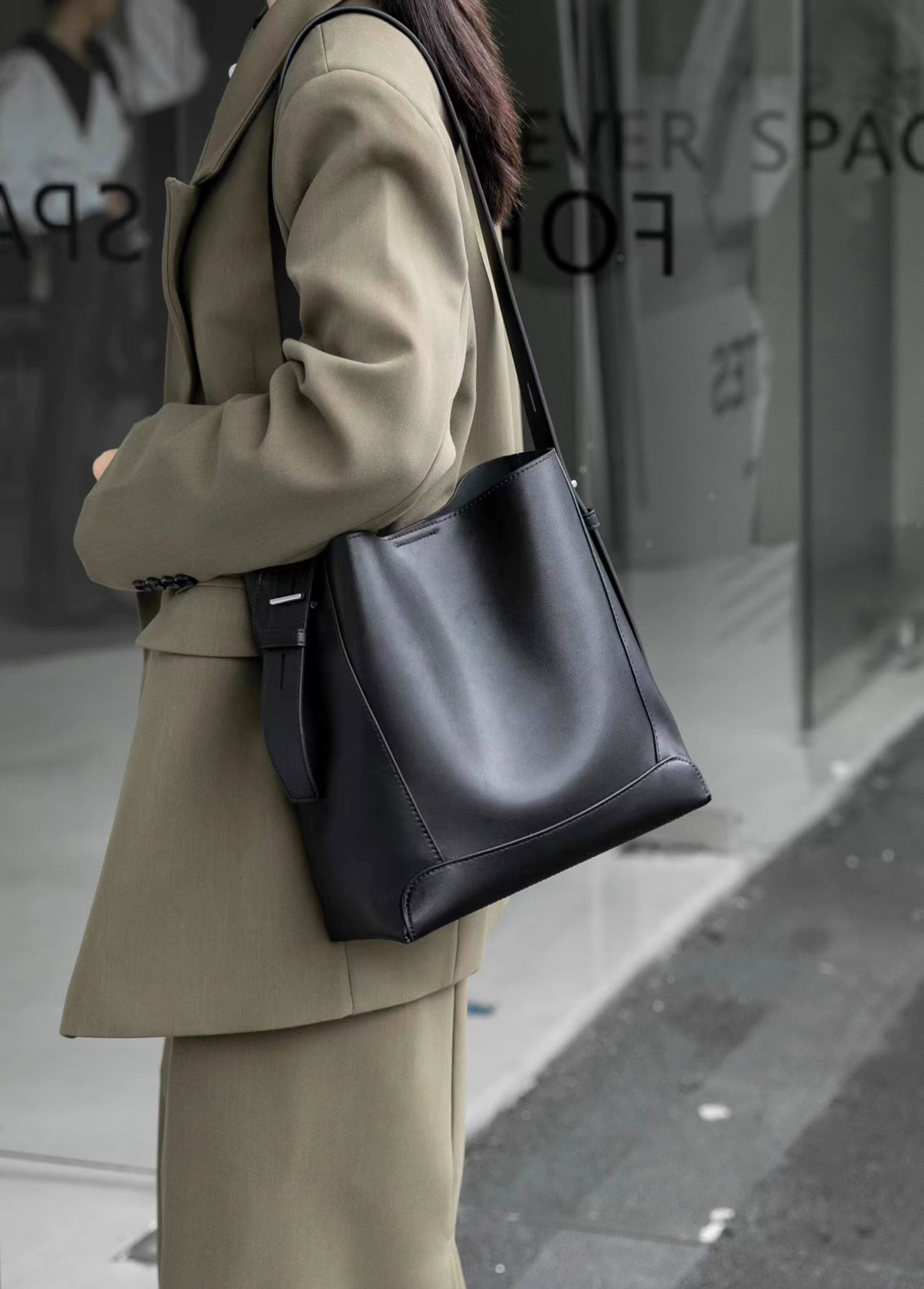水桶包2025秋冬新款單肩通勤包百搭牛皮大容量托特包斜背真皮女包
