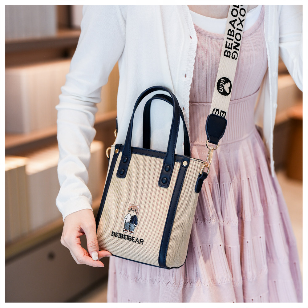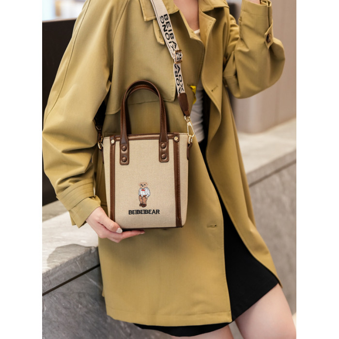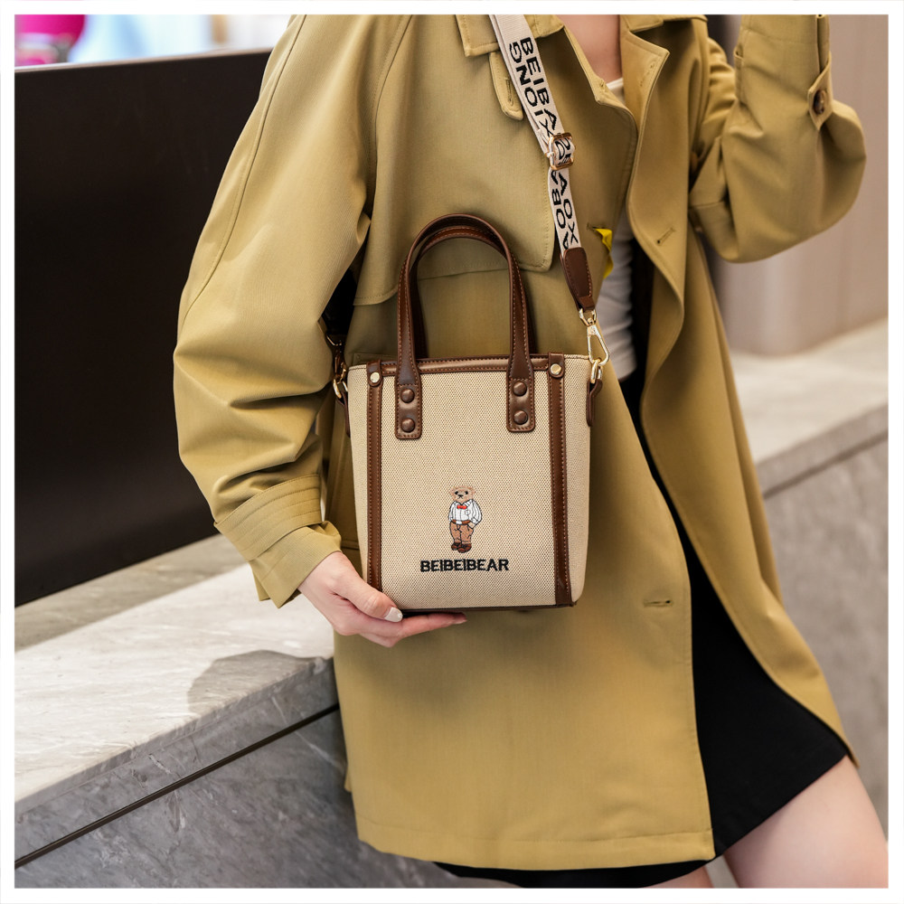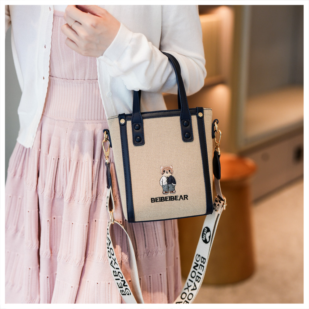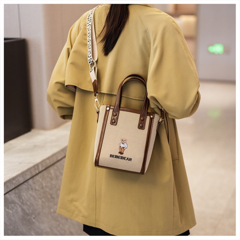 北包包2025新款原創小熊帆布水桶包寬肩帶斜背時尚百搭手提手機包