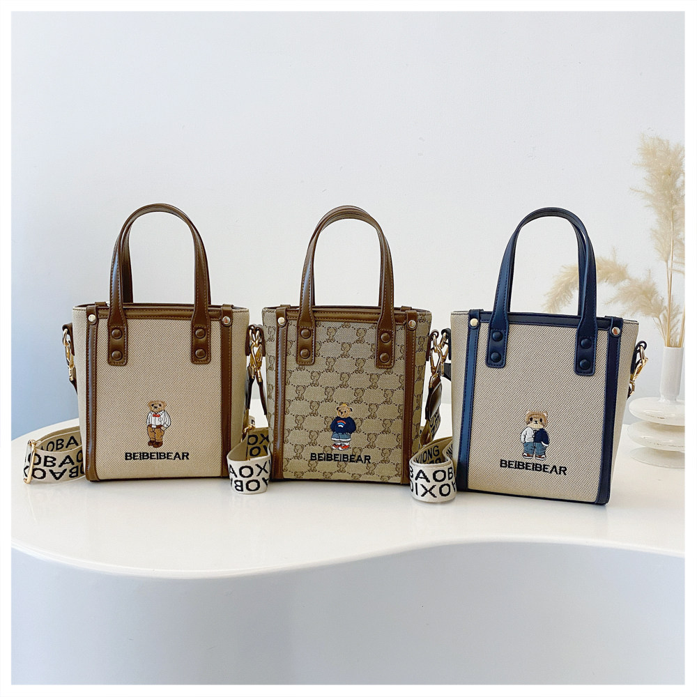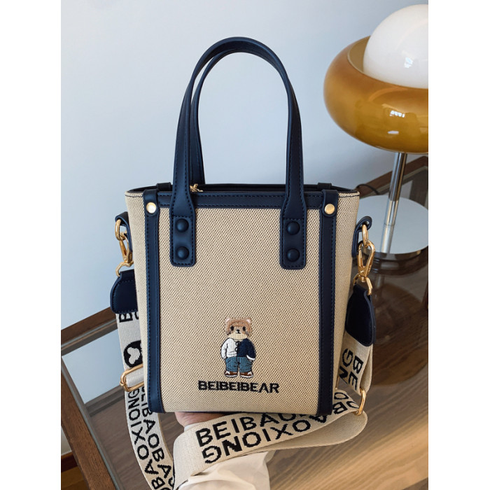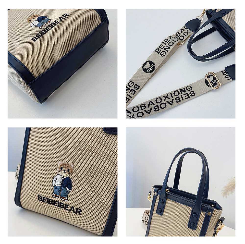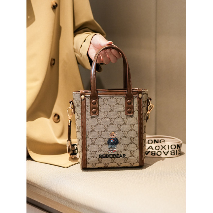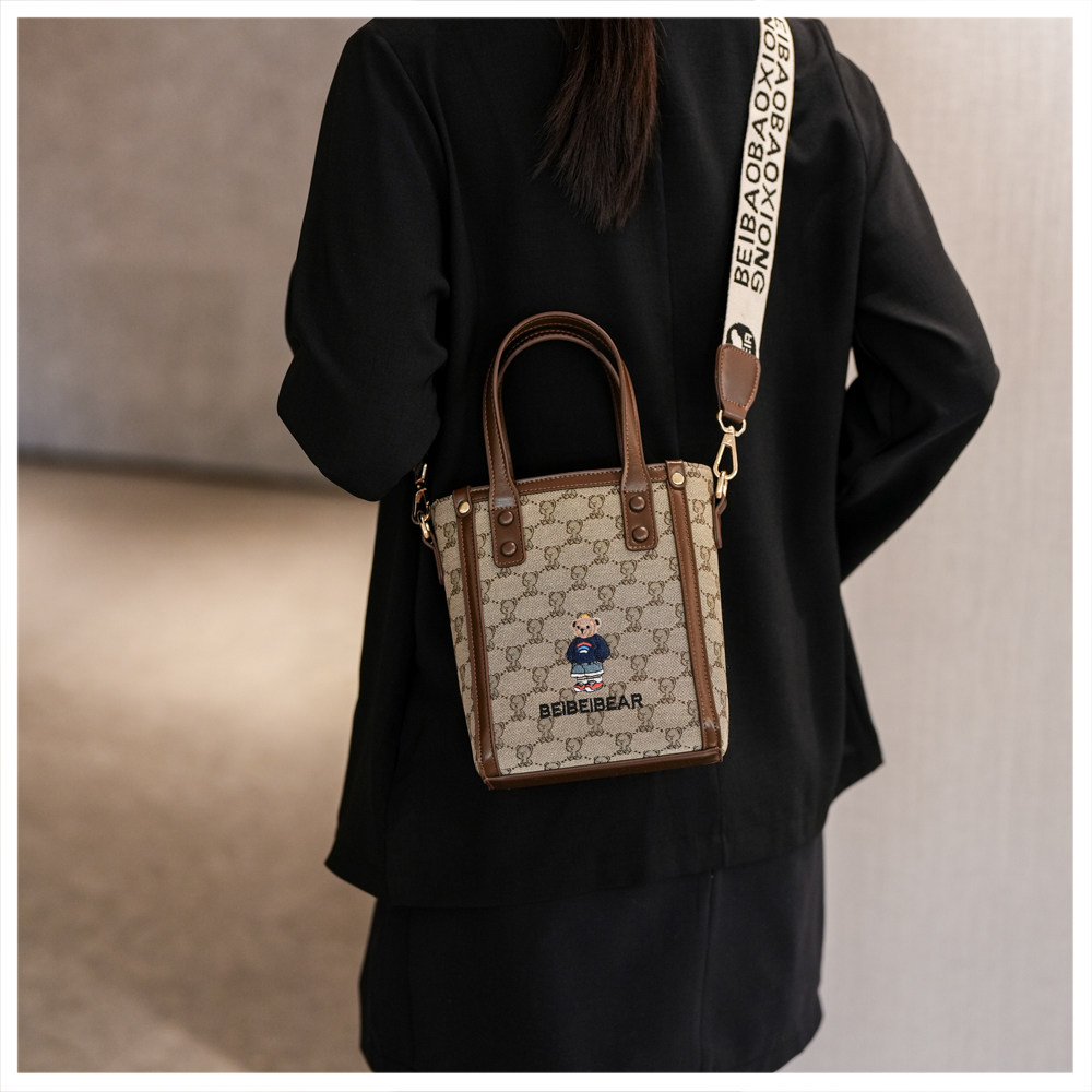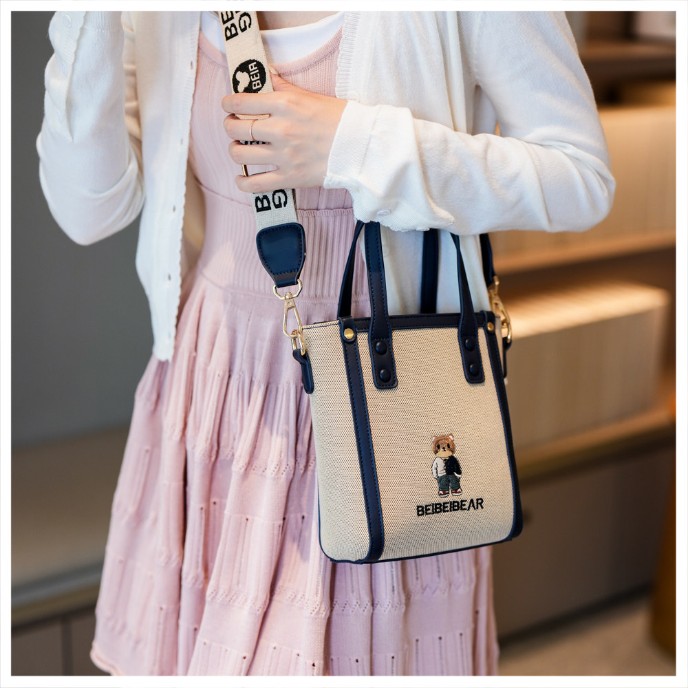 北包包2025新款原創小熊帆布水桶包寬肩帶斜背時尚百搭手提手機包