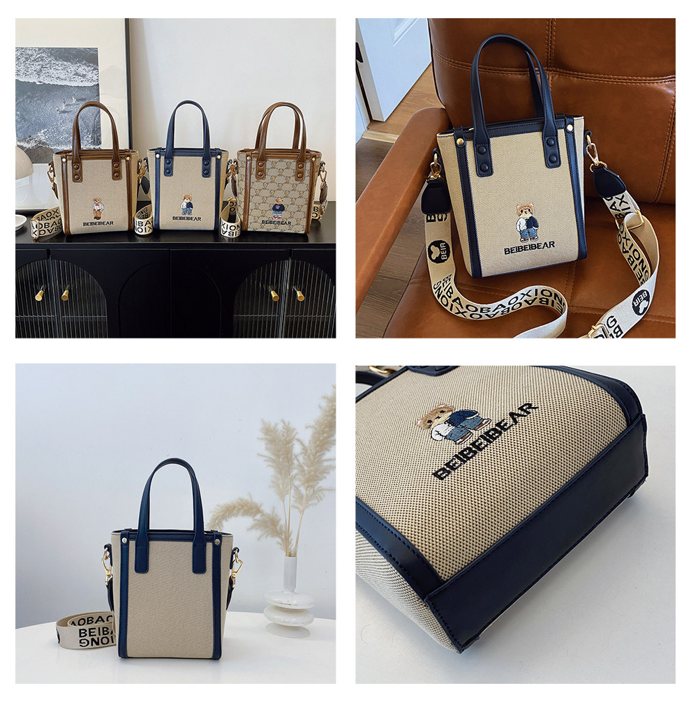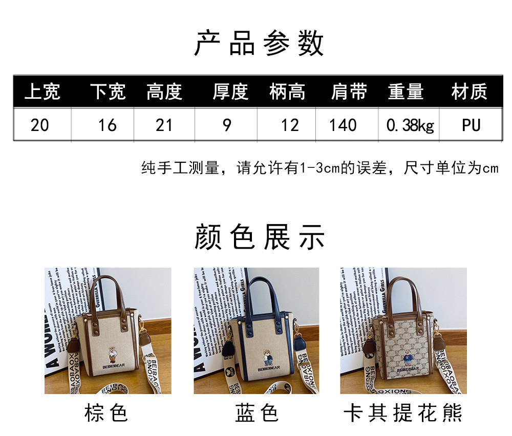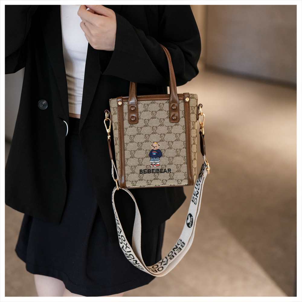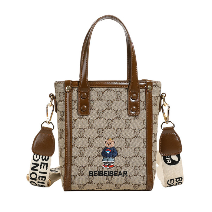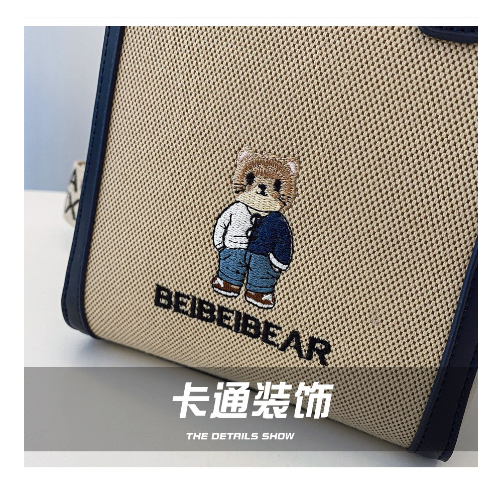 北包包2025新款原創小熊帆布水桶包寬肩帶斜背時尚百搭手提手機包