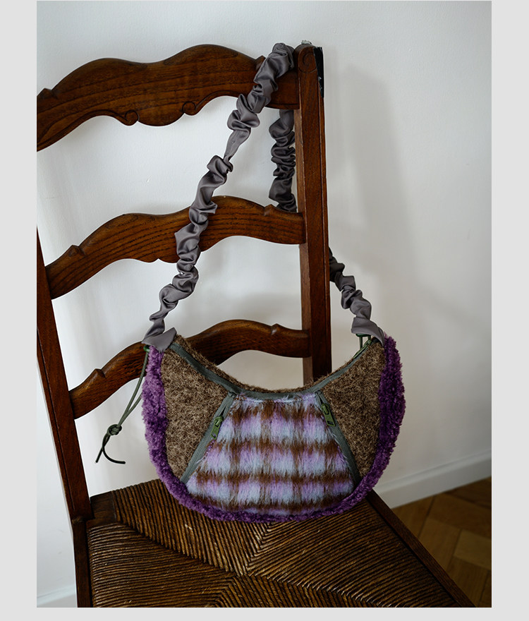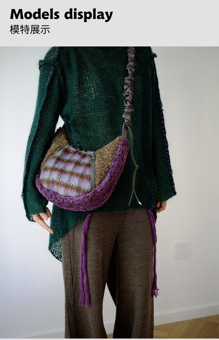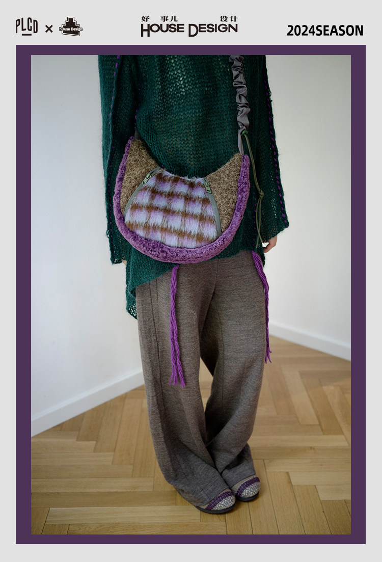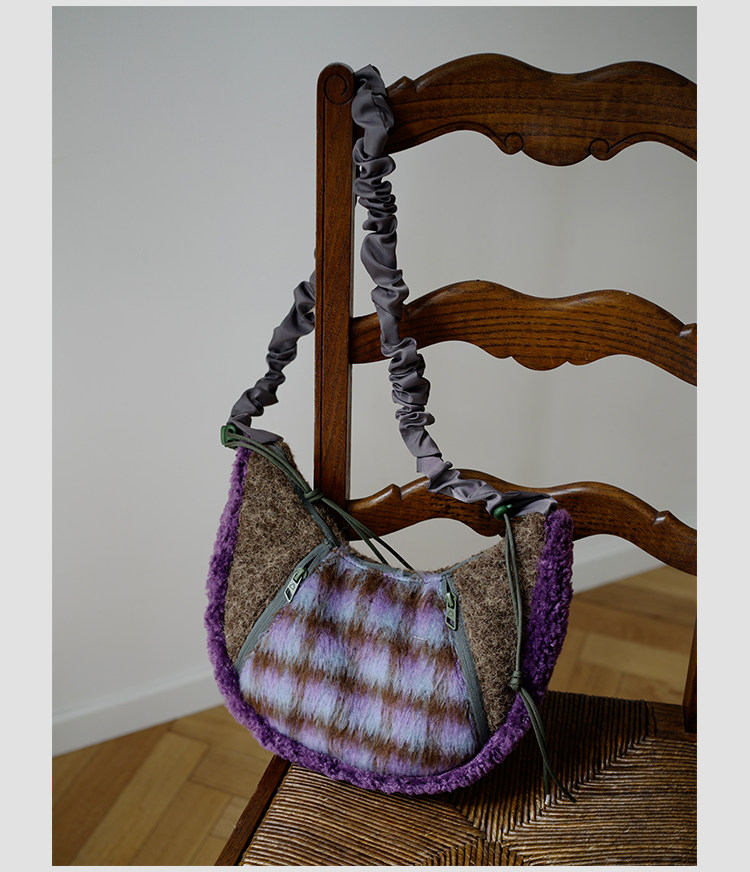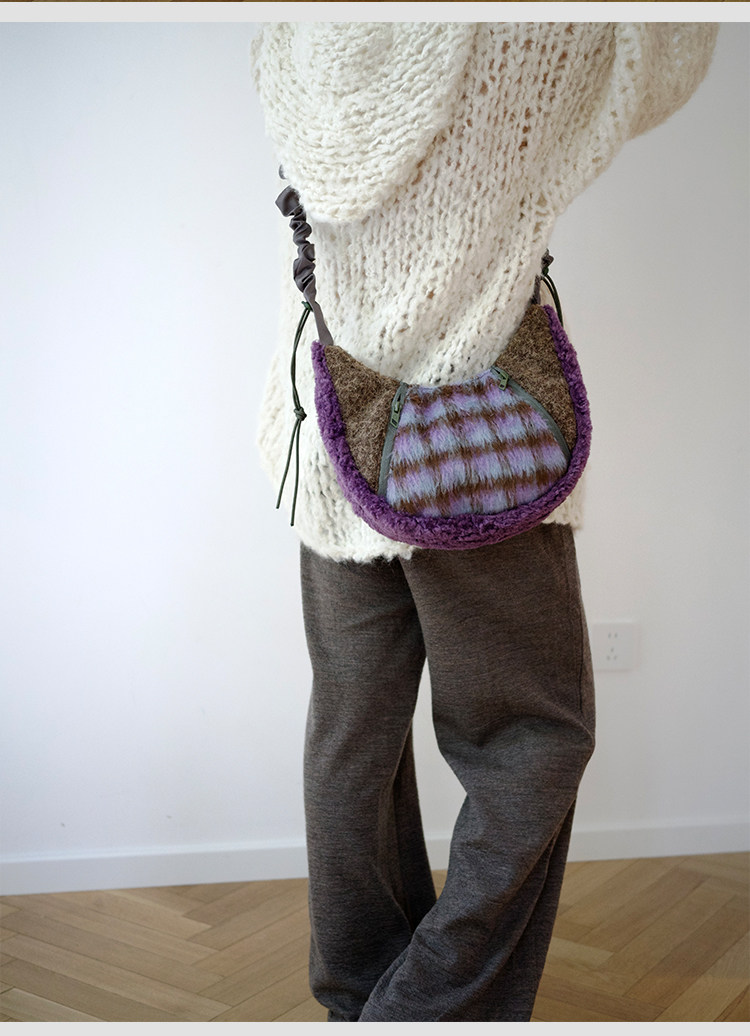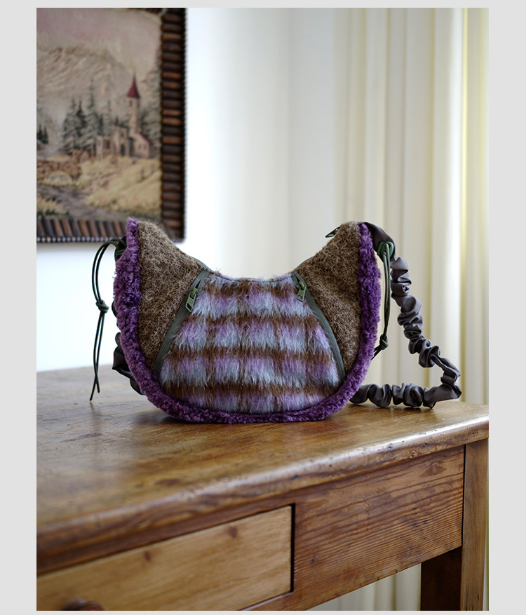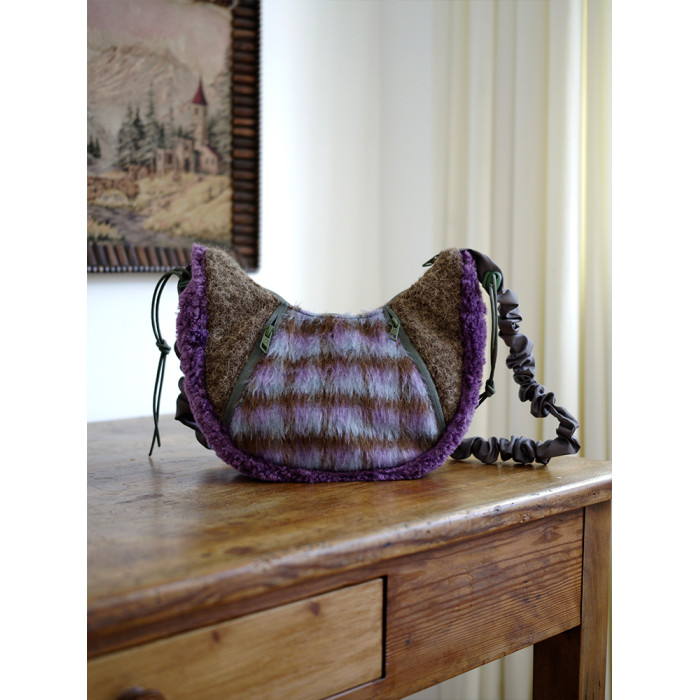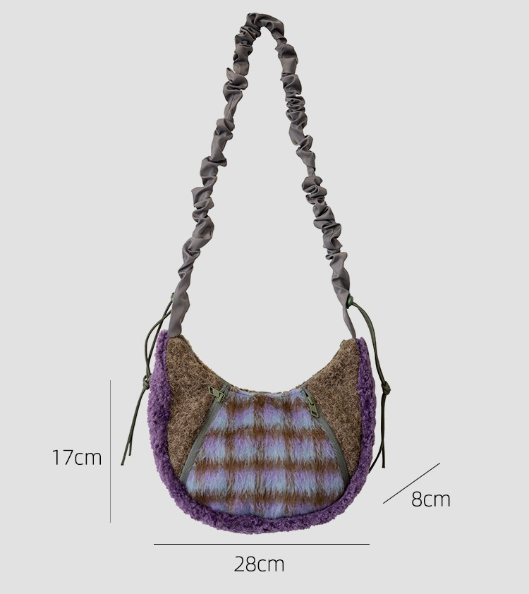 housedesign原創2025秋冬新款單肩腋下月牙包毛絨毛呢斜背毛毛包