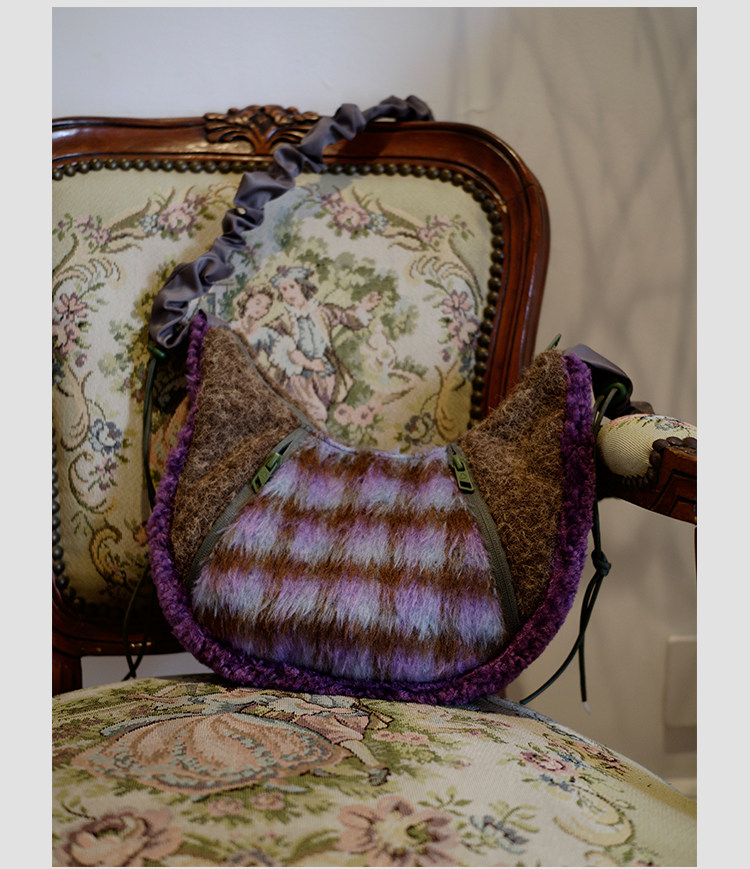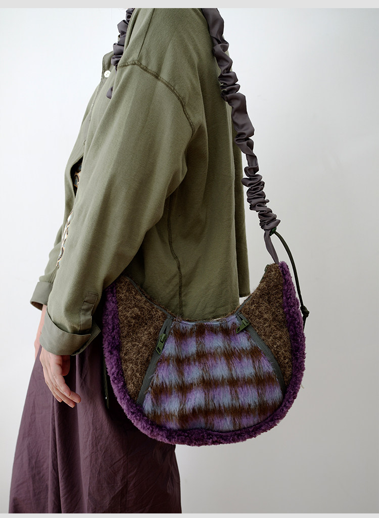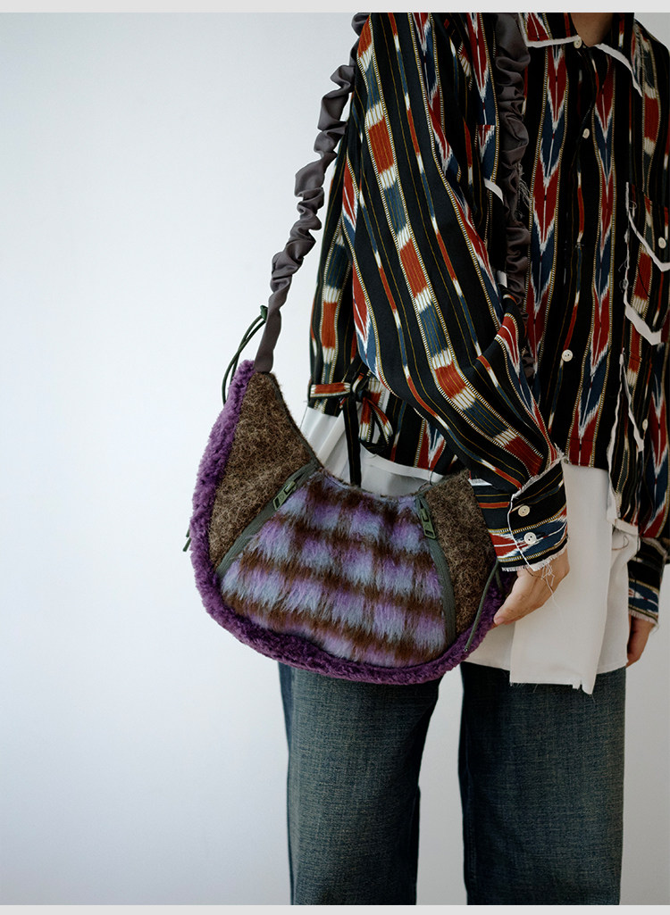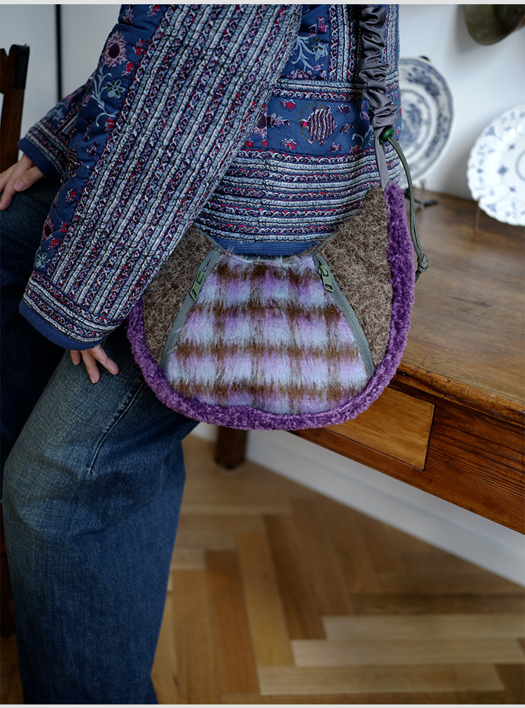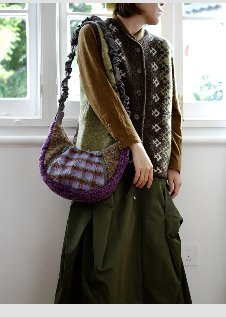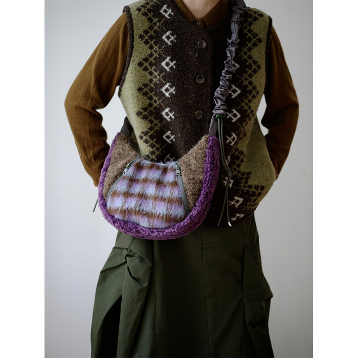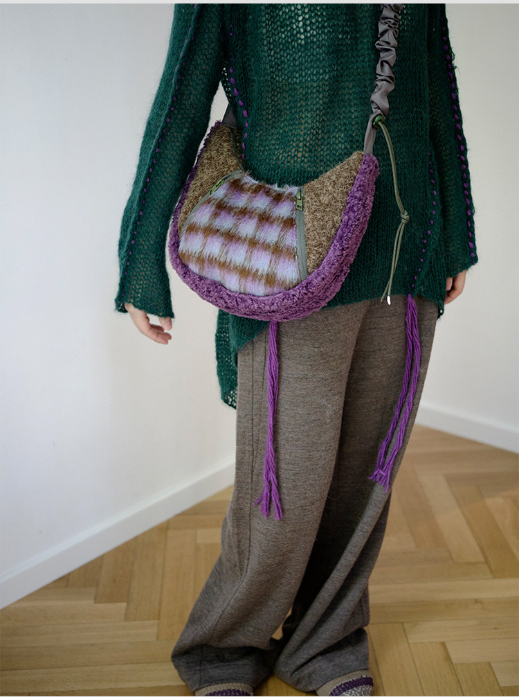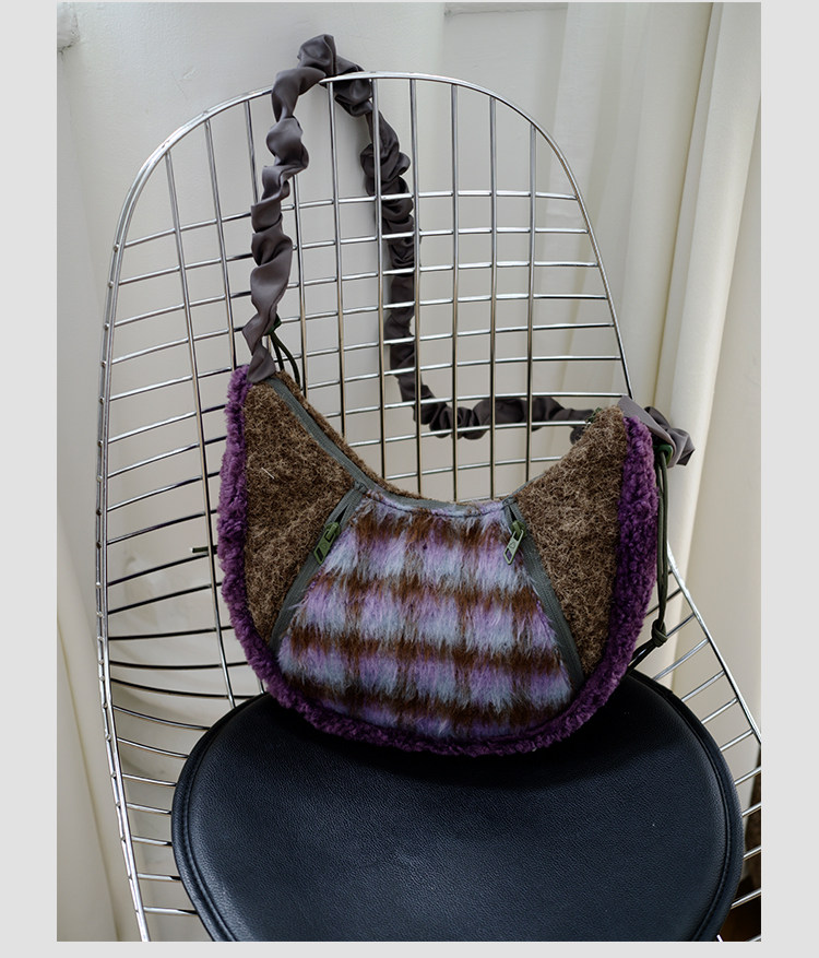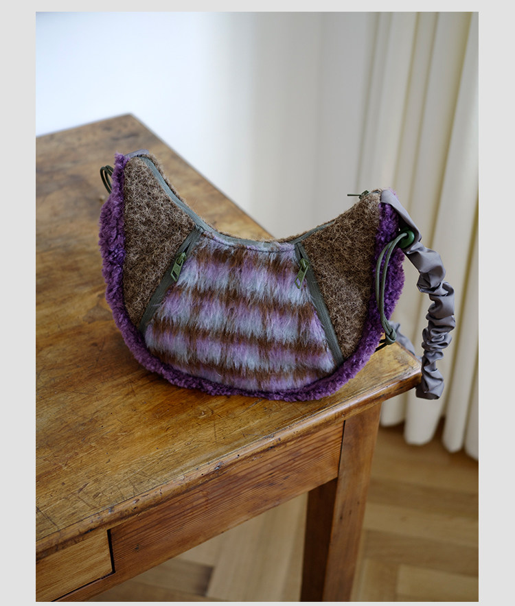 housedesign原創2025秋冬新款單肩腋下月牙包毛絨毛呢斜背毛毛包