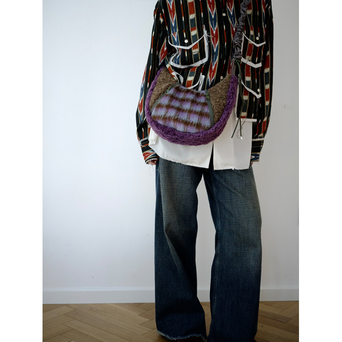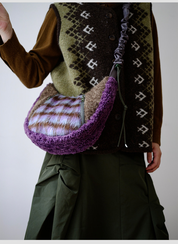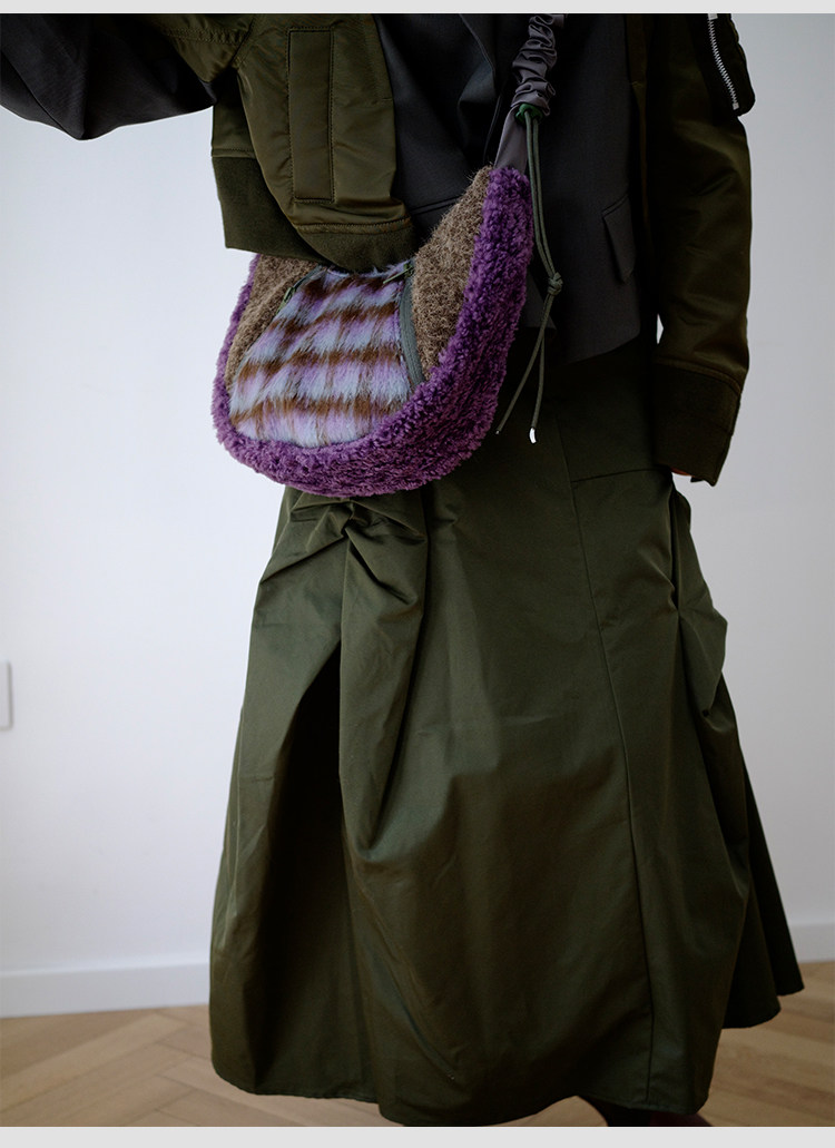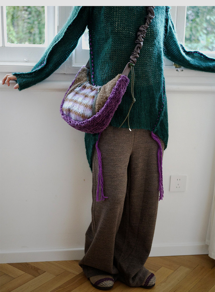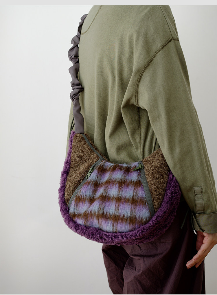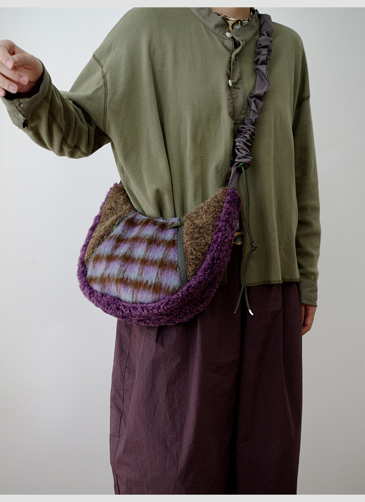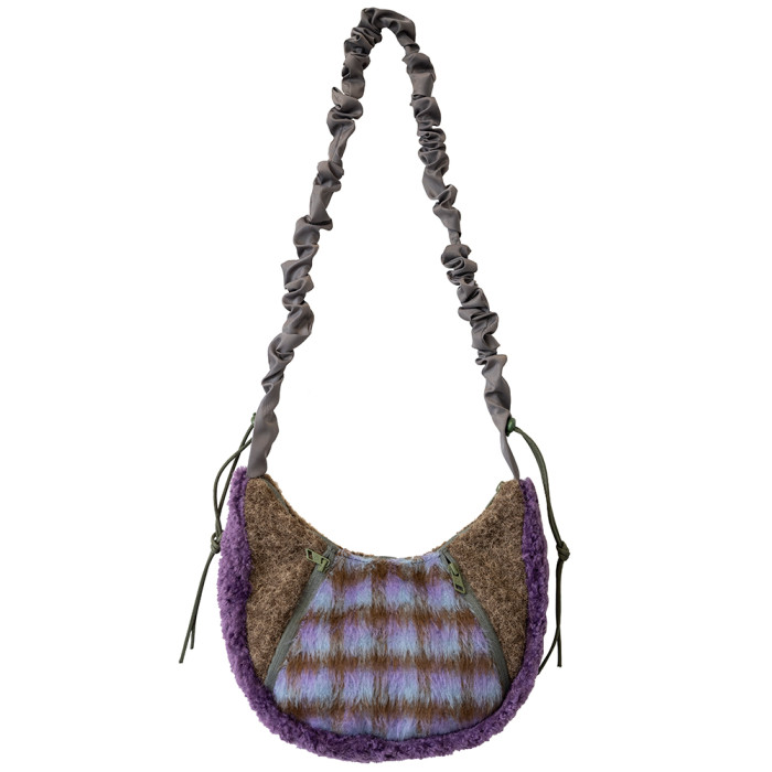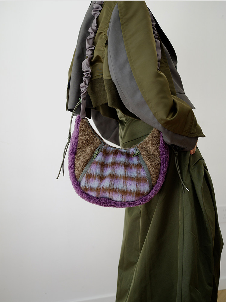 housedesign原創2025秋冬新款單肩腋下月牙包毛絨毛呢斜背毛毛包