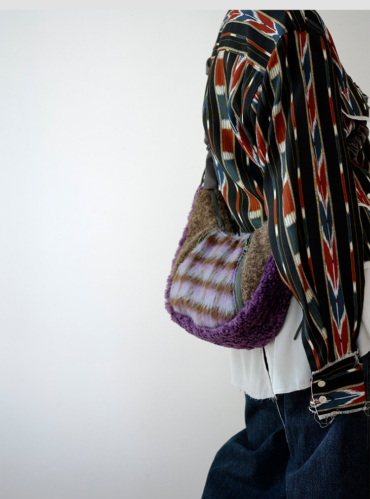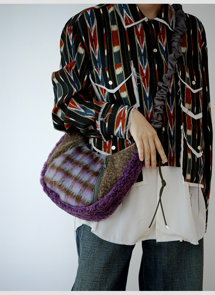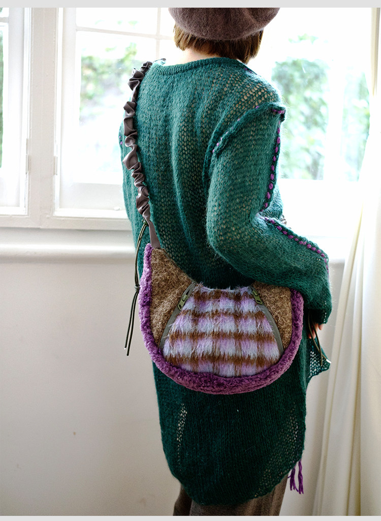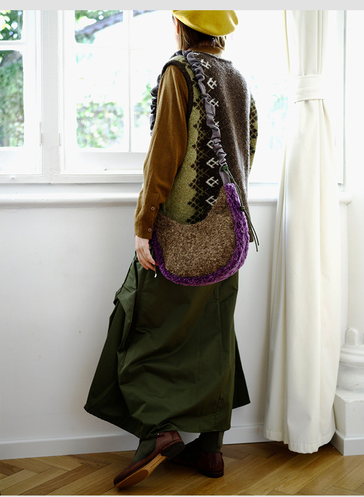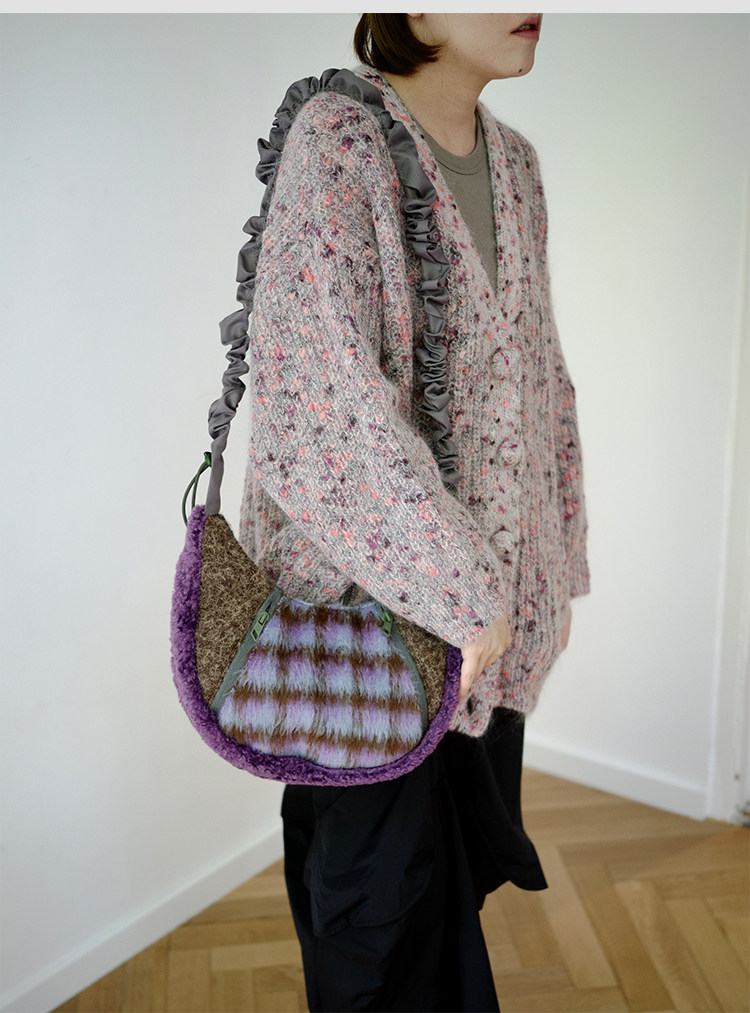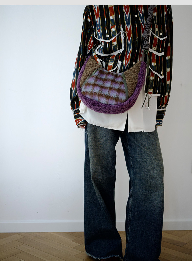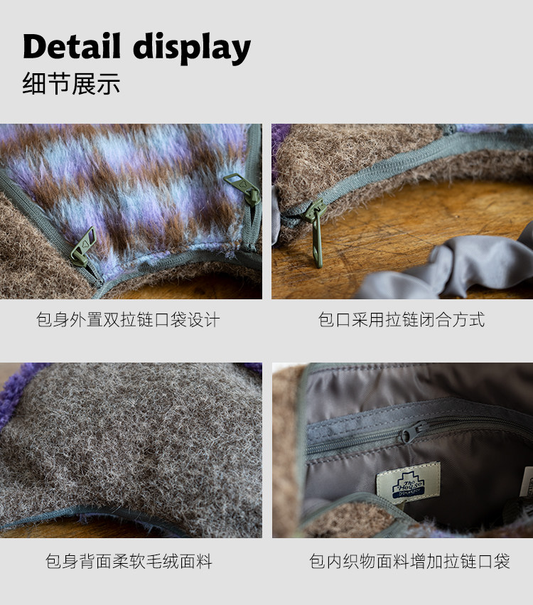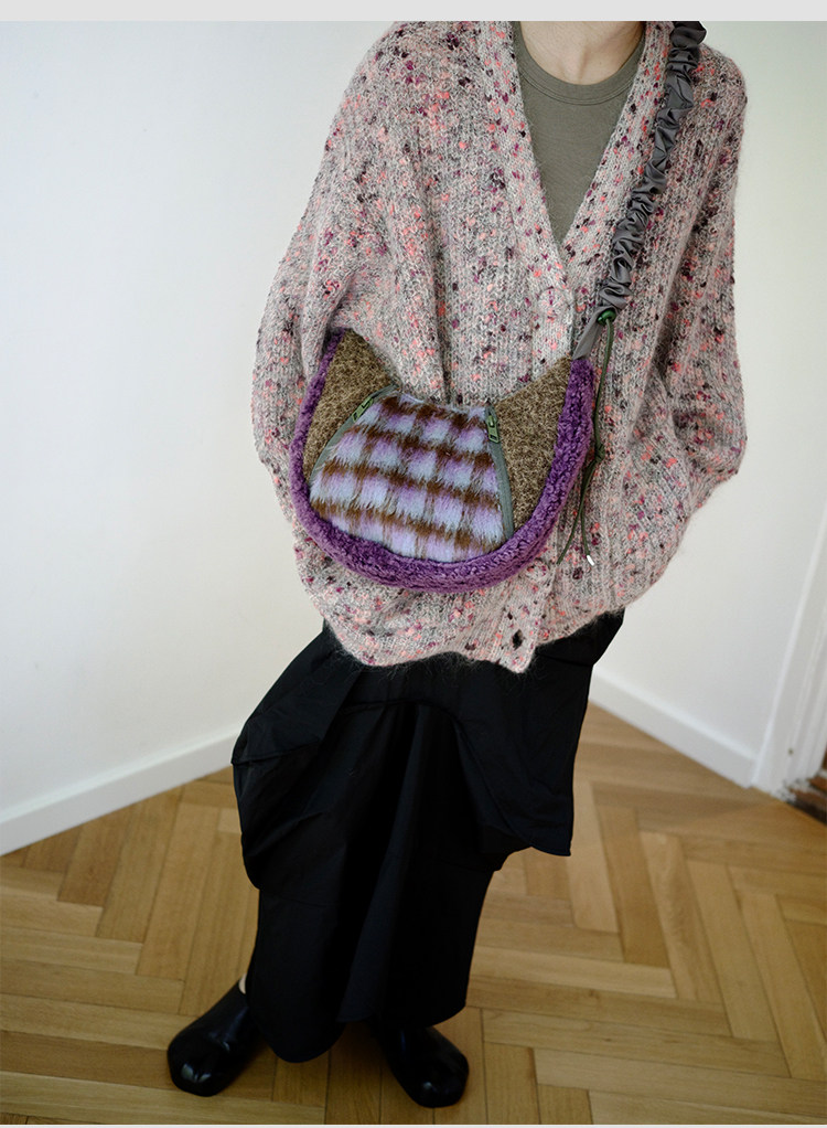 housedesign原創2025秋冬新款單肩腋下月牙包毛絨毛呢斜背毛毛包