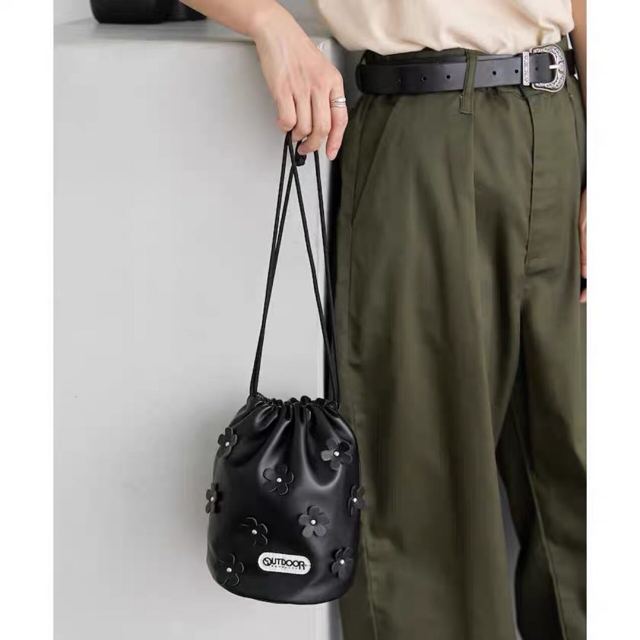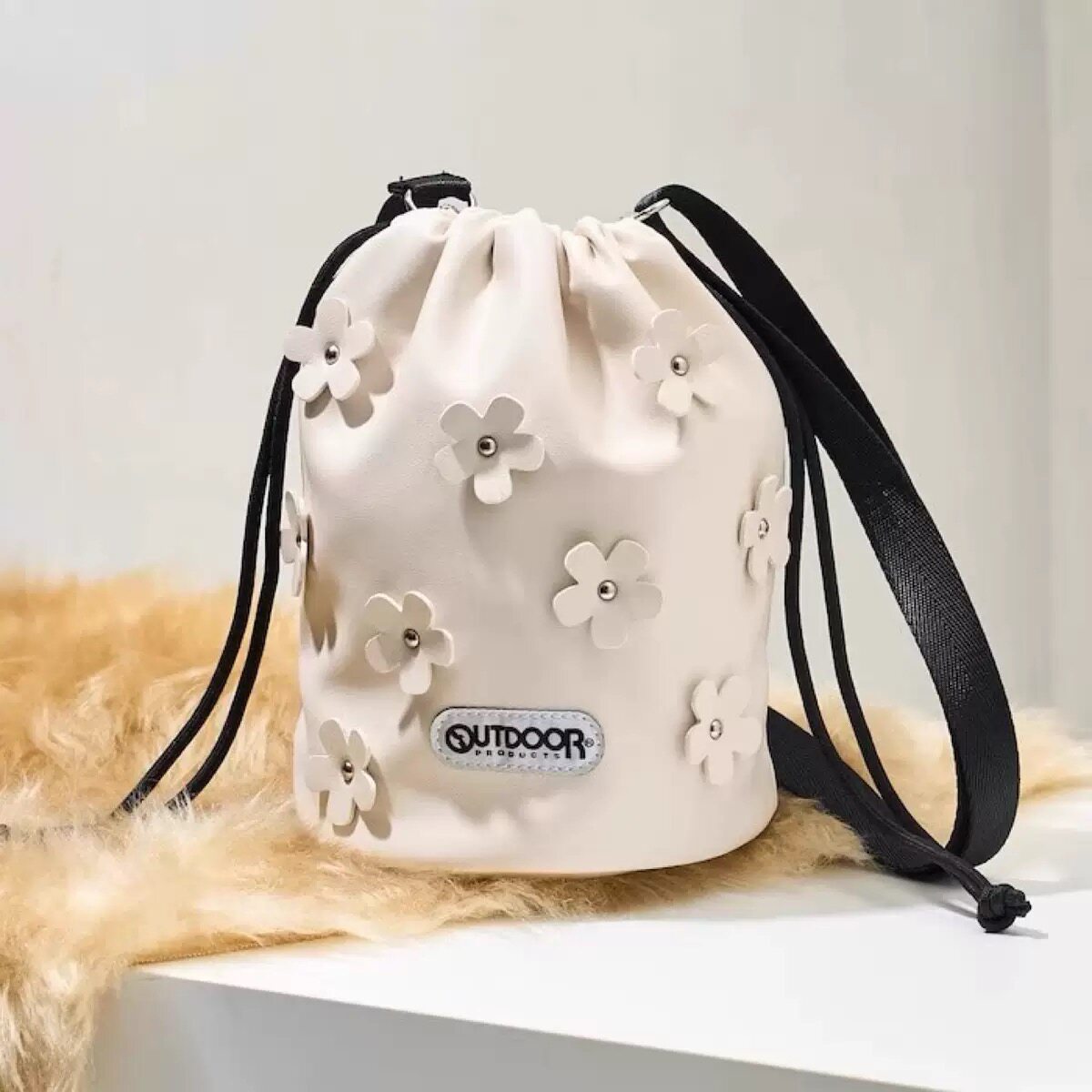 日系新款小衆設計感花朵水桶包女時尚百搭單肩斜背手提包