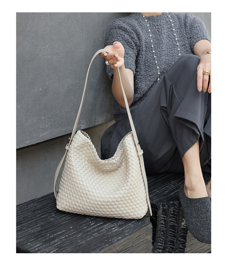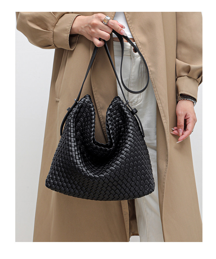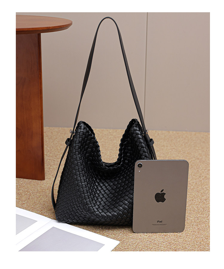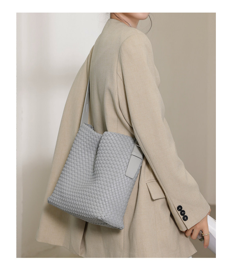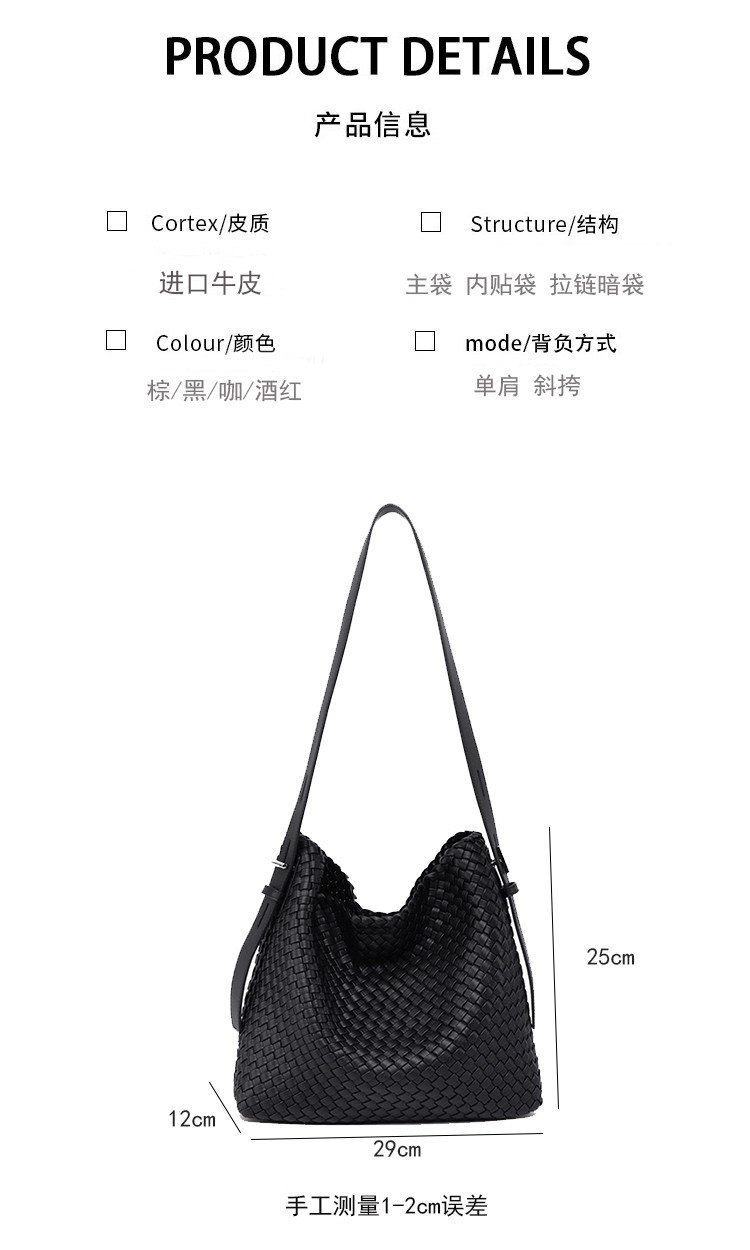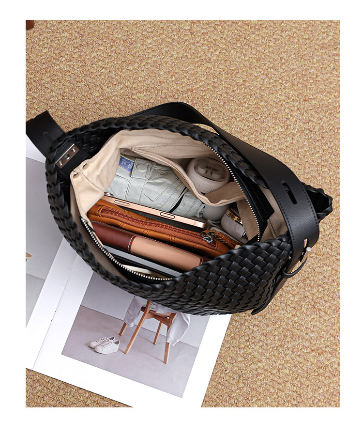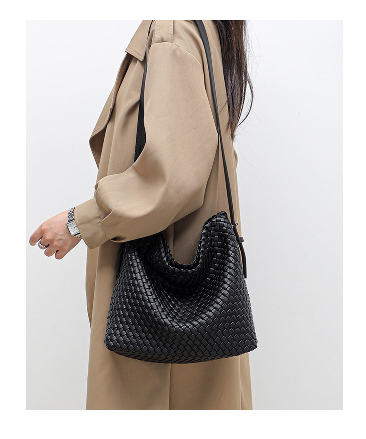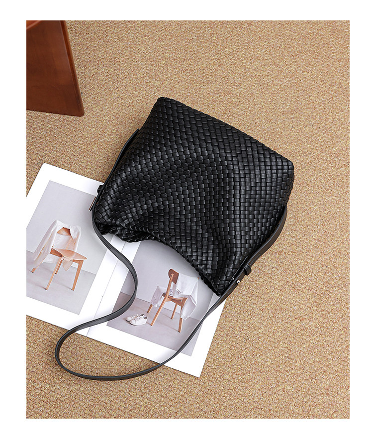 水桶包2026新款真皮純手工編織包大容量托特包通勤腋下單肩斜後後背包