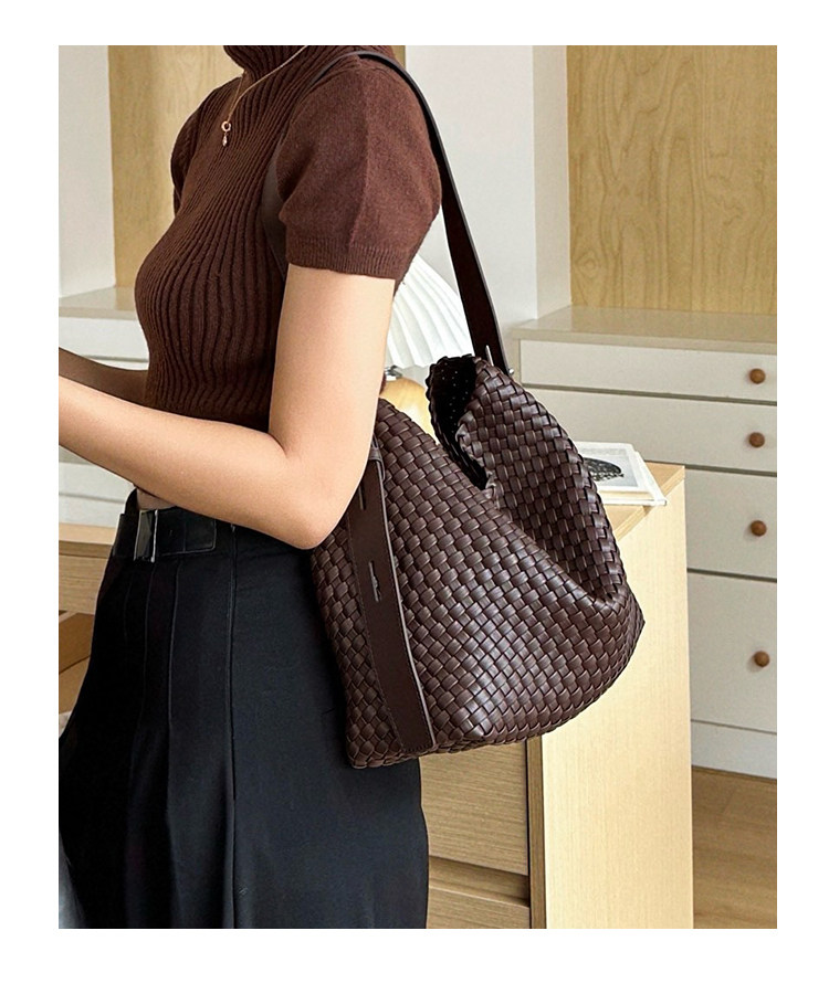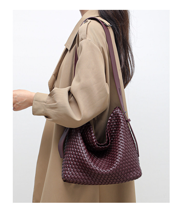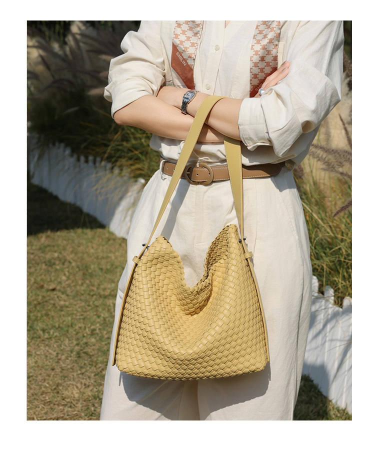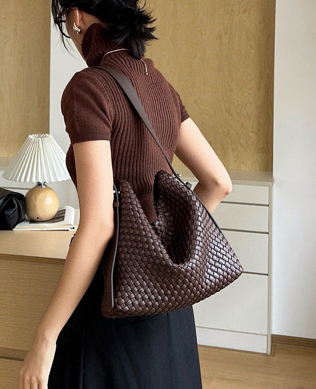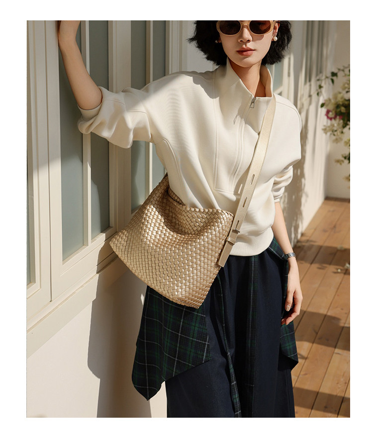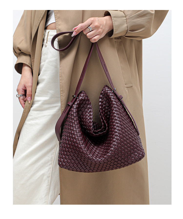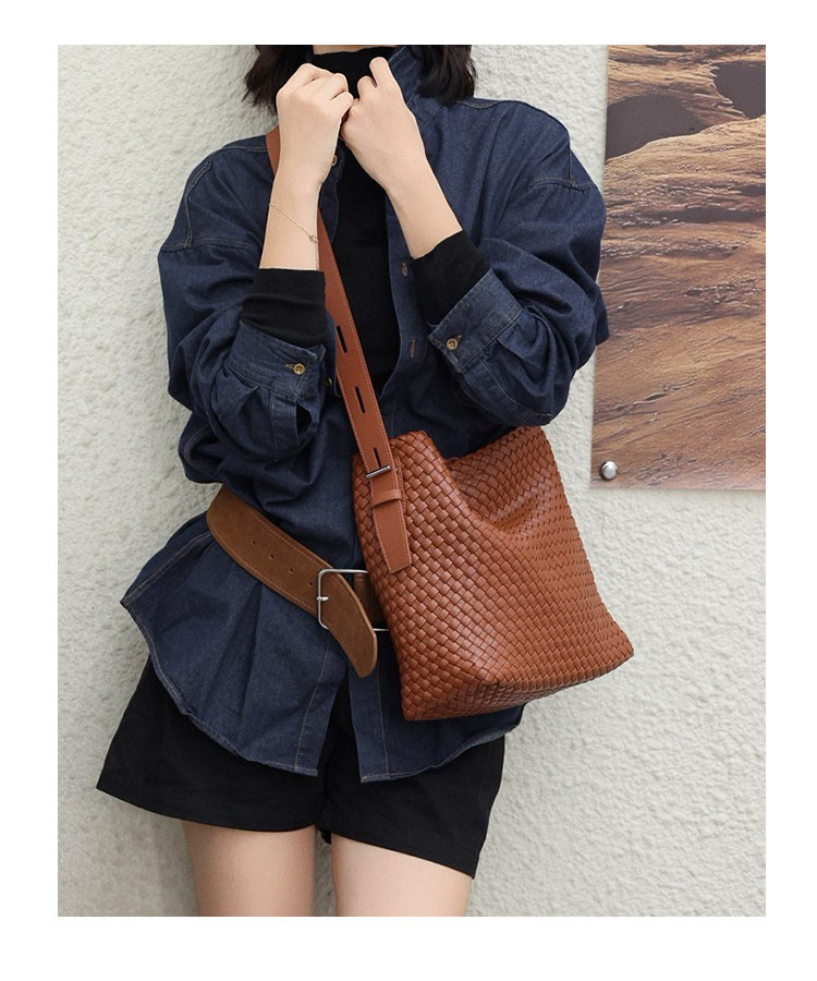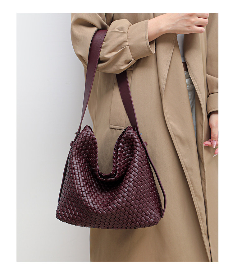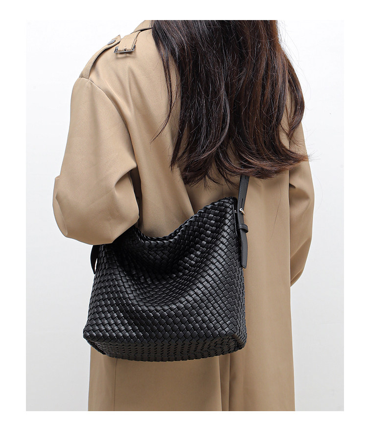 水桶包2026新款真皮純手工編織包大容量托特包通勤腋下單肩斜後後背包