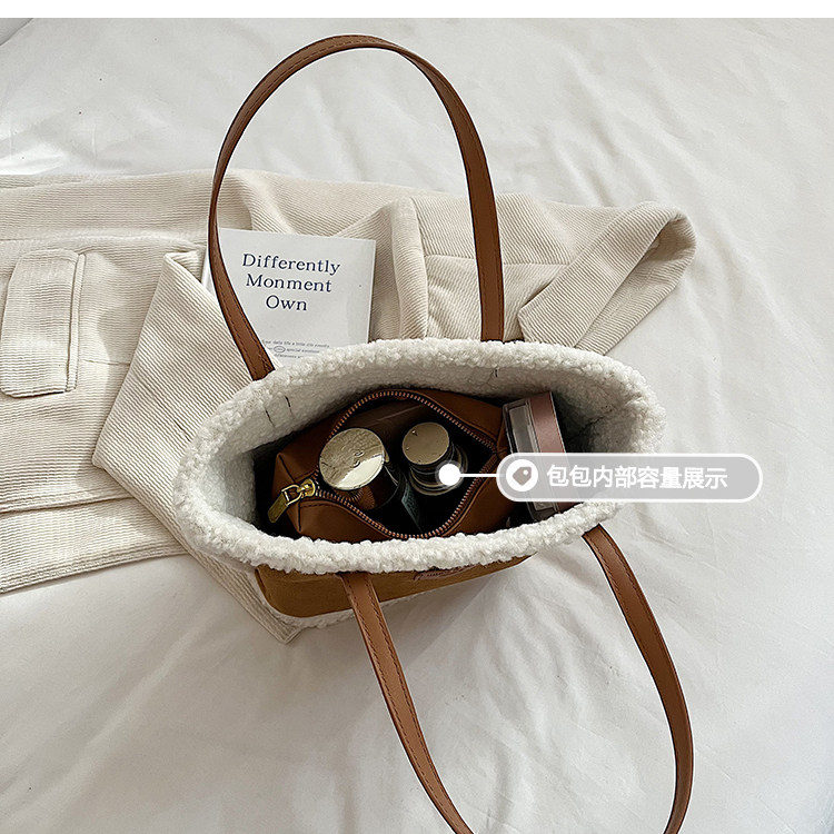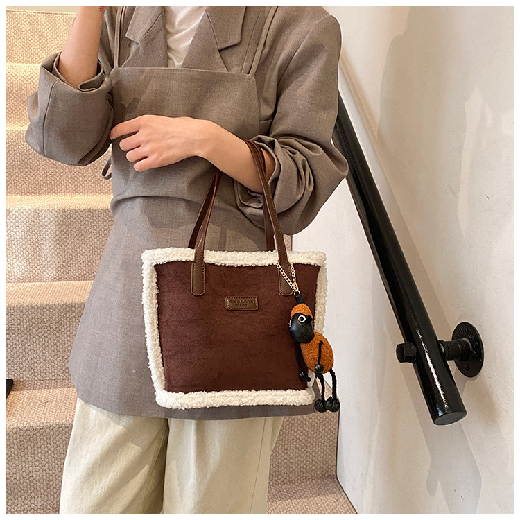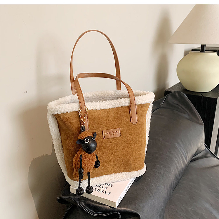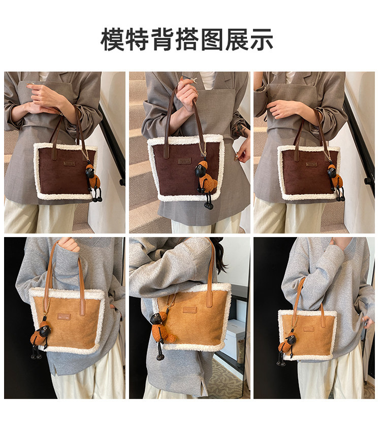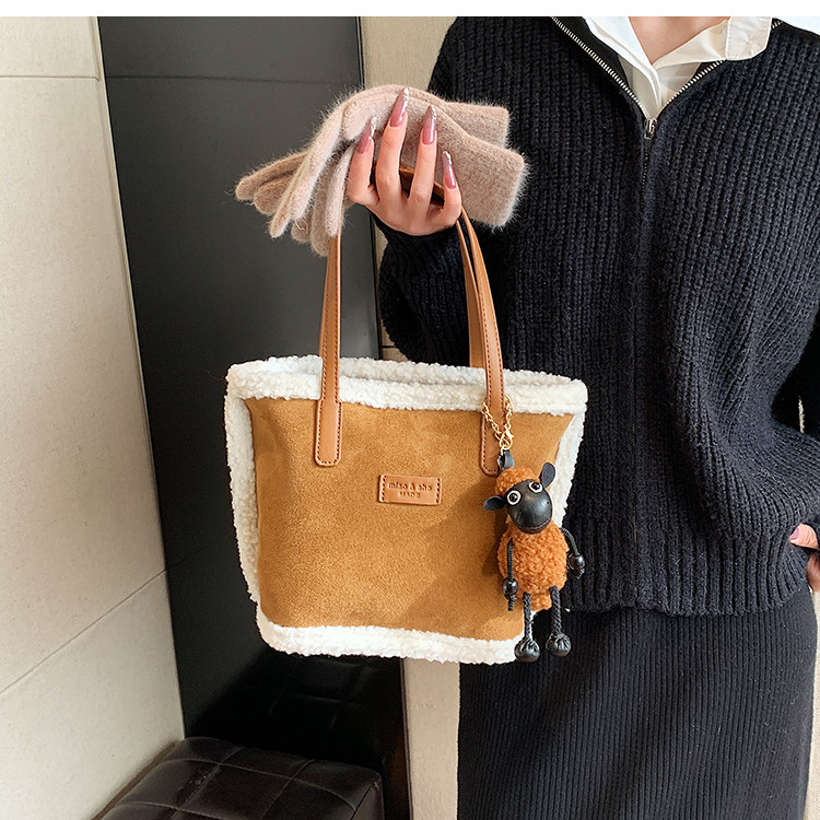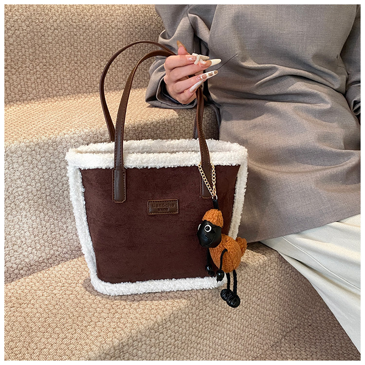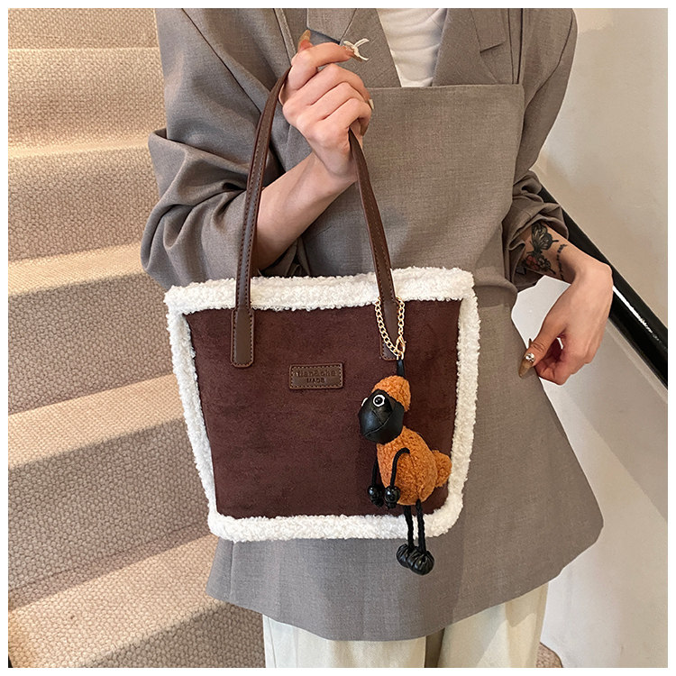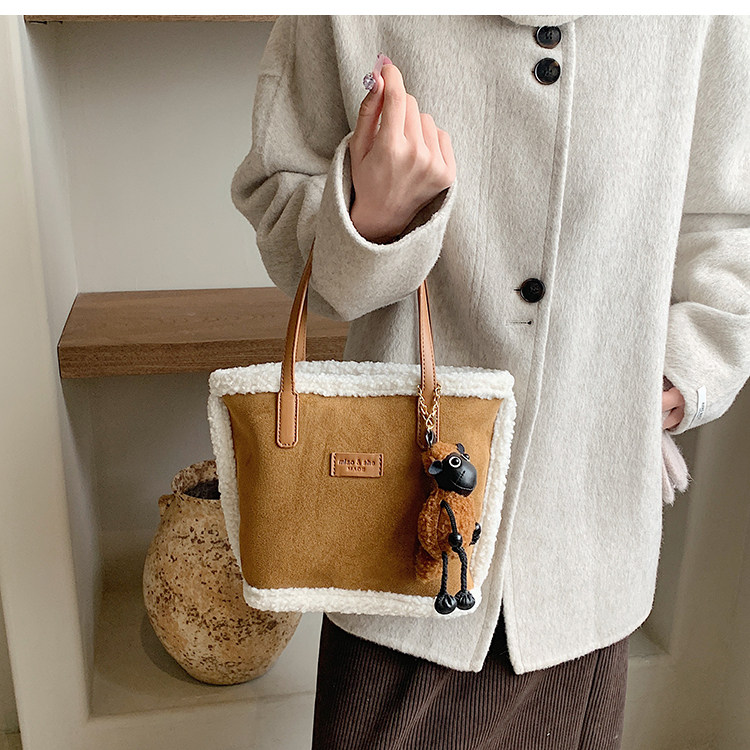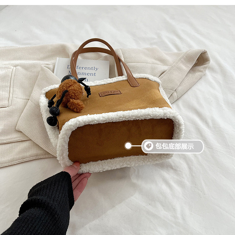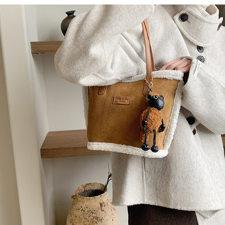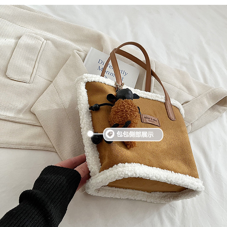秋冬麂皮絨美拉德包包女2026新款單肩手提通勤包羊羔毛托特水桶包