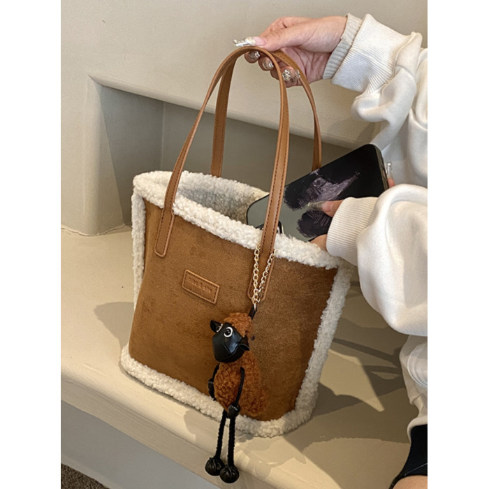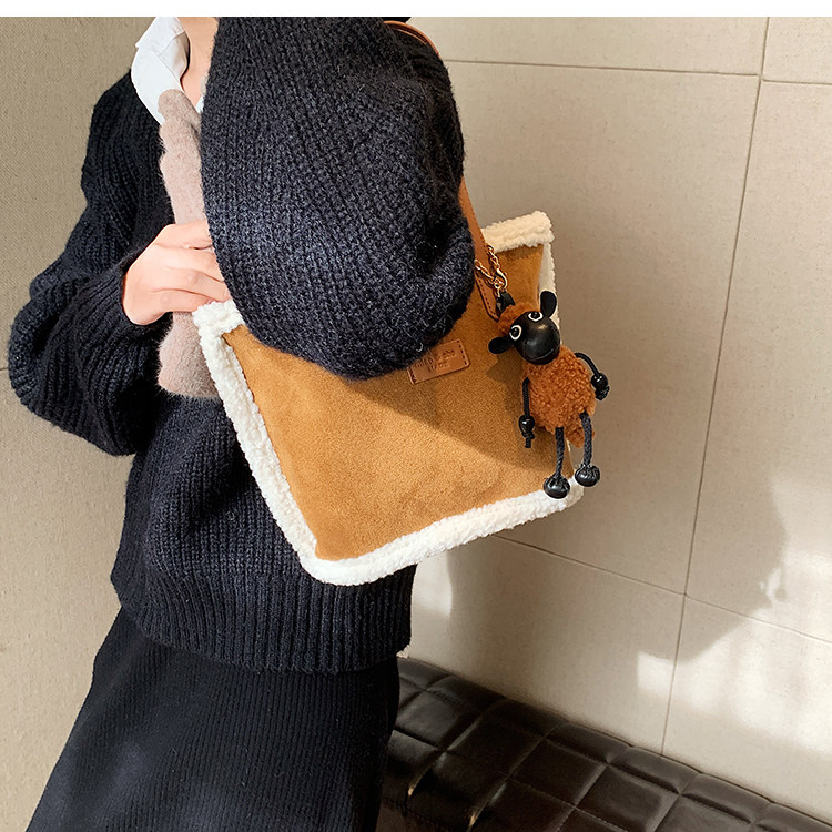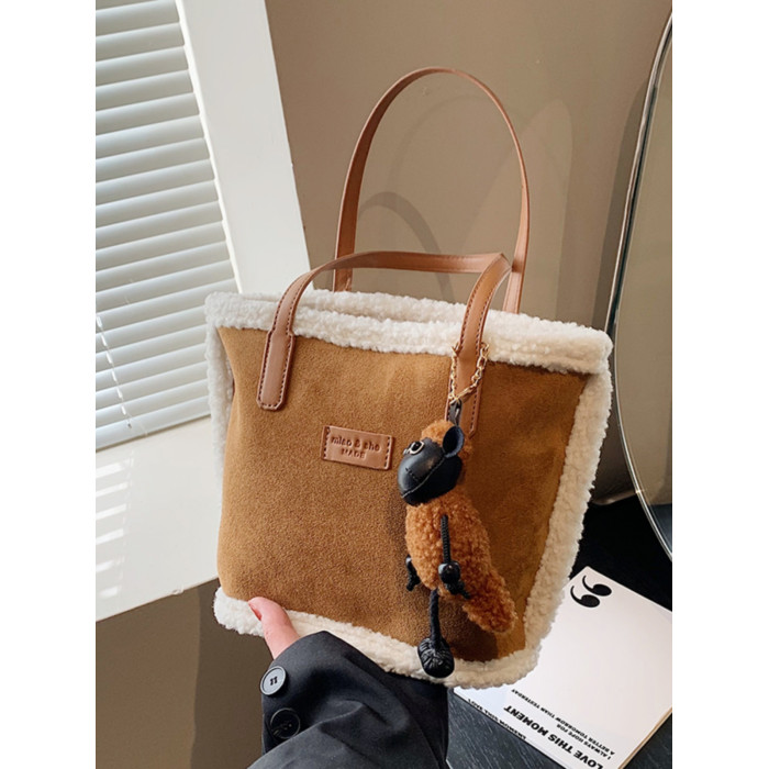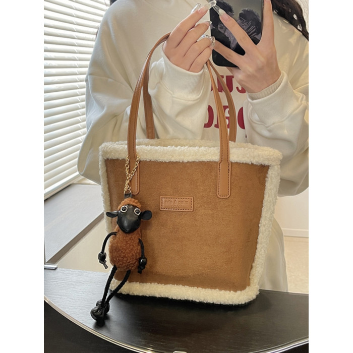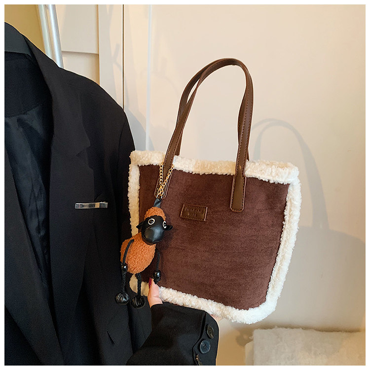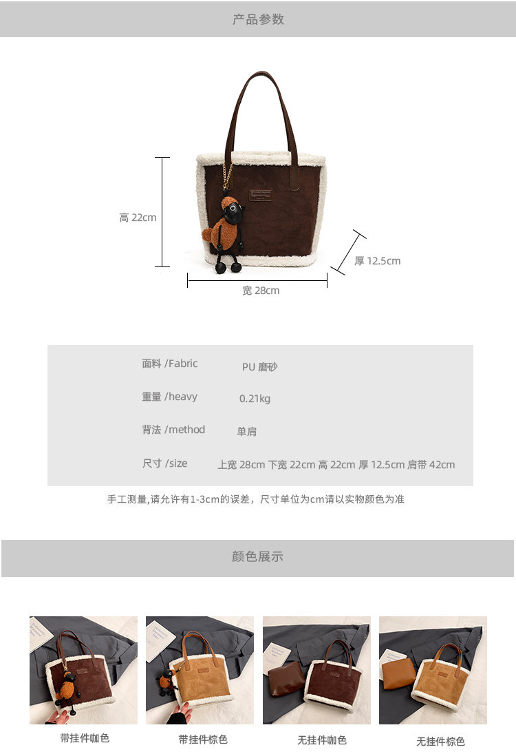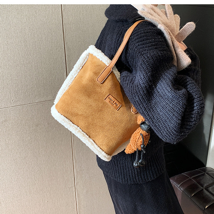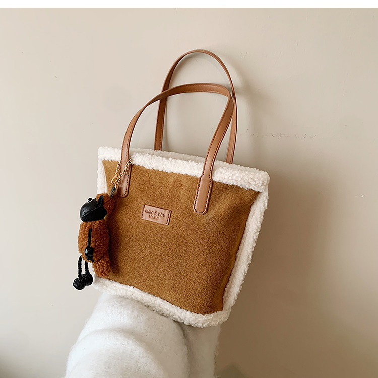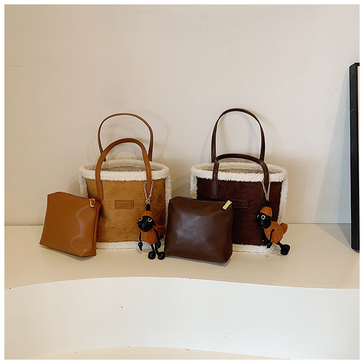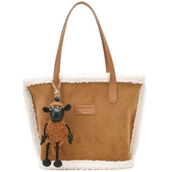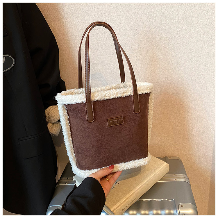 秋冬麂皮絨美拉德包包女2026新款單肩手提通勤包羊羔毛托特水桶包
