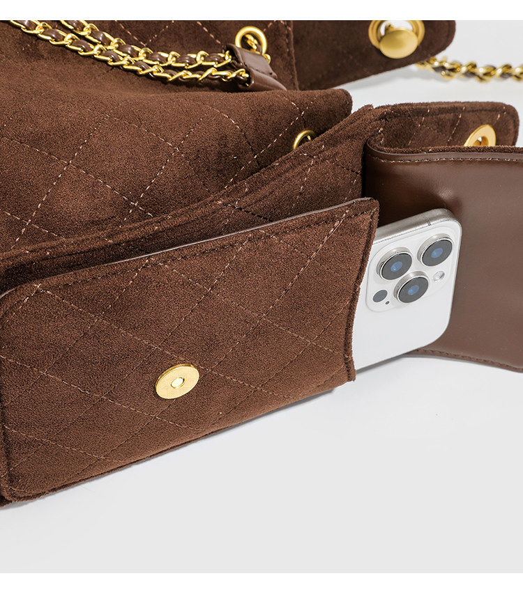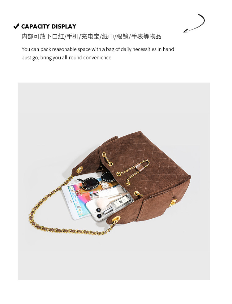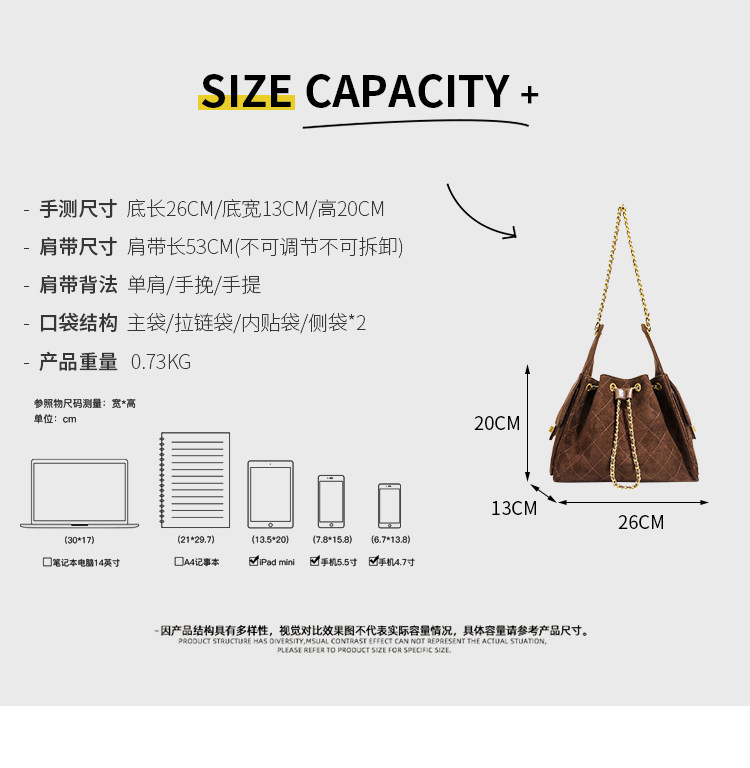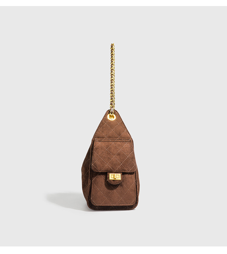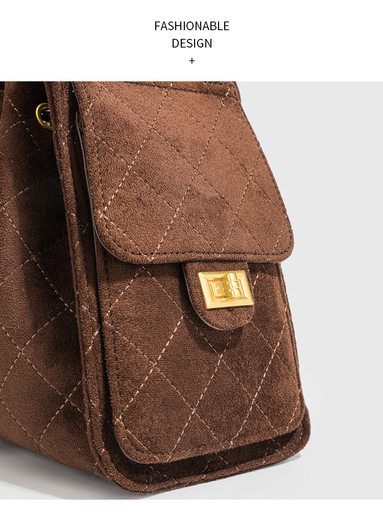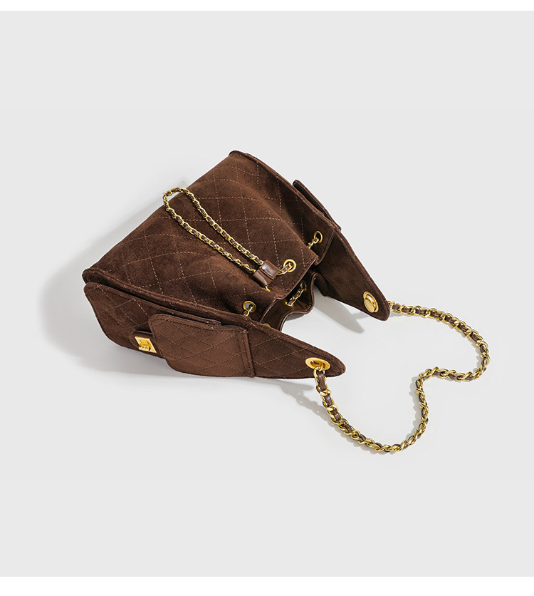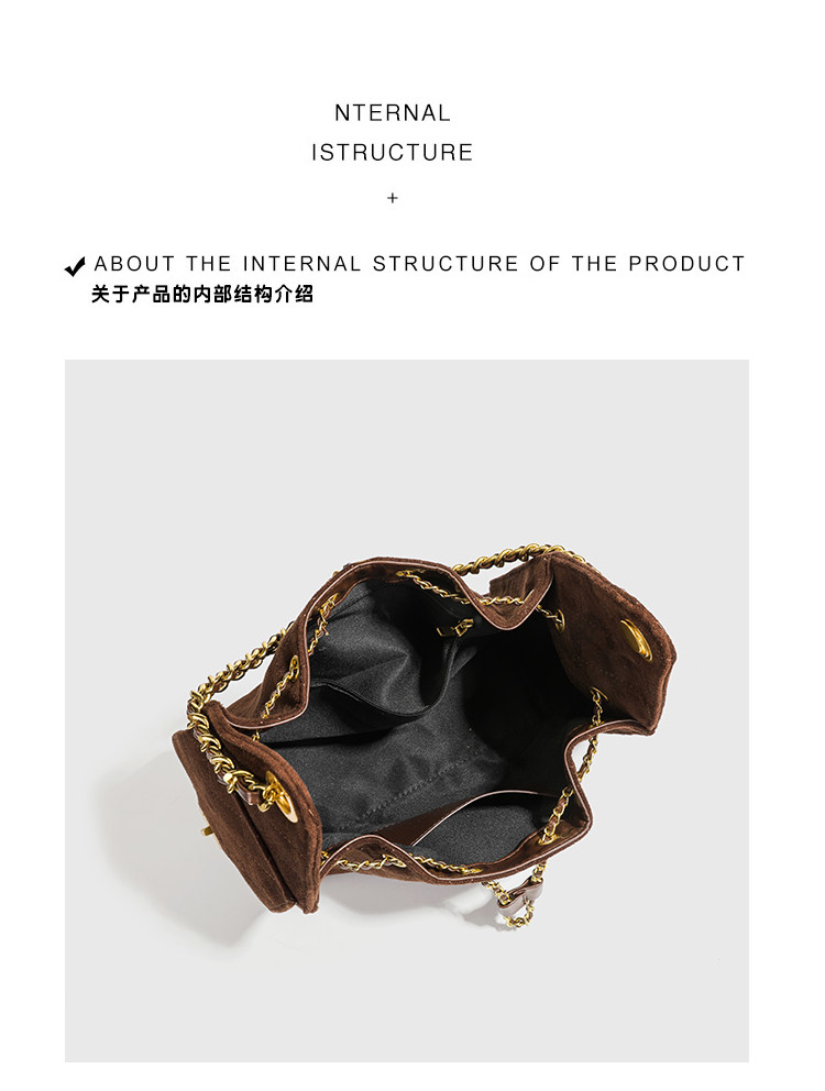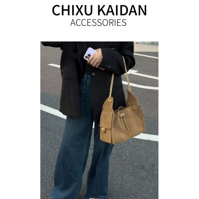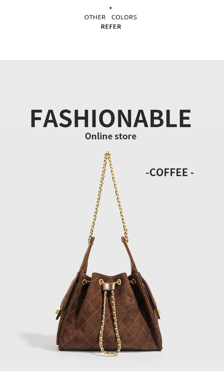 小香風抽繩水桶包秋冬新款麂皮hobo腋下包菱格鏈條托特包單肩女包