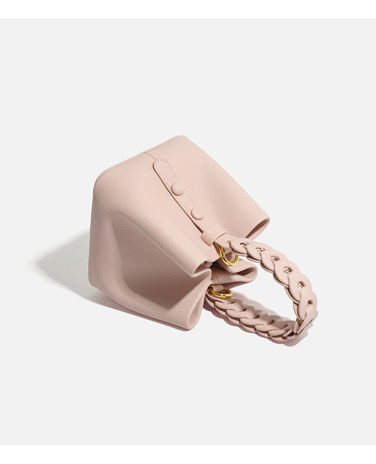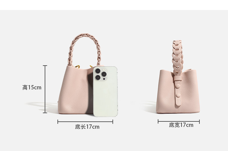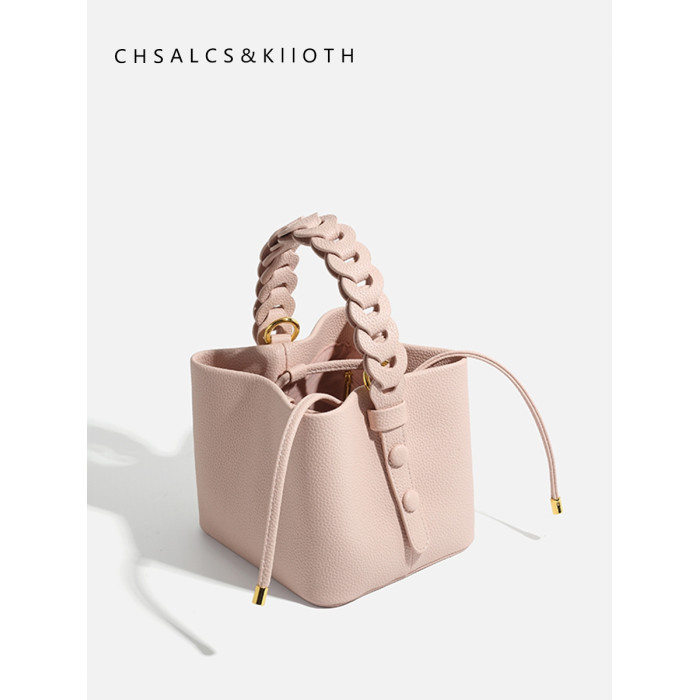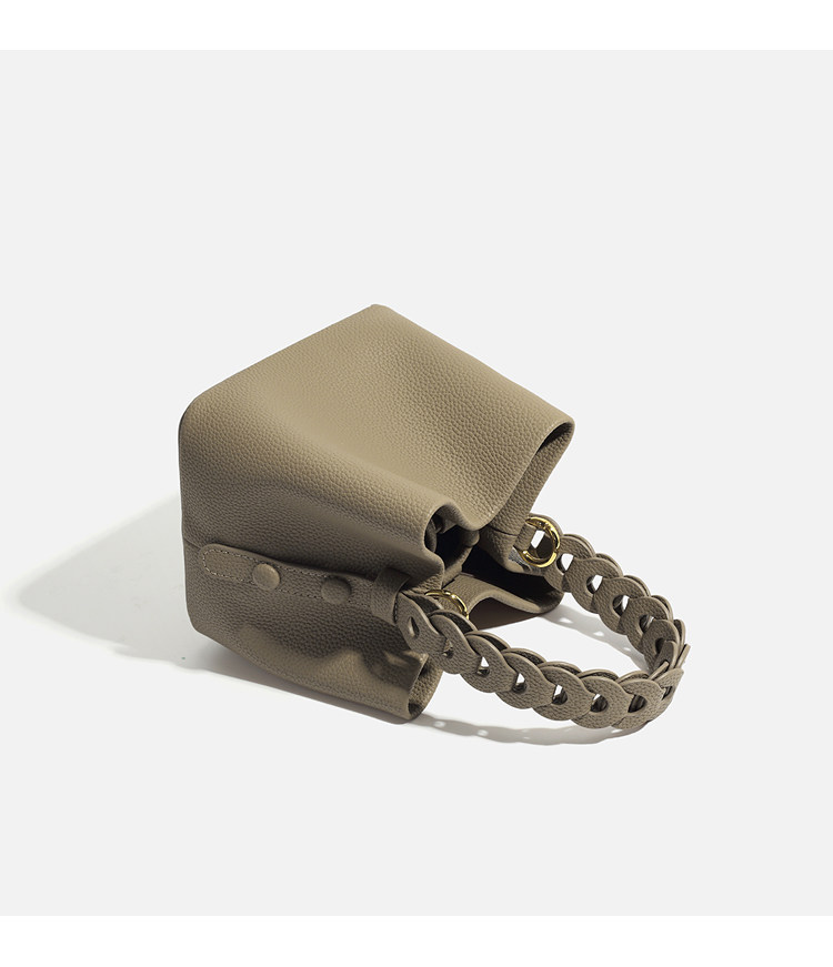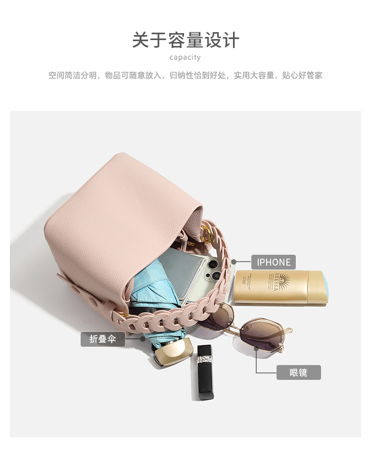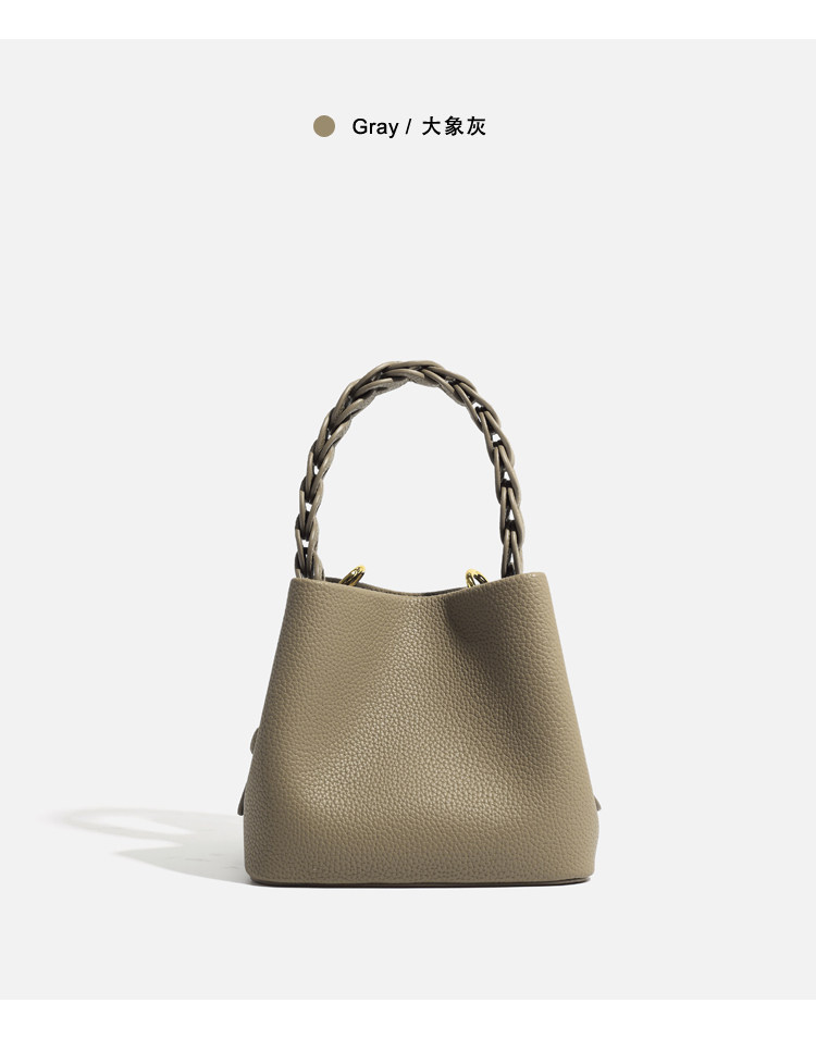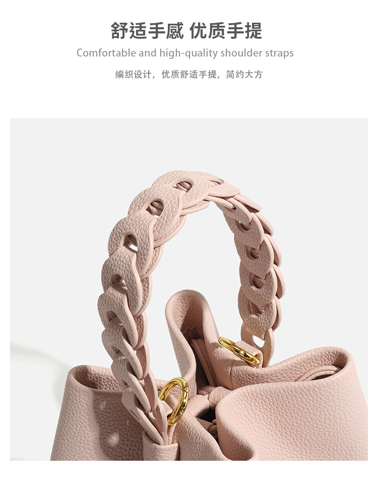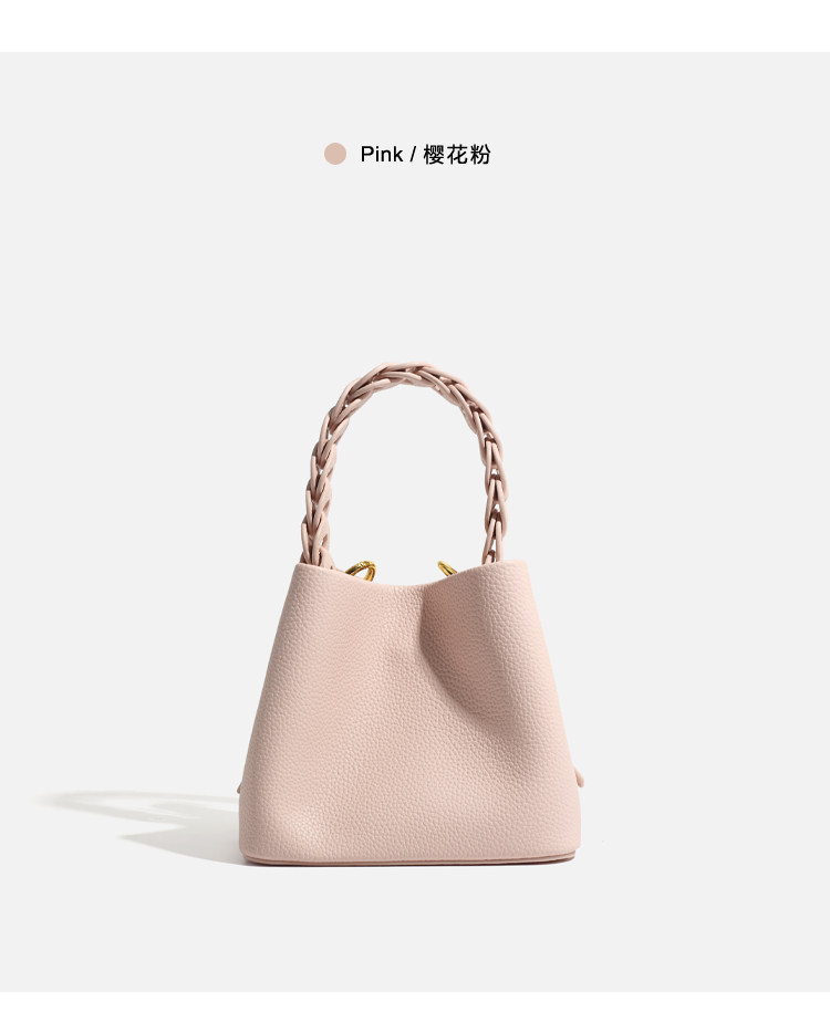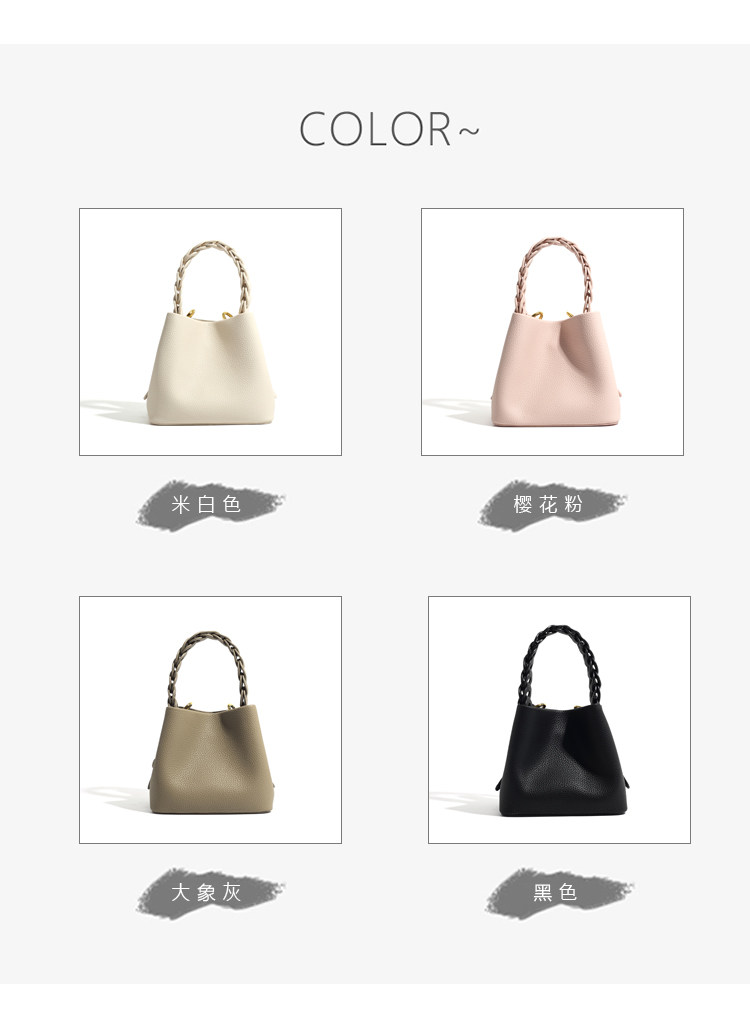 【三川田】奶昔粉菜籃子手提包高級感真皮編織水桶包斜背2026新款