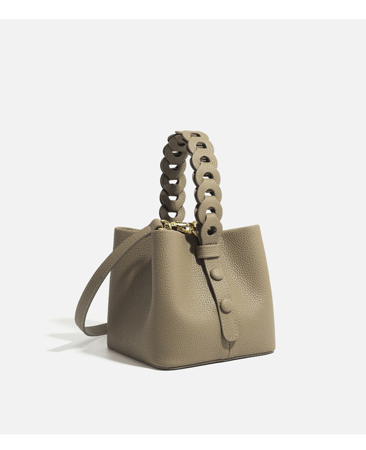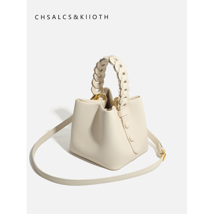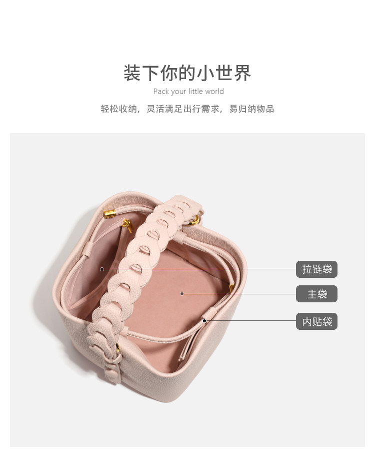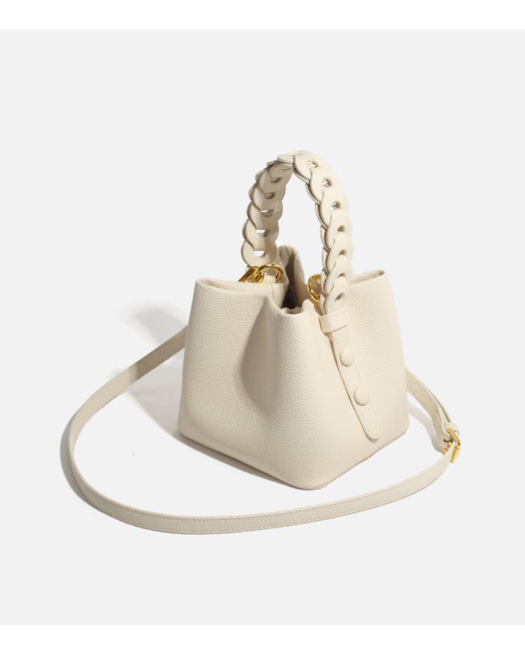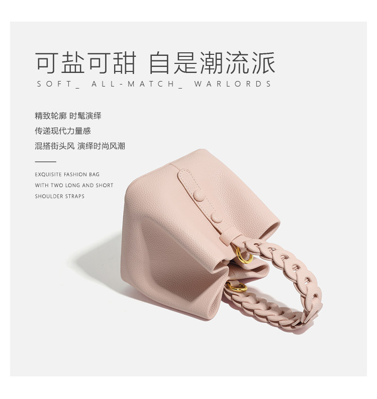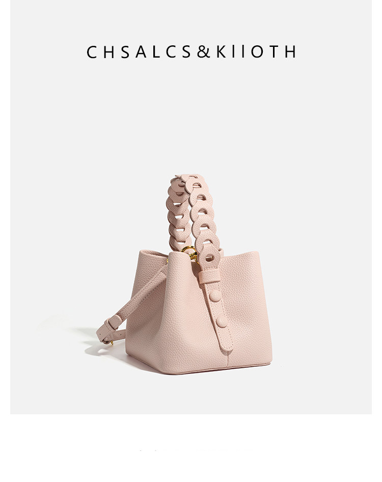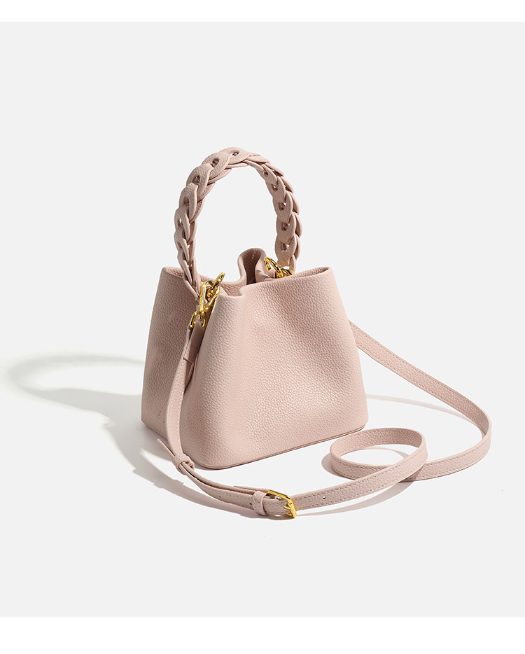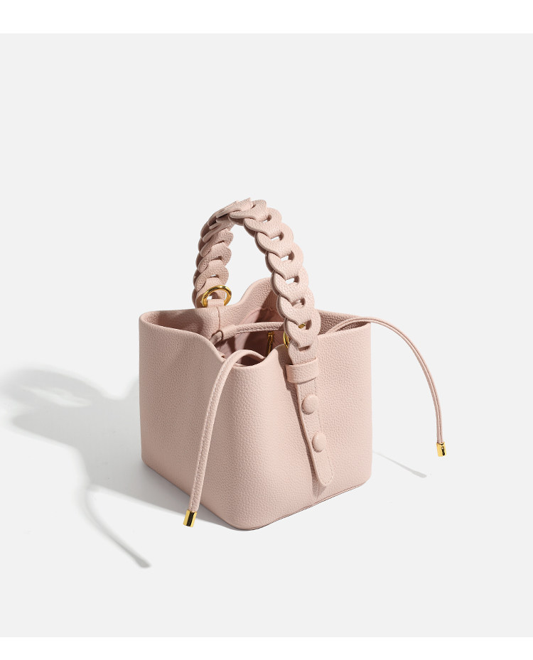 【三川田】奶昔粉菜籃子手提包高級感真皮編織水桶包斜背2026新款