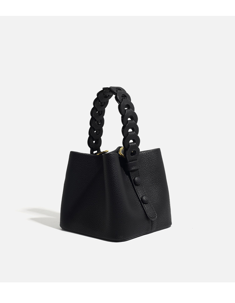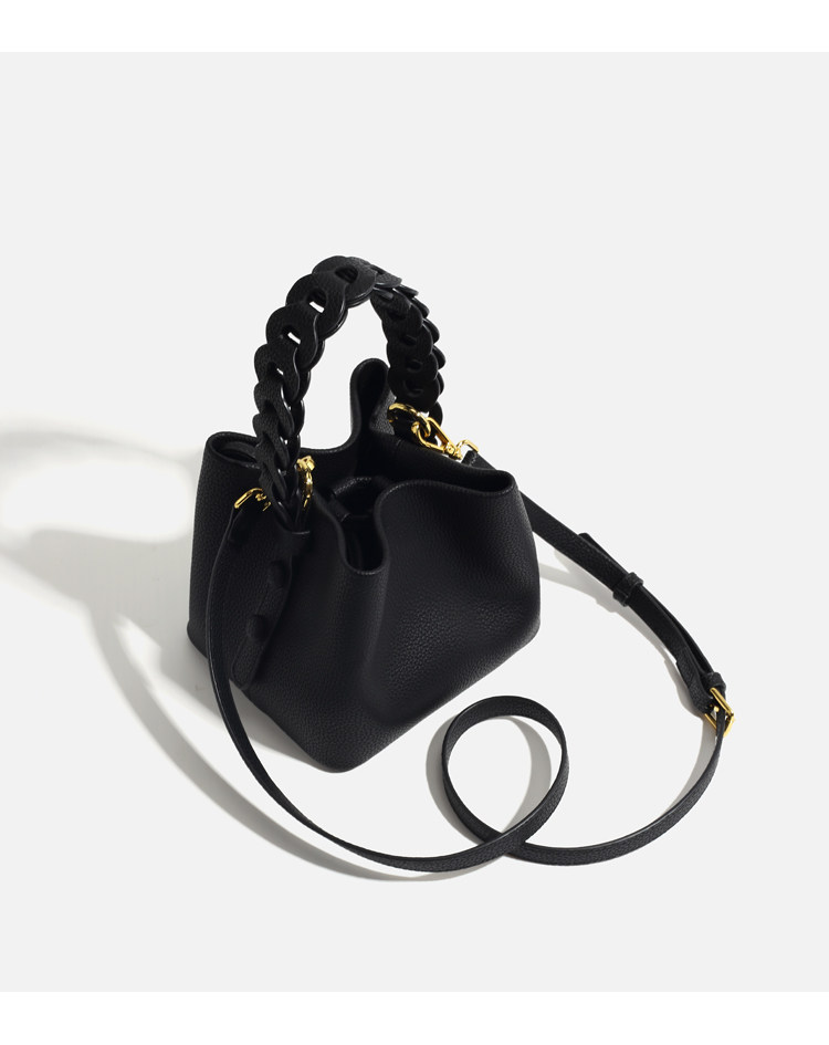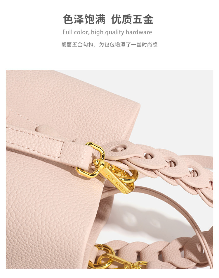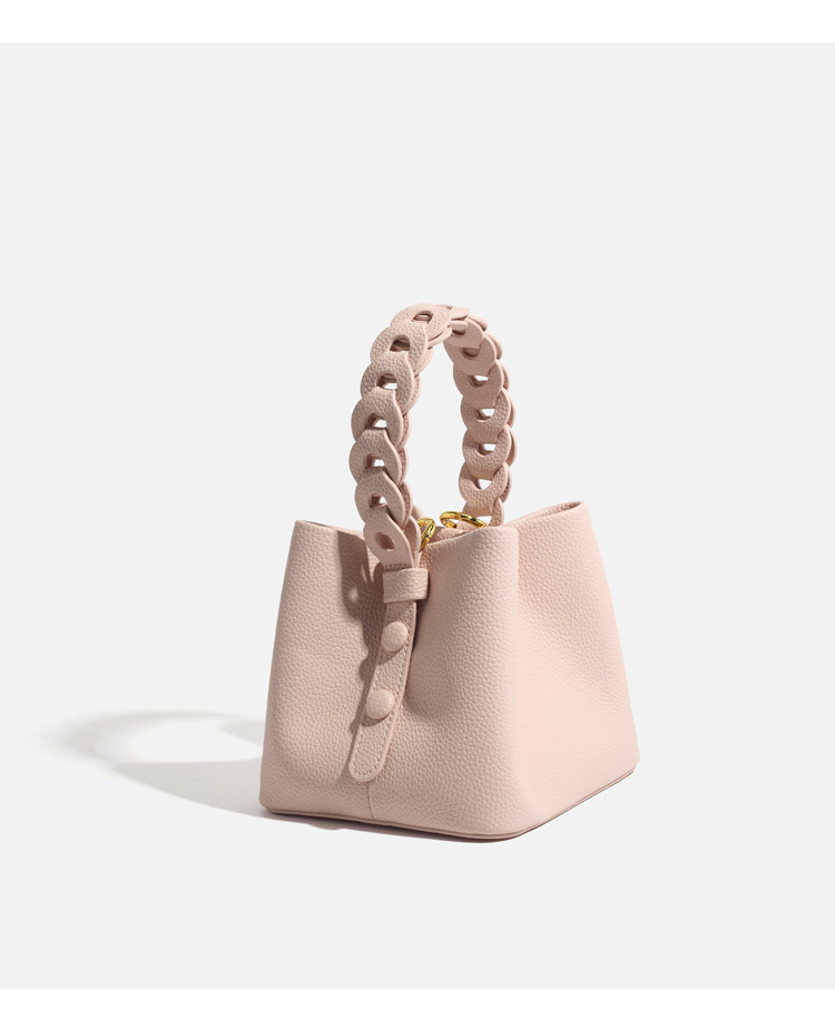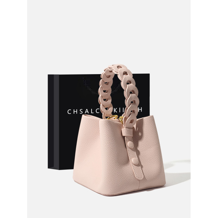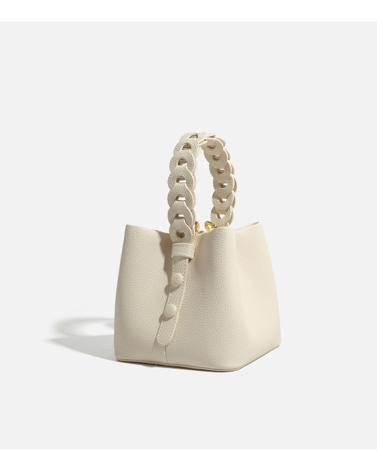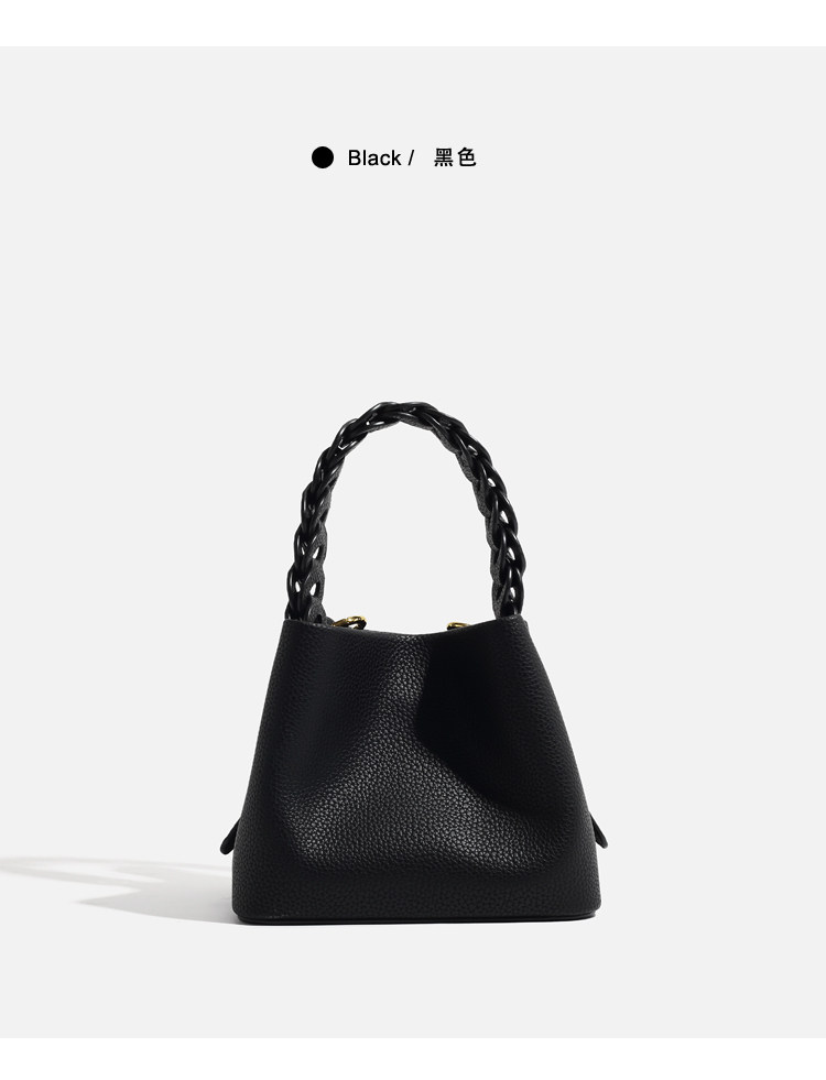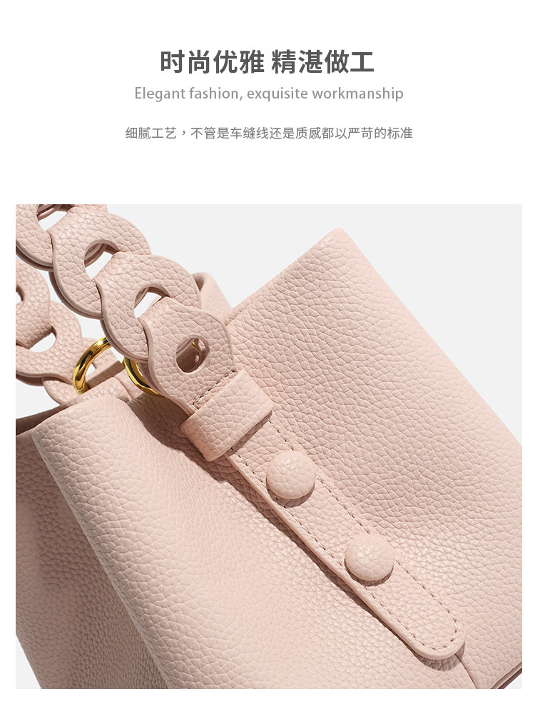 【三川田】奶昔粉菜籃子手提包高級感真皮編織水桶包斜背2026新款
