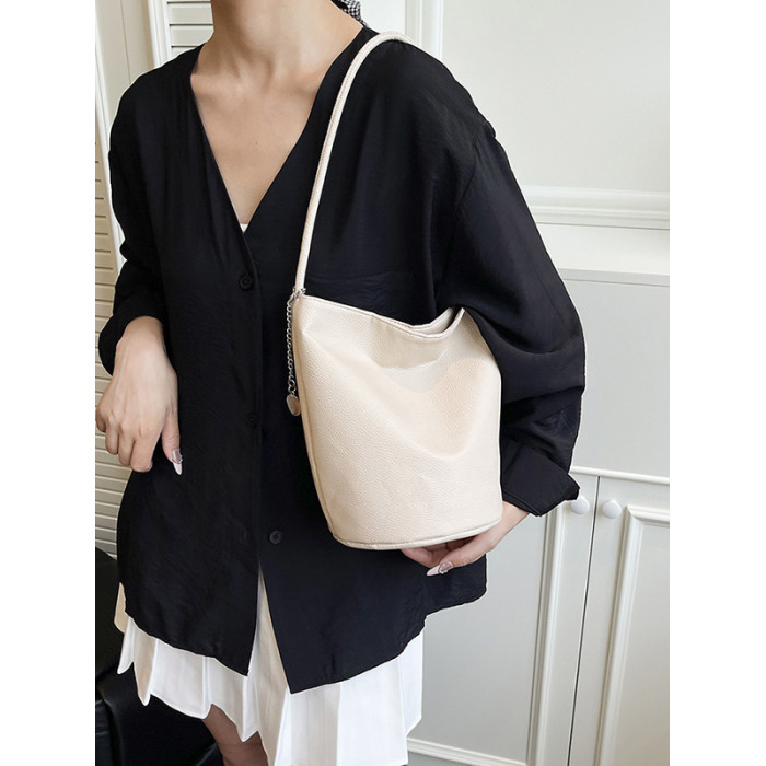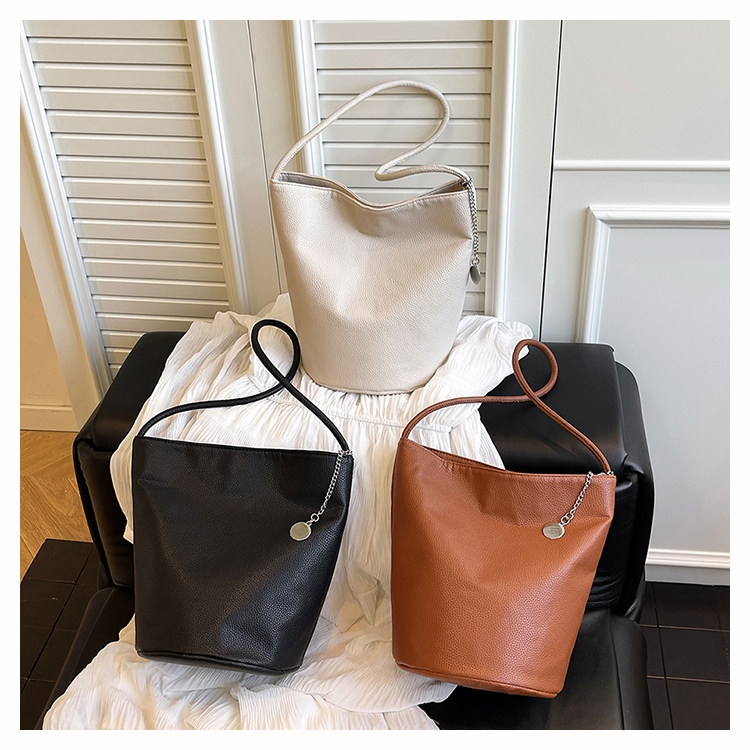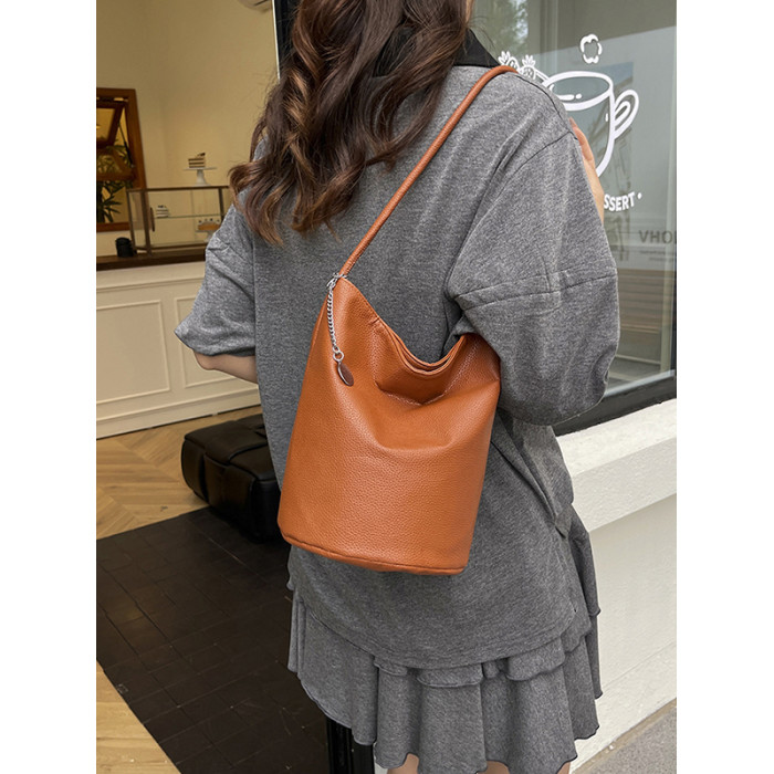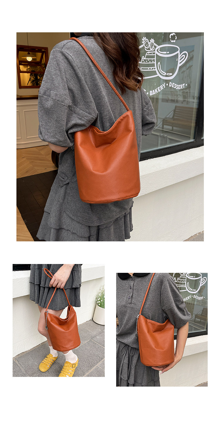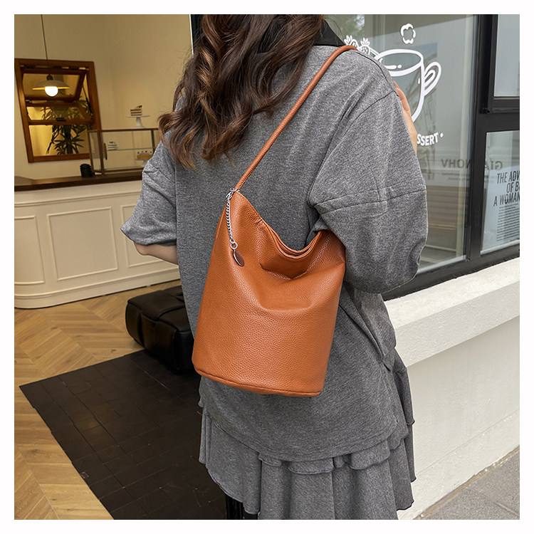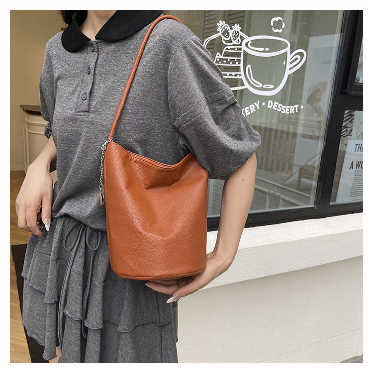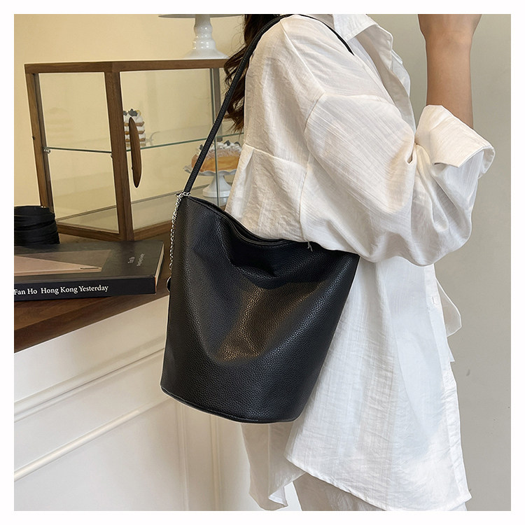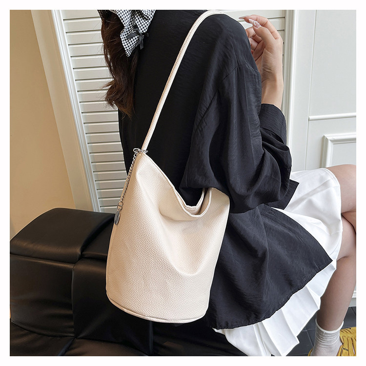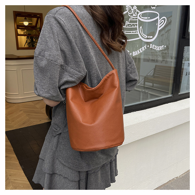 2025新款潮韓版洋氣手提水桶包簡約日常大容量時尚百搭質感單肩包