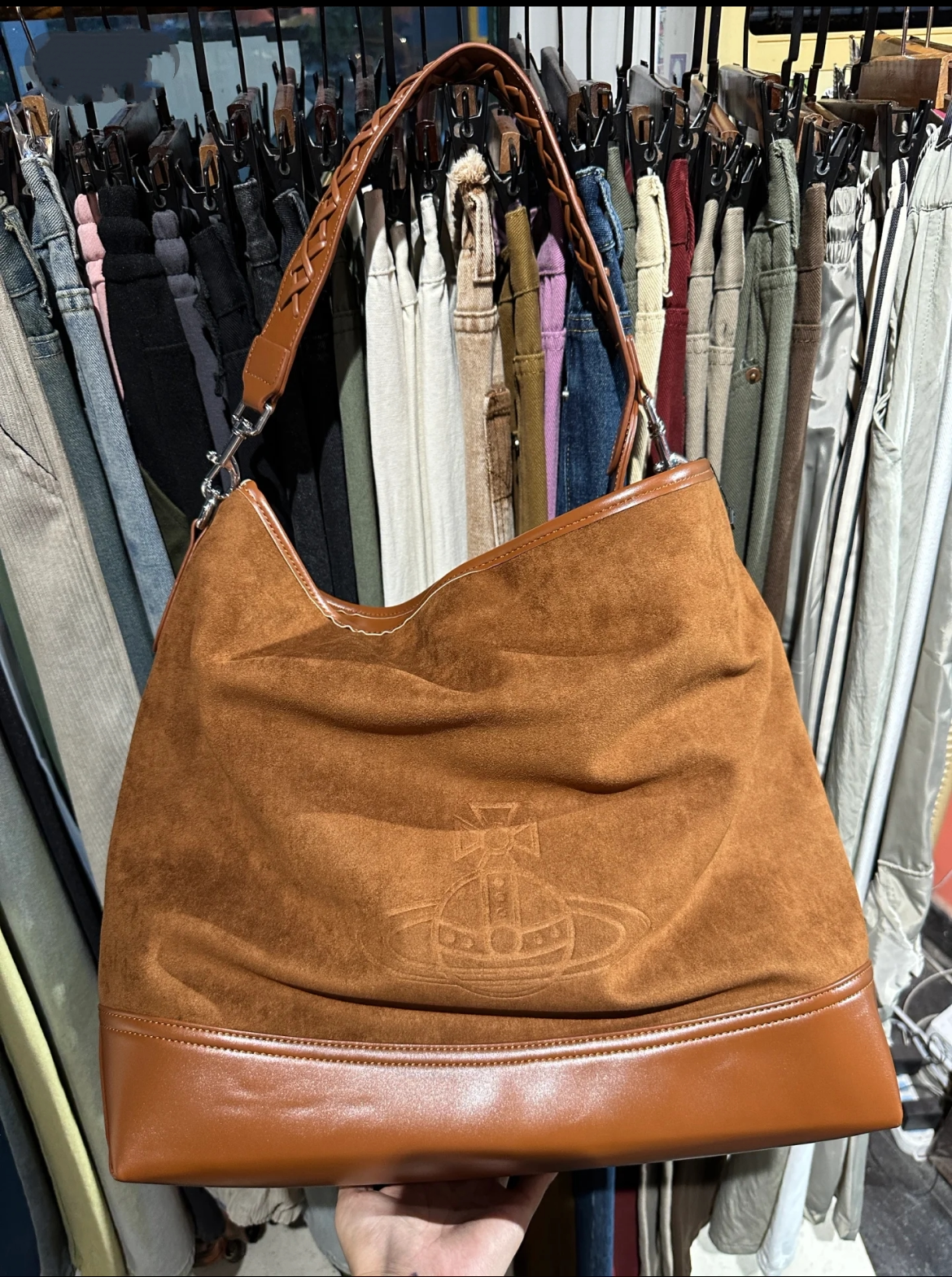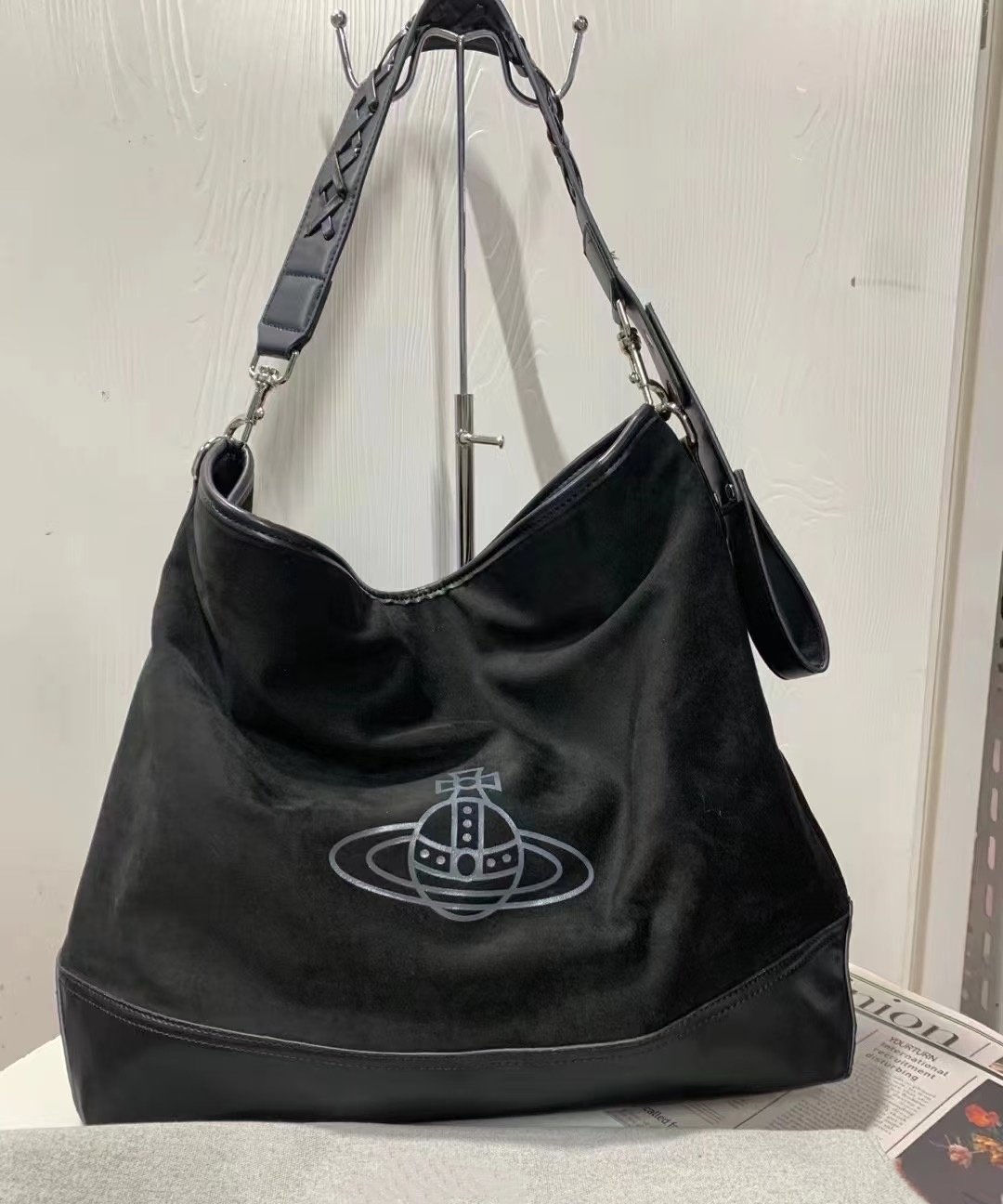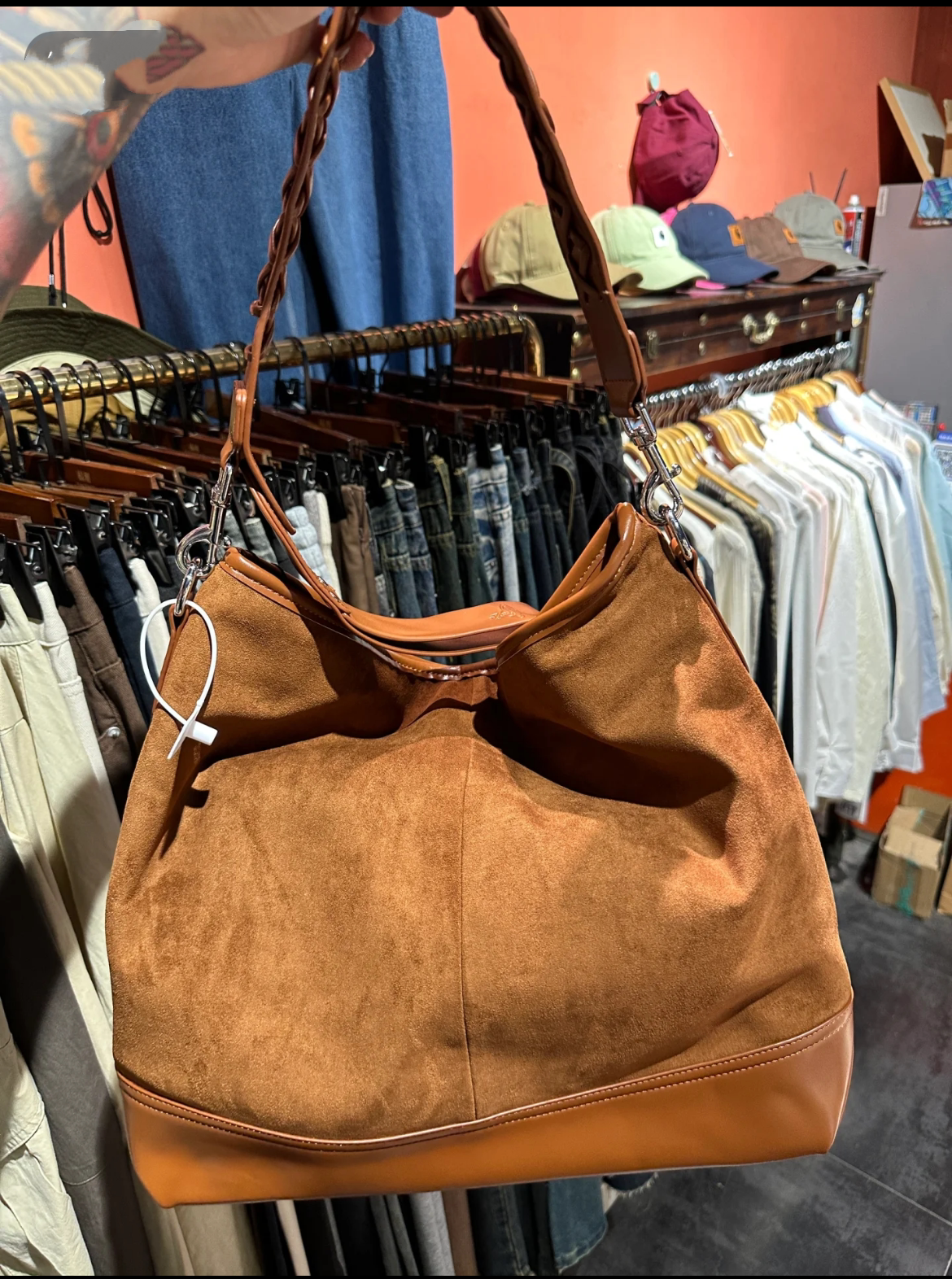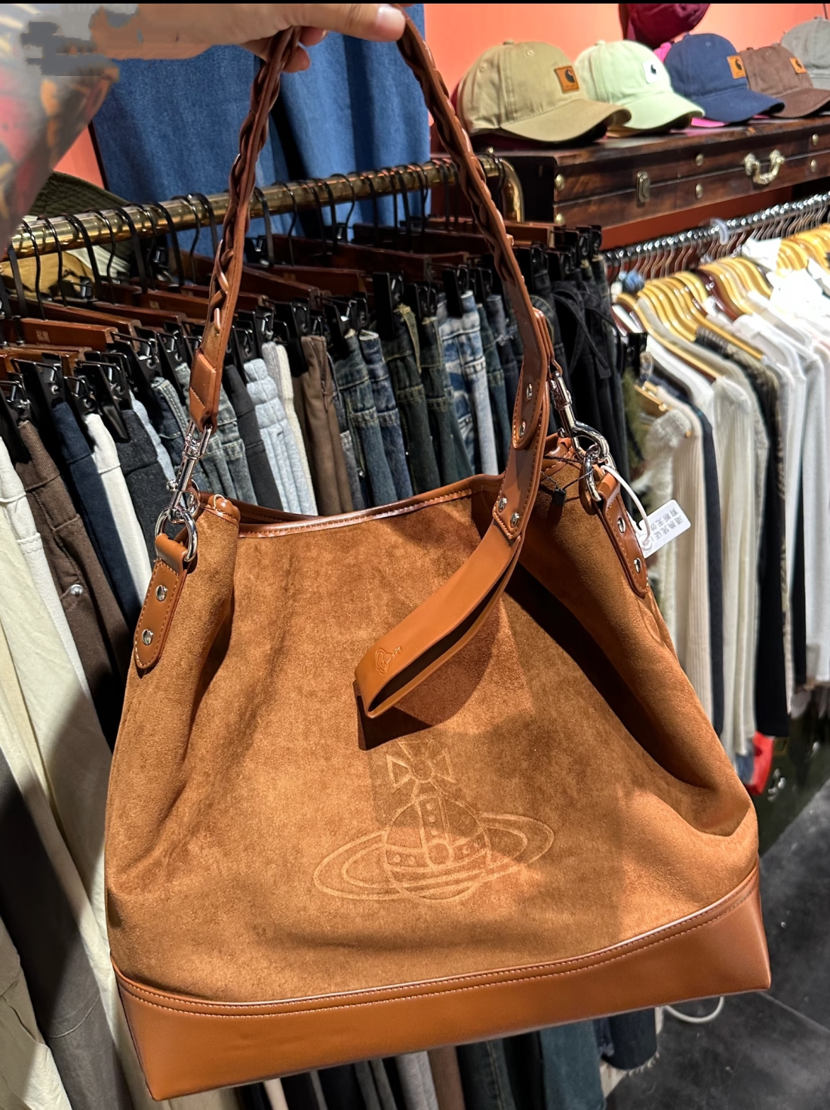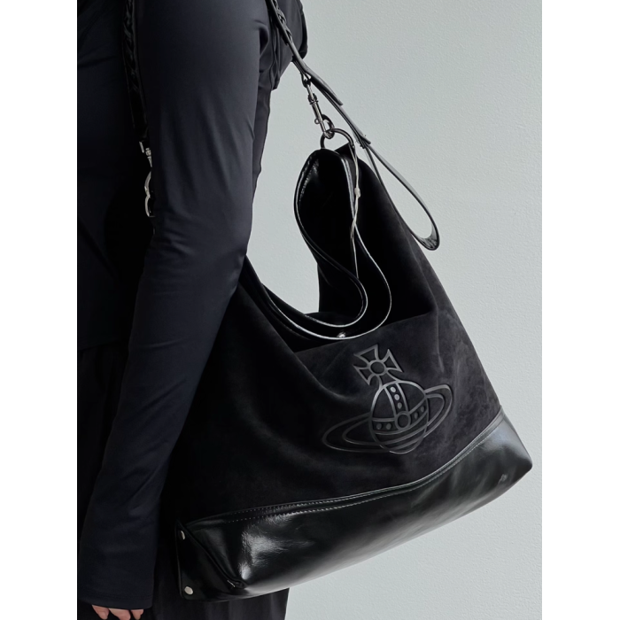 網紅同款麂皮絨印花hobo流浪包復古大容量通勤托特包單肩腋下包女
